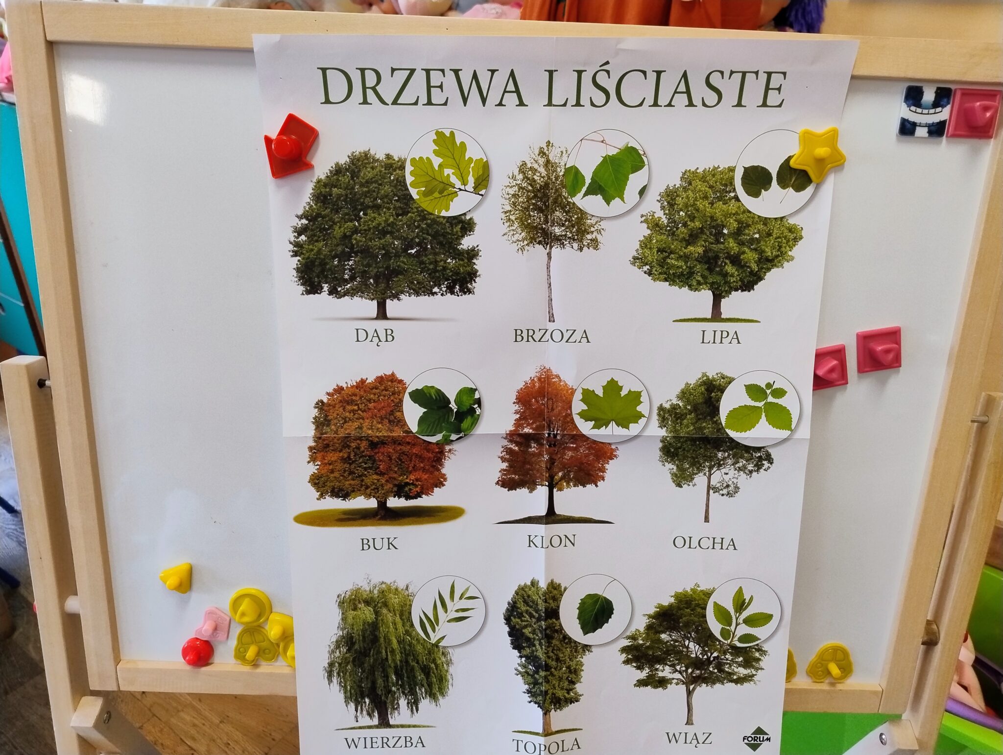 Dnia 10.10.2025r. w grupie II “Kotki” obchodziliśmy Światowy Dzie n Drzewa. Przedszkolaki zapoznały się z budową drzewa i ich rodzajami, oglądały kolorowe liście a także poznały znaczenie drzew w przhyrodzie.