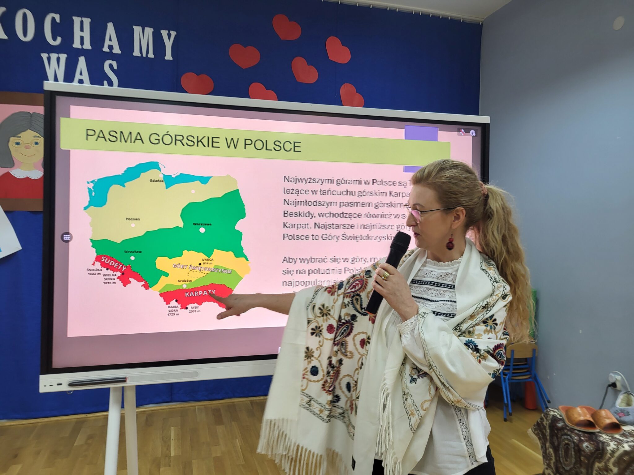 Nauczycielka Ewa Szatkowska 17 lutego 2026 r. przeprowadziła zajęcia przybliżające dzieciom wiedzę na temat regionu gór pt.:” Jak dobrze nam zdobywać góry?”. Celem zajęć było: -Zapoznanie z pojęciami: