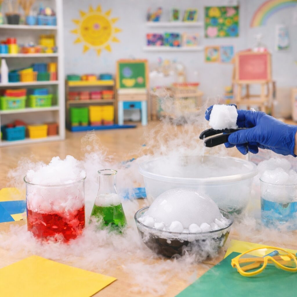 Dnia 20.02.2026 w naszym przedszkolu zostały przeprowadzone zajęcia badawcze z wykorzystaniem suchego lodu. Celem warsztatów było rozbudzenie ciekawości poznawczej dzieci oraz przybliżenie im w przystępny sposób wybranych zjawisk fizycznych. Dzieci