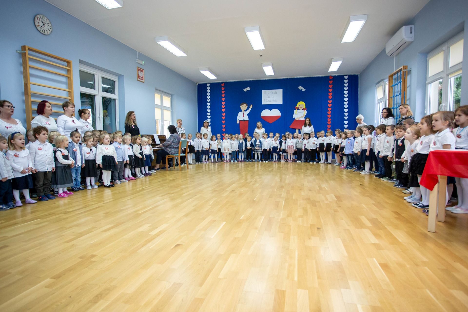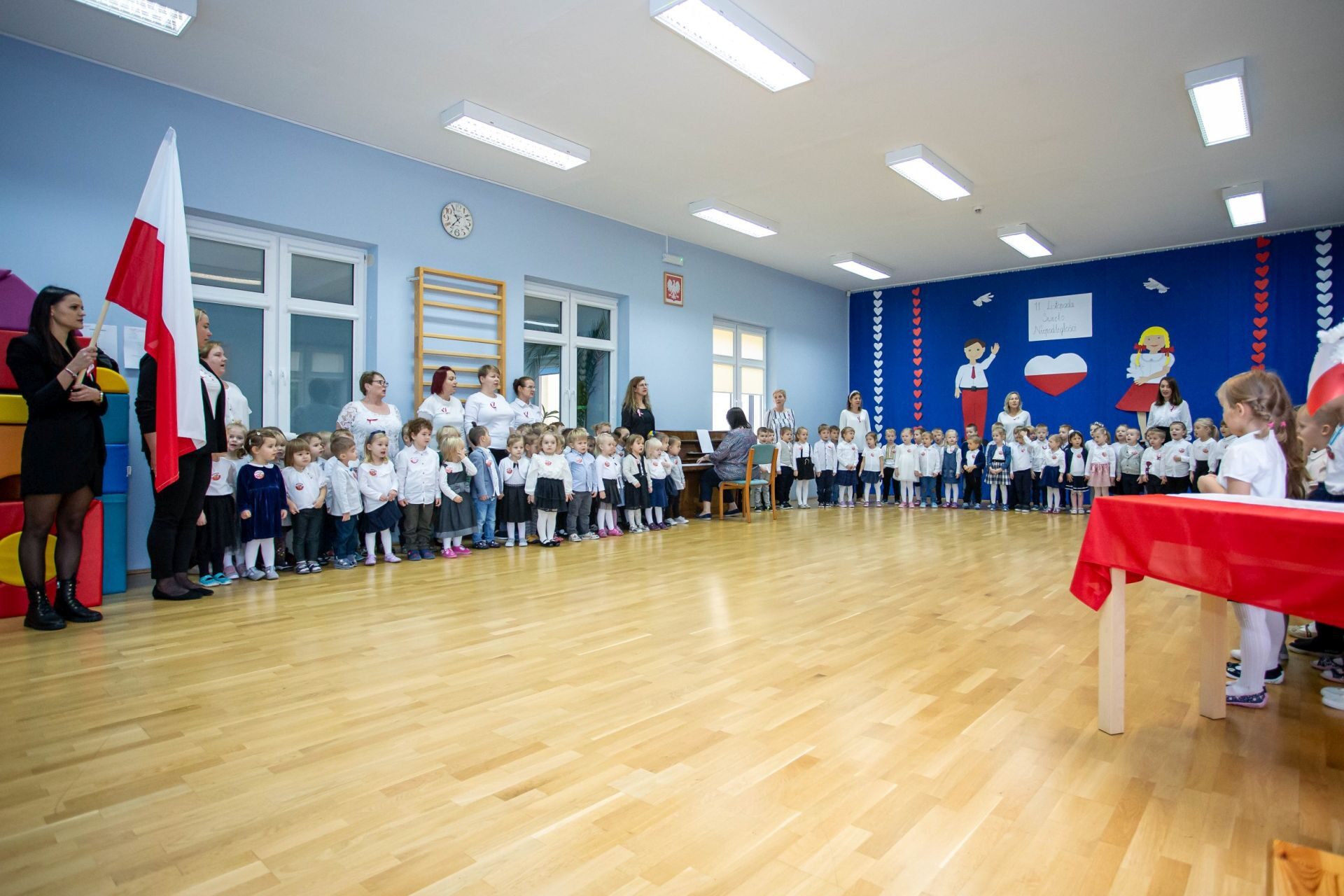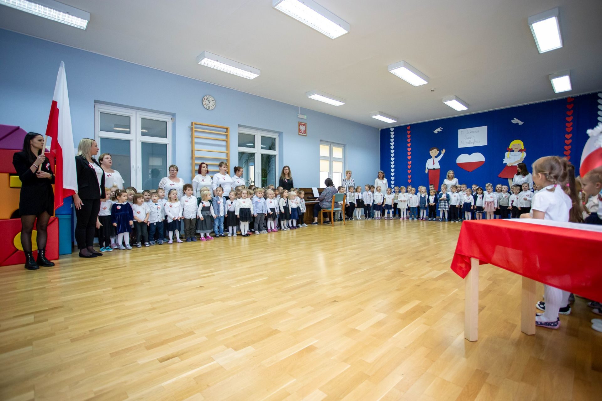 Dnia 10 listopada w naszym przedszkolu świętowaliśmy Dzień Niepodległości. W tym dniu wszyscy byliśmy ubrani w stroje galowe. na początku odśpiewaliśmy hymn Polski ” Mazurek Dąbrowskiego”, następnie każda grupa wystąpiła ze swoim programem artystycznym. Na zakończenie tego uroczystego dnia nastąpiło wręczenie nagród za udział w rodzinnym konkursie plastycznym “Przedszkolak bezpieczny w sieci”. Zapraszamy do obejrzenia galerii.
