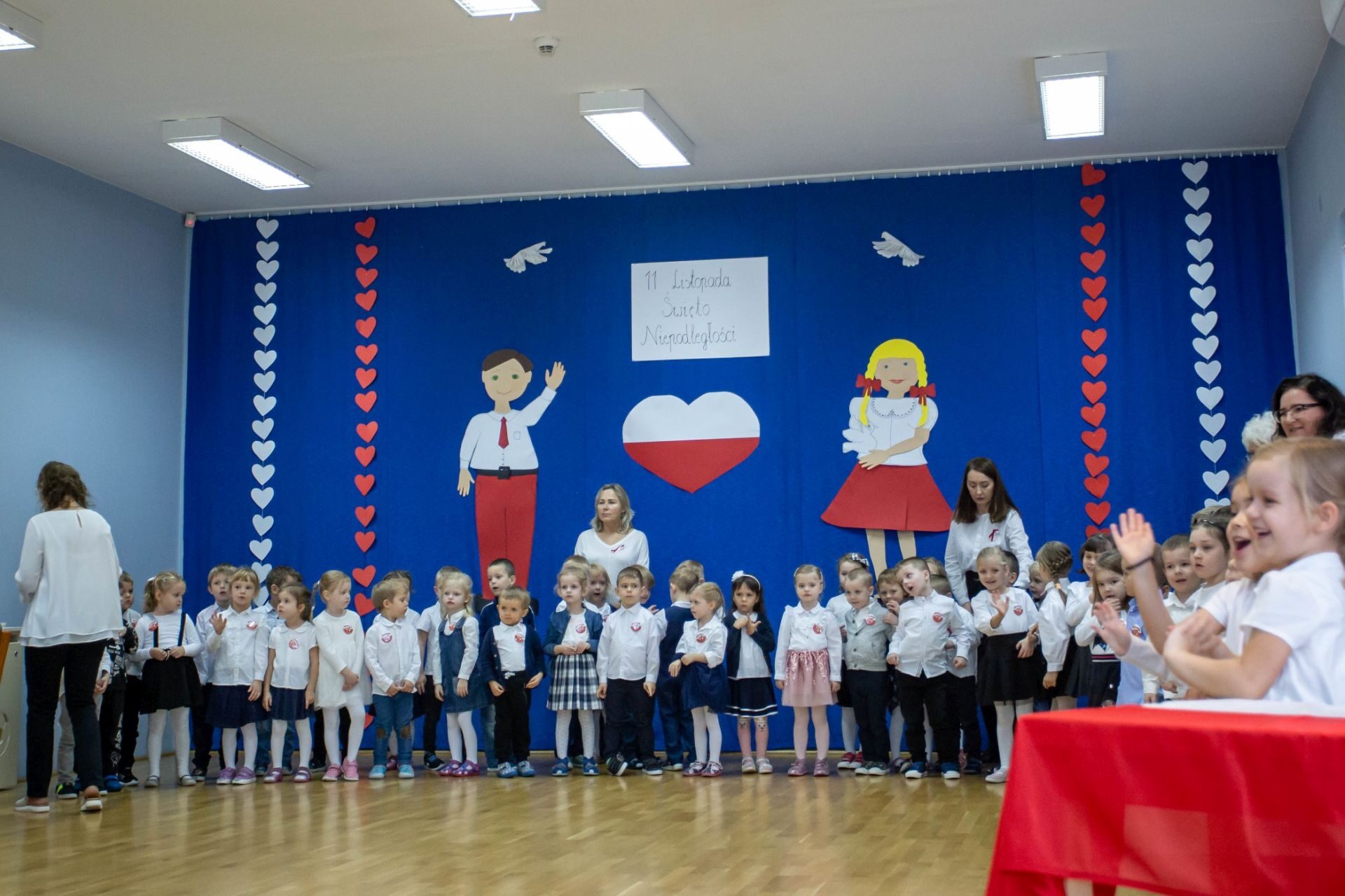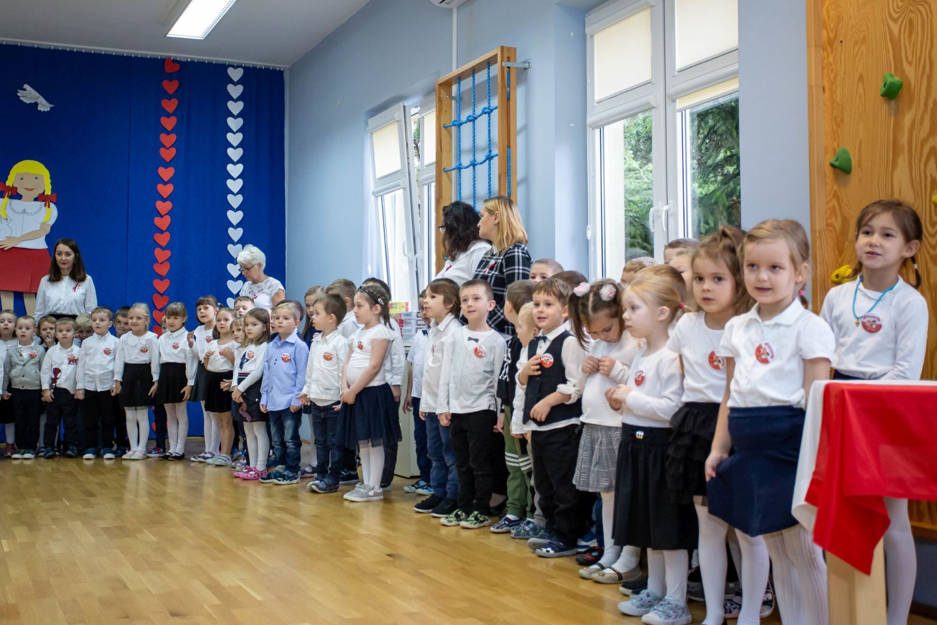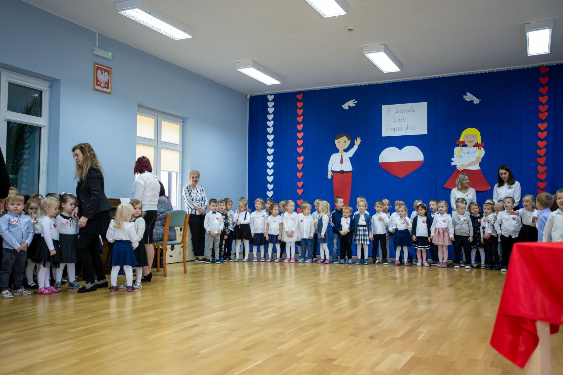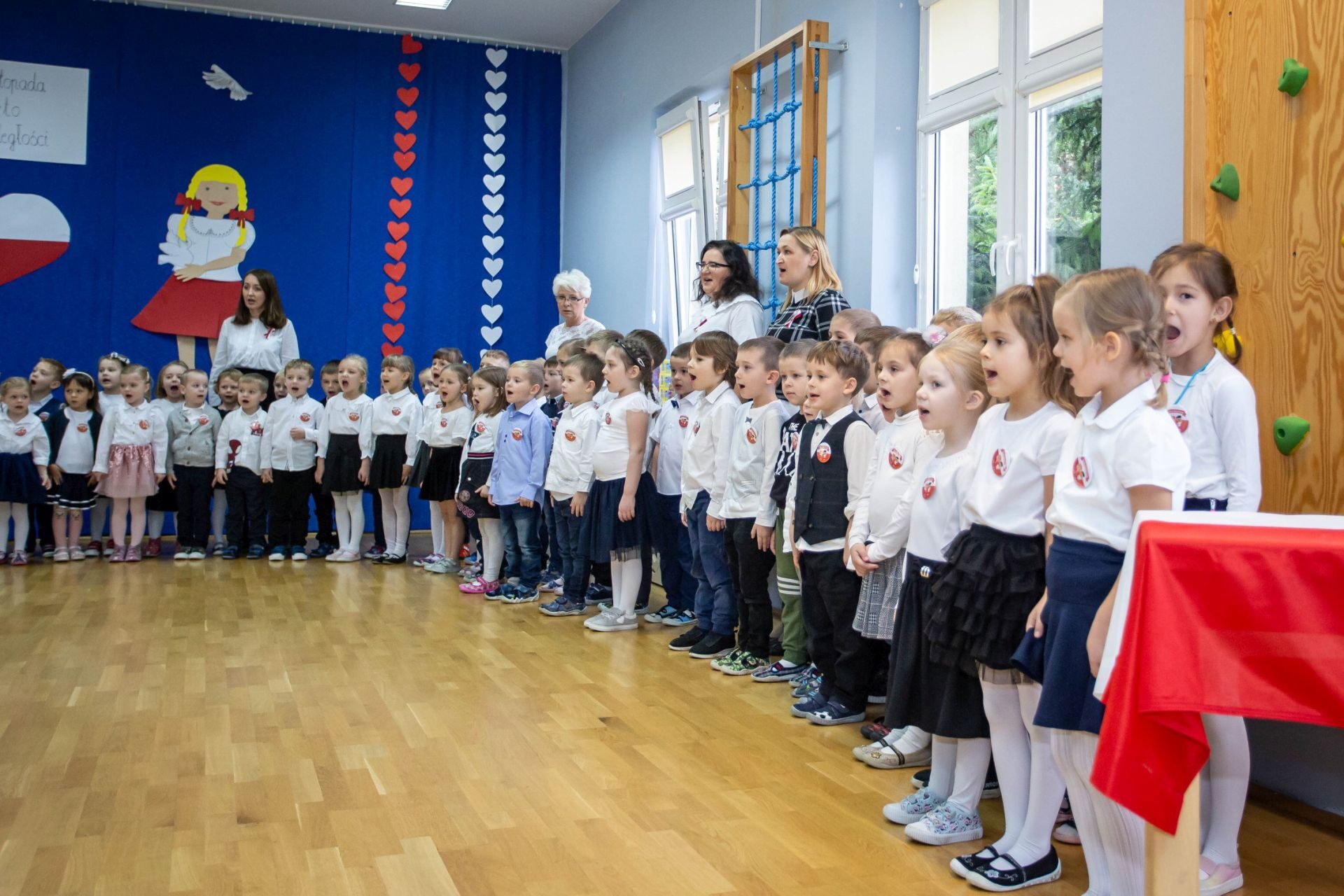 Dnia 10 listopada w naszym przedszkolu świętowaliśmy Dzień Niepodległości. W tym dniu wszyscy byliśmy ubrani w stroje galowe. na początku odśpiewaliśmy hymn Polski ” Mazurek Dąbrowskiego”, następnie każda grupa wystąpiła ze swoim programem artystycznym. Na zakończenie tego uroczystego dnia nastąpiło wręczenie nagród za udział w rodzinnym konkursie plastycznym “Przedszkolak bezpieczny w sieci”. Zapraszamy do obejrzenia galerii.