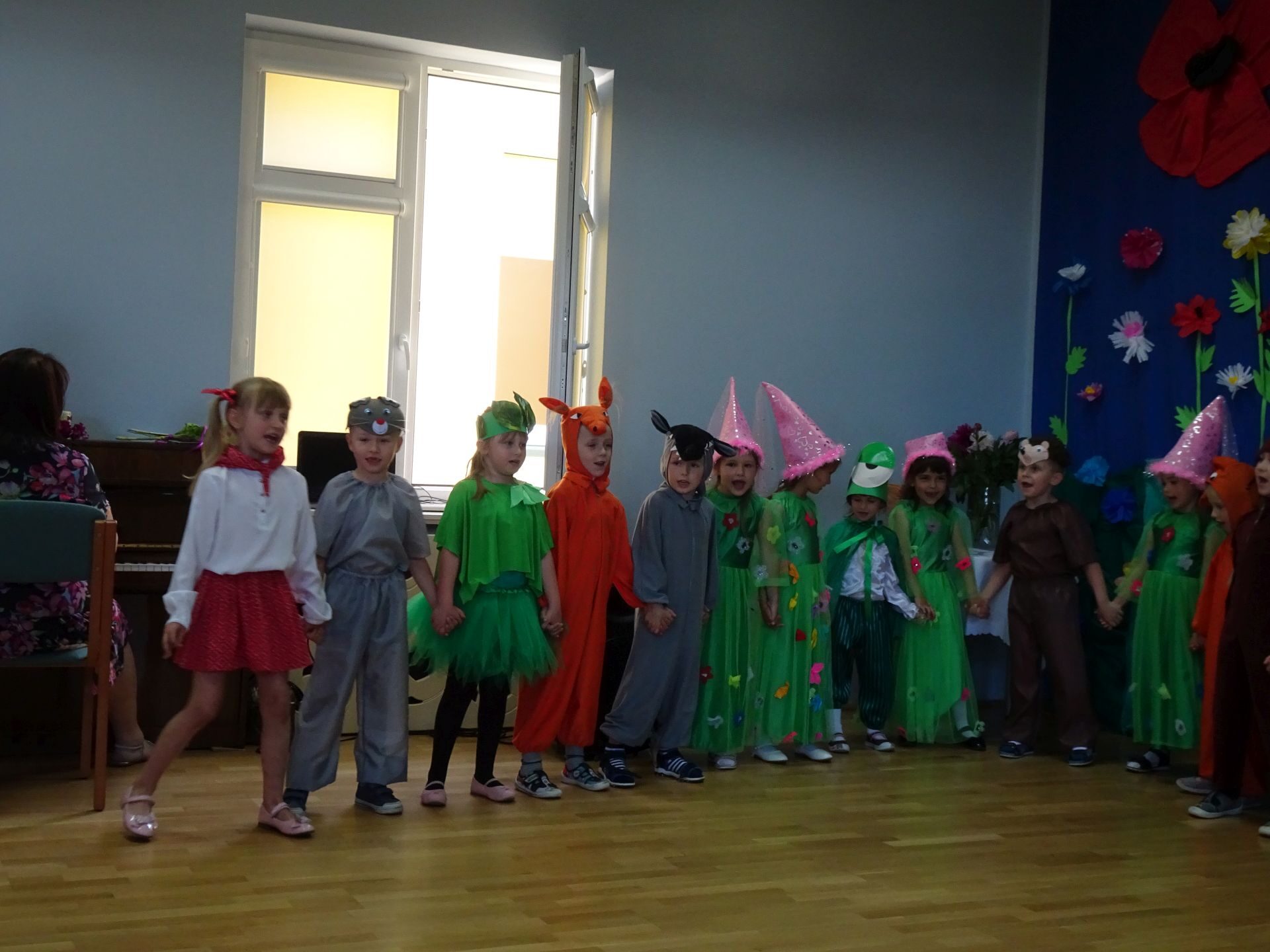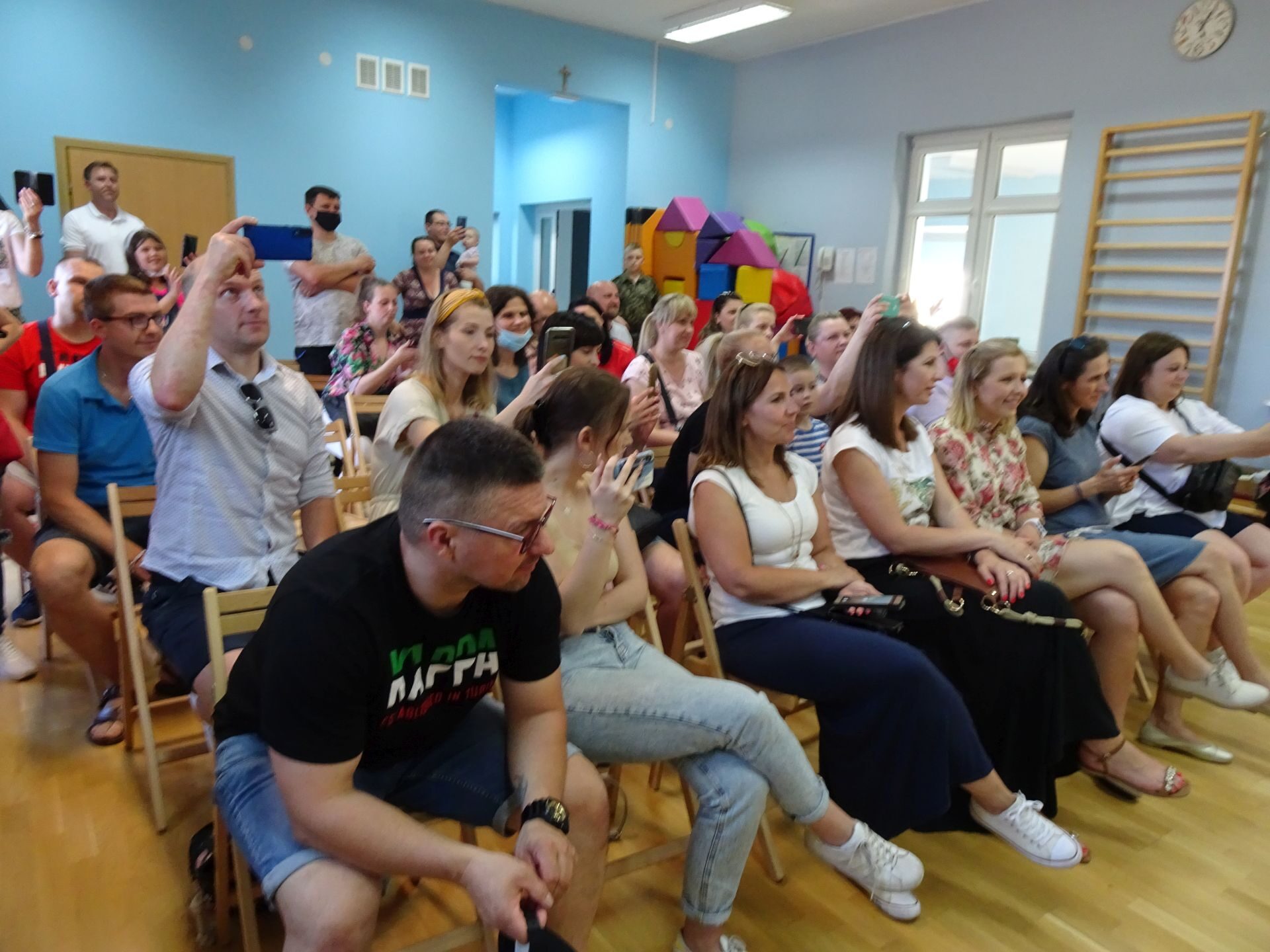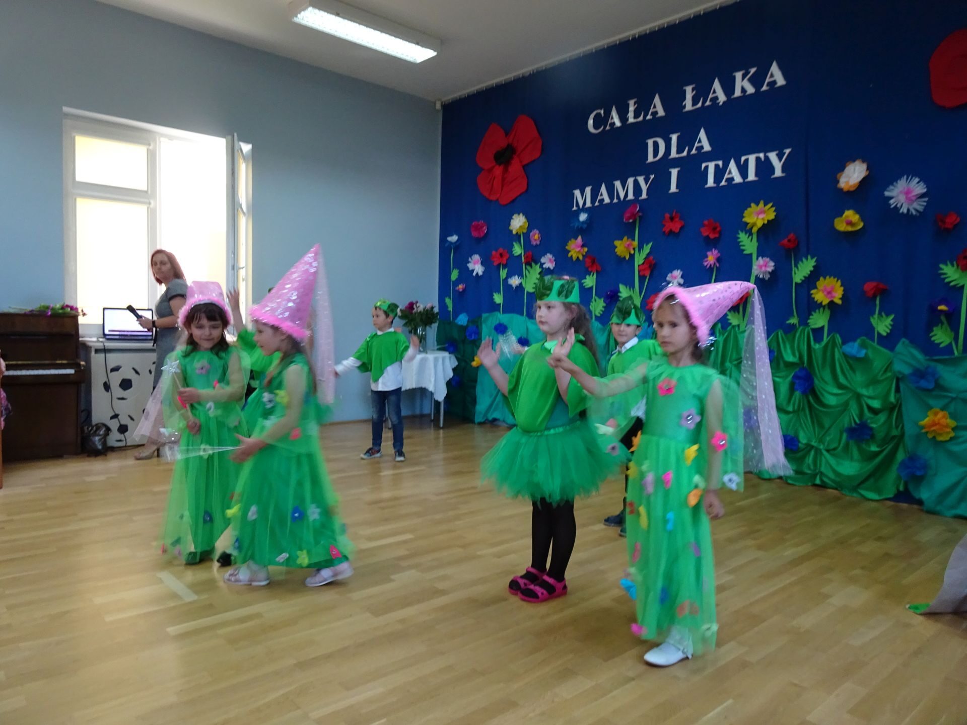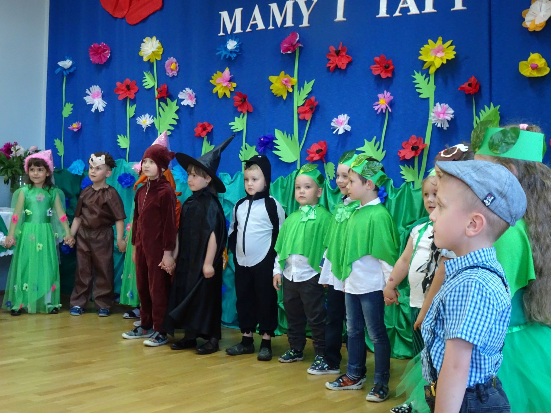 Mama i tata to wielkie słowa, które są synonimem miłości, dobra, ciepła rodzinnego i szczęścia. Mama i tata to pierwsze słowa każdego dziecka. Dla małego dziecka rodzice to najważniejsze osoby w jego życiu, należy więc dbać, troszczyć się i pielęgnować więź między dzieckiem a rodzicem. Dlatego też co roku w naszym przedszkolu nauczycielki pomagają dzieciom wyrazić ich miłość do rodziców organizując Dzień Matki i Ojca. Z tej właśnie okazji 18.06.2021 odbyło się uroczyste przedstawienie. Sala przedszkolna stała się sceną, na której dzieci w pięknych strojach zaprezentowały bogaty program artystyczny. Swój występ rozpoczęły piosenką a następnie przedstawieniem. Dzieci wręczyły rodzicom własnoręcznie wykonane upominki.