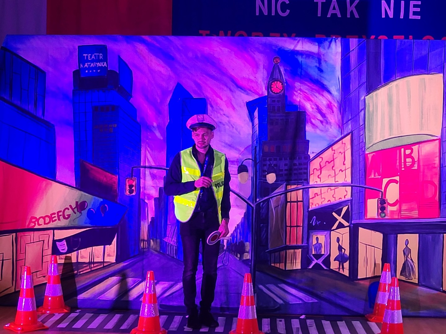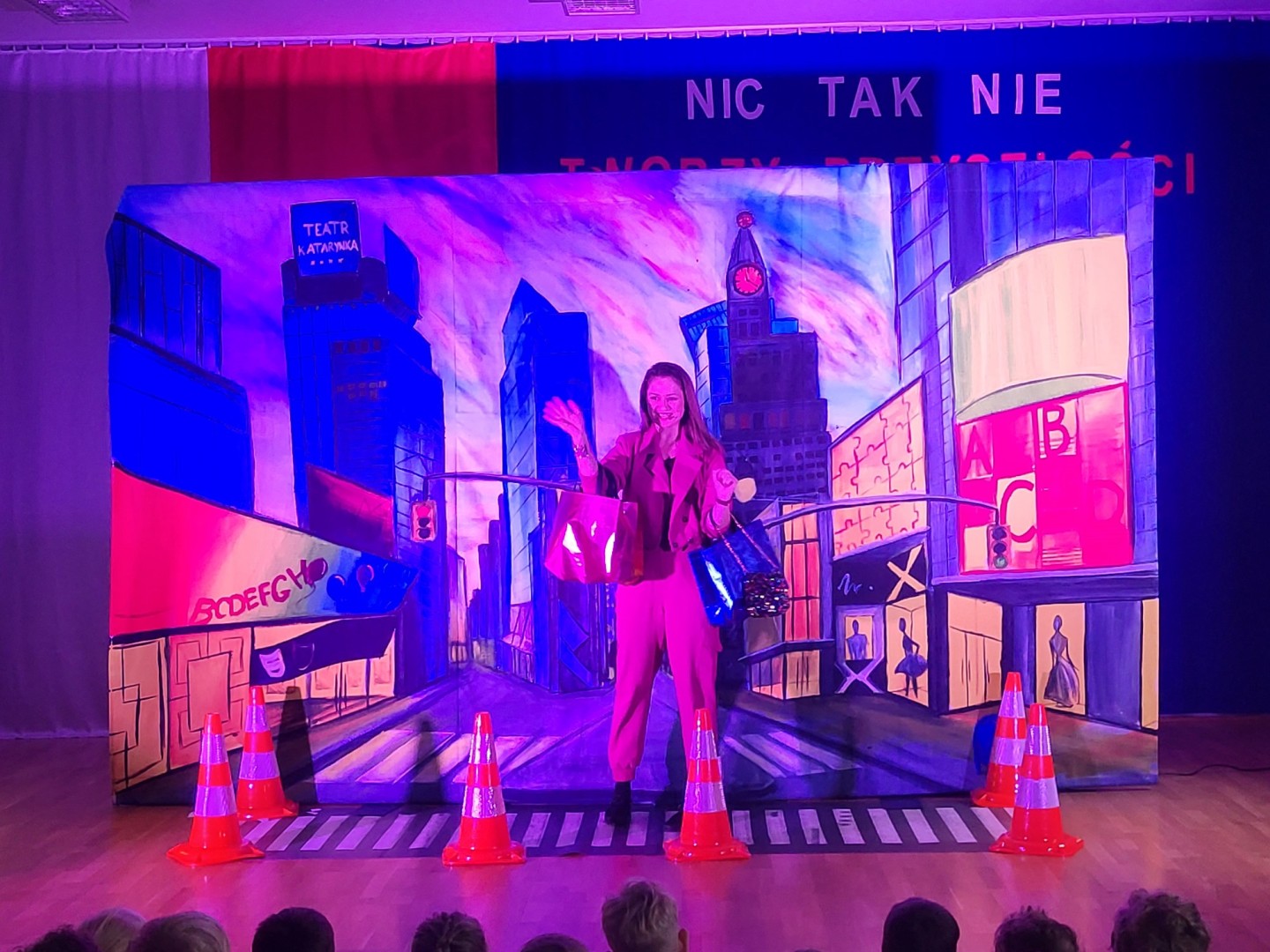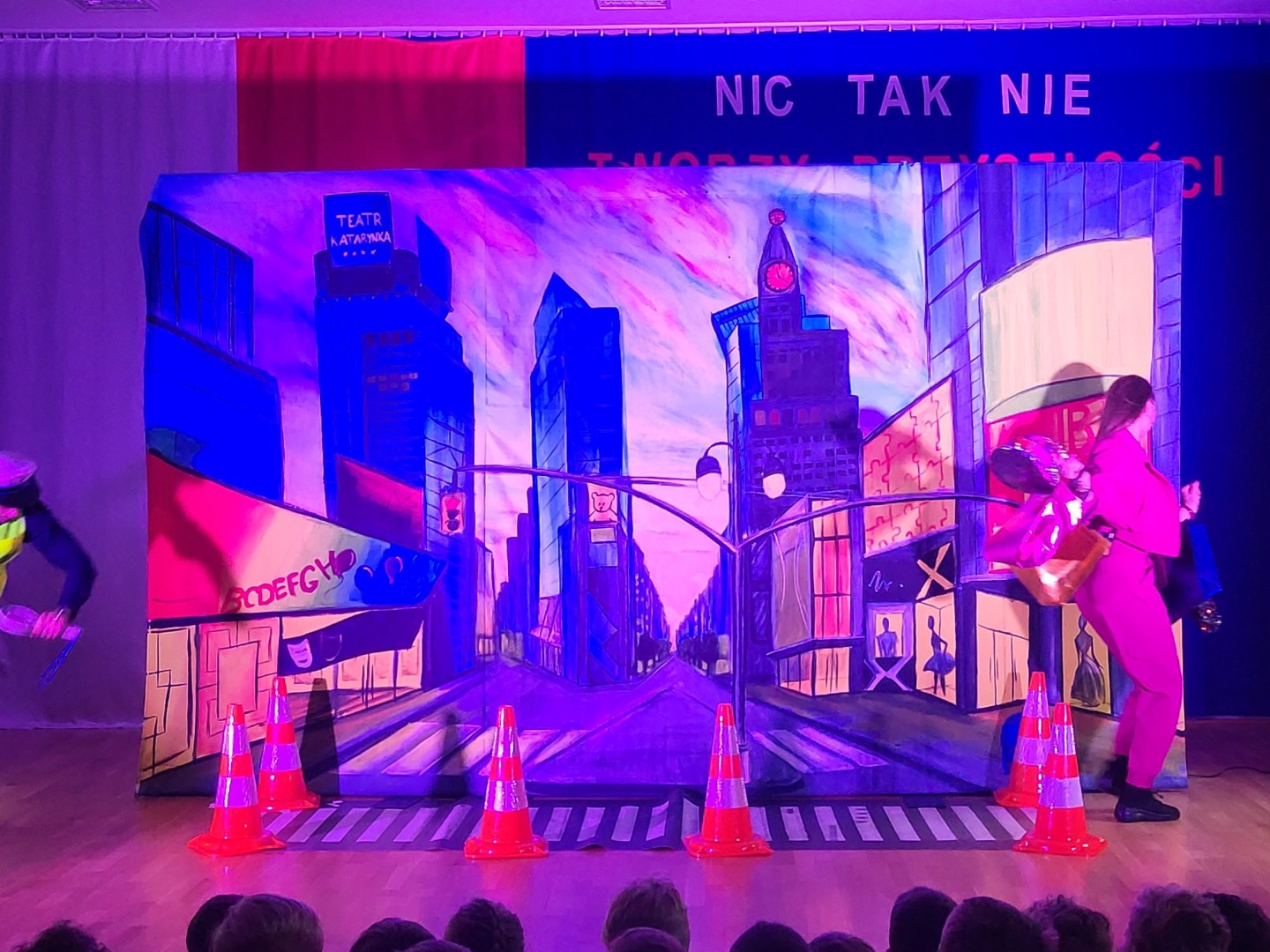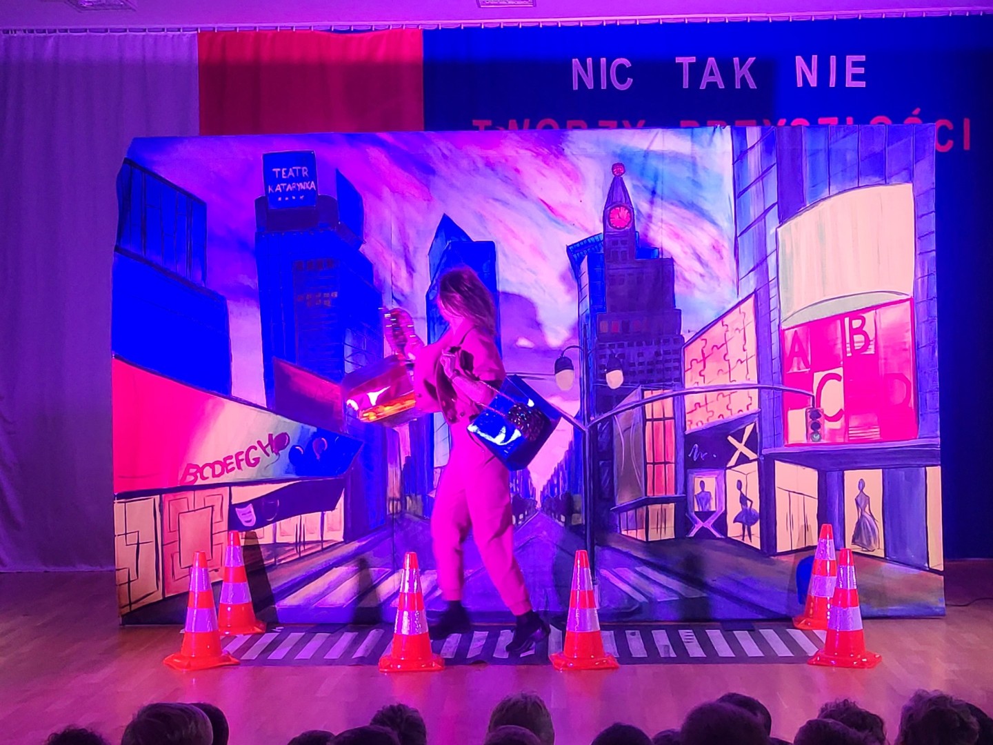 14 .11.2025r gościliśmy w naszym przedszkolu aktorów z Teatru “Katarynka, którzy zaprezentowali nam spektakl edukacyjno-profilaktyczny. Tematem przewodnim przedstawienia było bezpieczeństwo zarówno w ruchu drogowym, jak i podczas zagrożenia pożarem. Dzieci utrwaliły numer alarmowy 112, zobaczyły w akcji strażaka, dowiedziały się jak należy wychodzić z pomieszczenia zadymionego.Pan Policjant wraz z Wiolettą z Wydziału Ruchu Drogowego, nauczyli przedszkolaki jak przechodzić przez ulice. Na przykładzie nierozważnej Łucji i zabawnego kierowcy – Gienia, dzieci zobaczyły  do czego może dojść na ulicy jeśli będziemy nieuważni. Wszystko zostało przedstawione w kabaretowo-musicalowej formie.