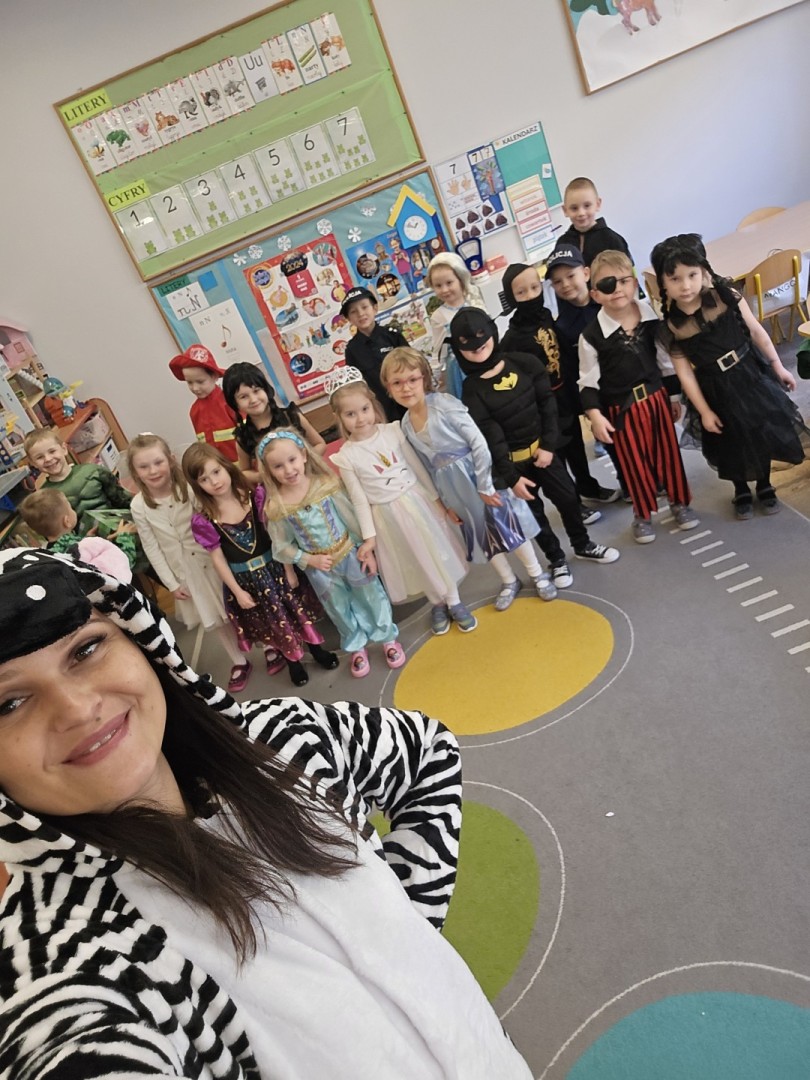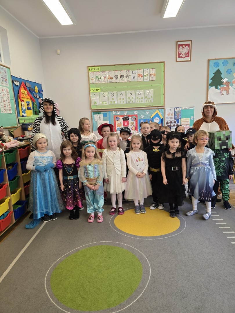 Dzięki tematycznej dekoracji, składającej się z palmowych liści, lian oraz balonów z wizerunkami dzikich zwierząt, wszyscy poczuliśmy się jak prawdziwi odkrywcy, którzy trafili w sam środek egzotycznej przyrody. Uczestnicy balu zachwycali pięknymi, kolorowymi strojami – nie zabrakło zarówno mieszkańców dżungli, jak i ulubionych bohaterów z bajek. Każde dziecko z radością wcieliło się w swoją rolę, przenosząc się na chwilę do magicznego świata pełnego barw i dźwięków.