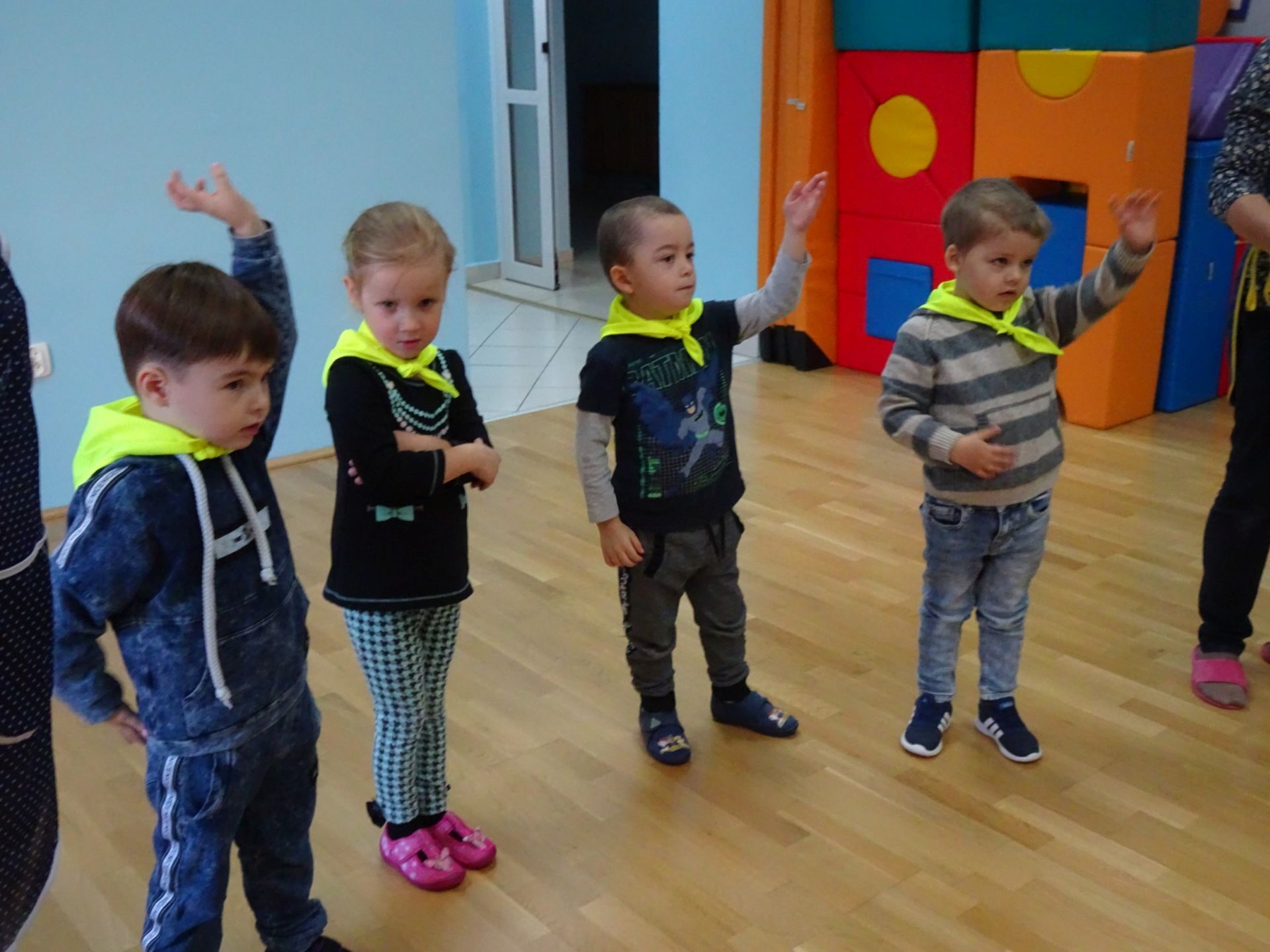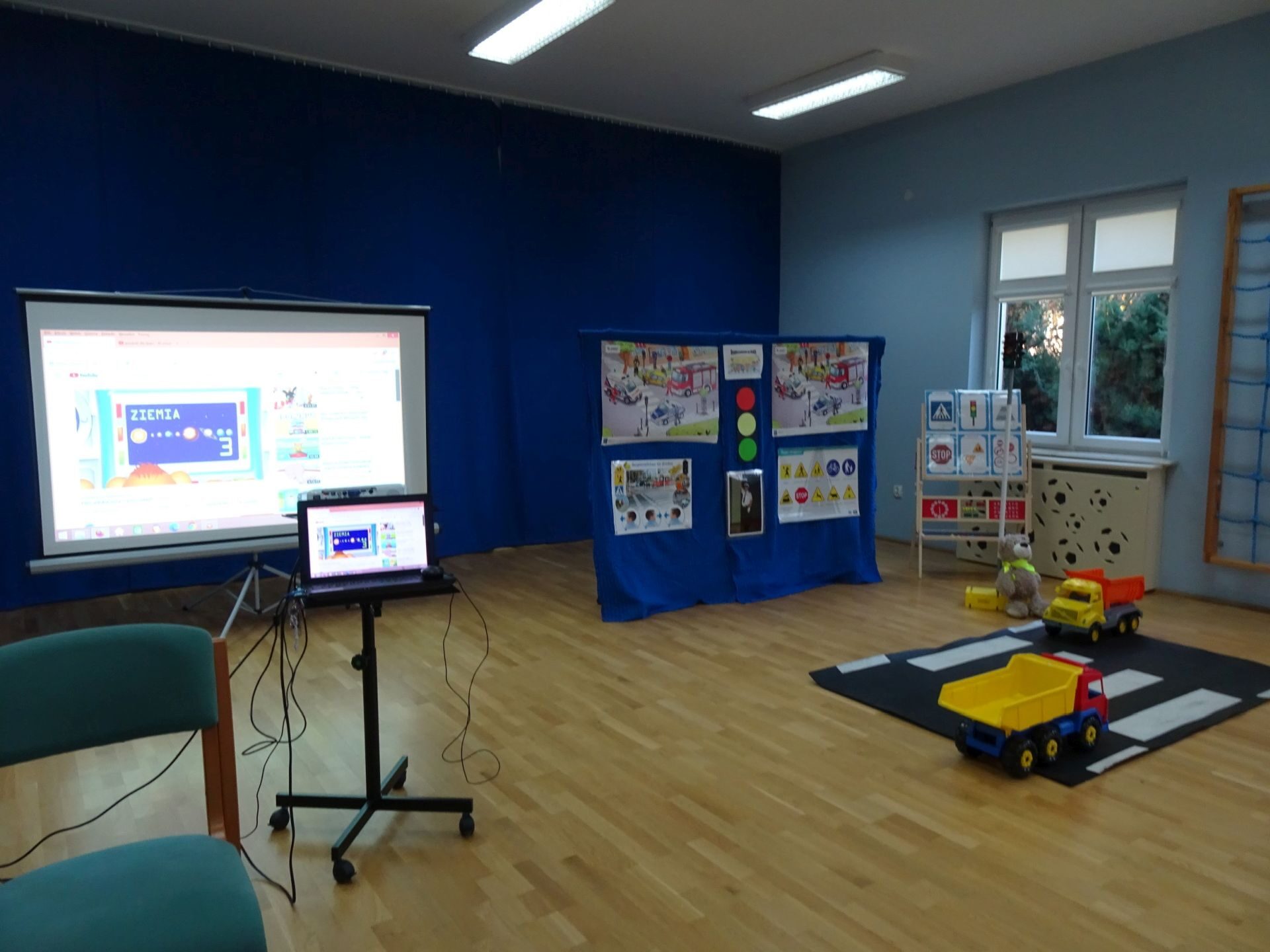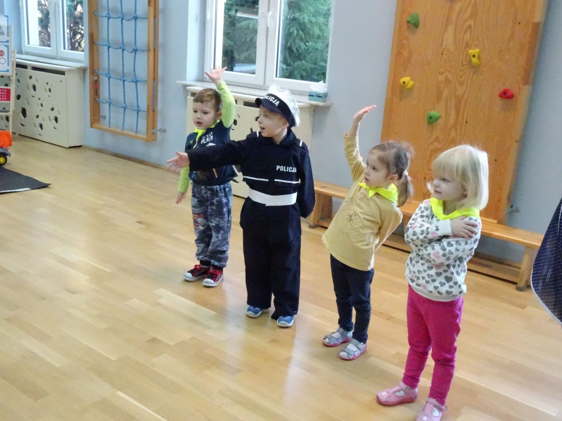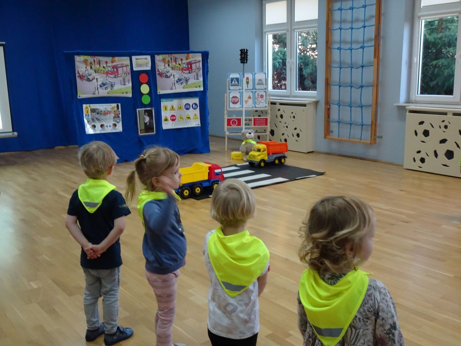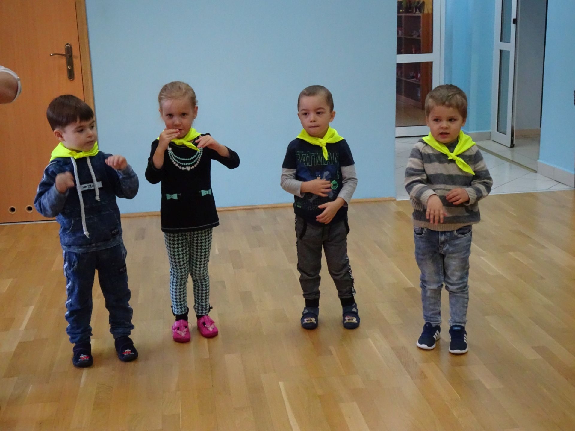 Dnia 29.10.2021 w grupie Kotki odbyły się zajęcia mające na celu rozwijanie u dzieci wiedzy na temat bezpieczeństwa w ruchu drogowym i pieszym. Dzieci ilustrowały ruchem piosenkę „Budujemy mosty”, słuchały opowiadania „Miś i światła sygnalizatora”. Oglądały film edukacyjny pt. „Zasady bezpieczeństwa drogowego” a następnie w odblaskowych chustach przechodziły przez przejście dla pieszych sprawdzając kolor światła na sygnalizatorze. Dziecko ubrane w strój Policjanta sprawdzało prawidłowość wykonania zadania. Na koniec dzieci doskonale bawiły się przy piosence „Kolorowe światła” w kierowców samochodów. Dzięki ciekawym zajęciom nasze przedszkolaki doskonale znają zasady ruchu drogowego.