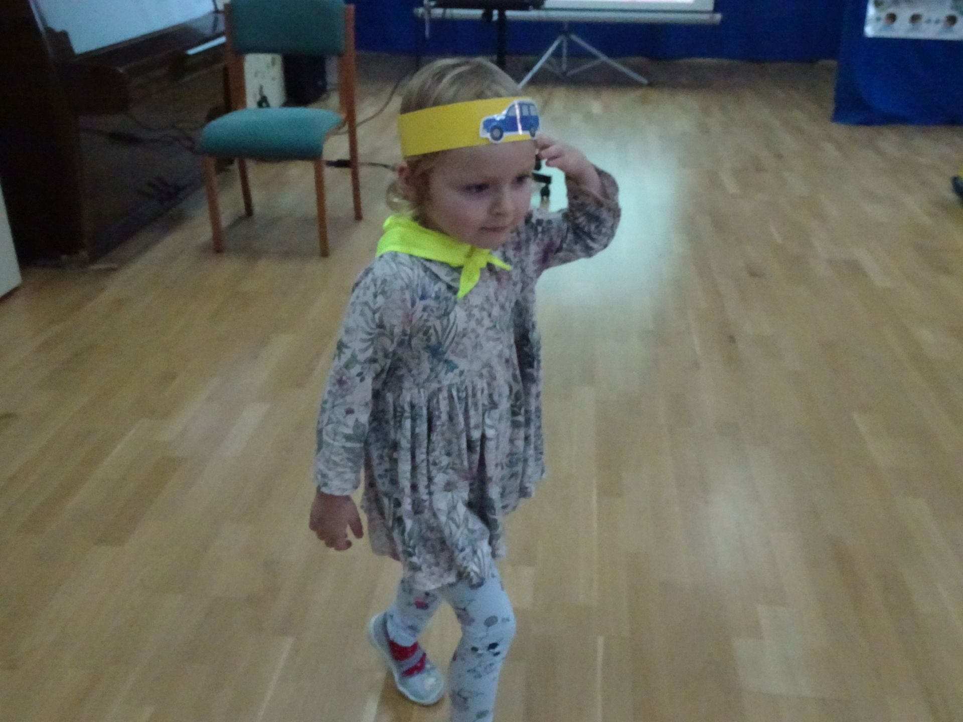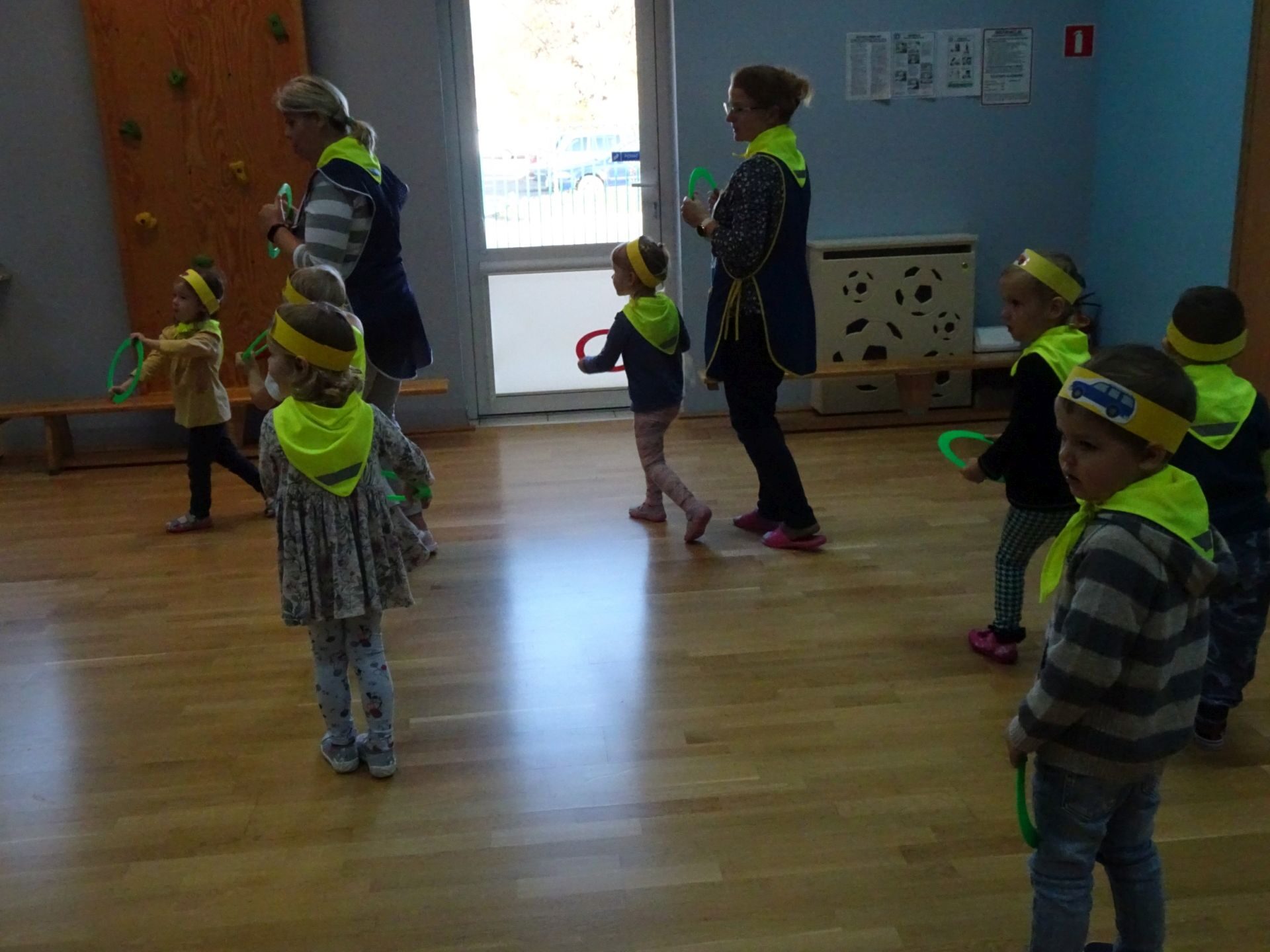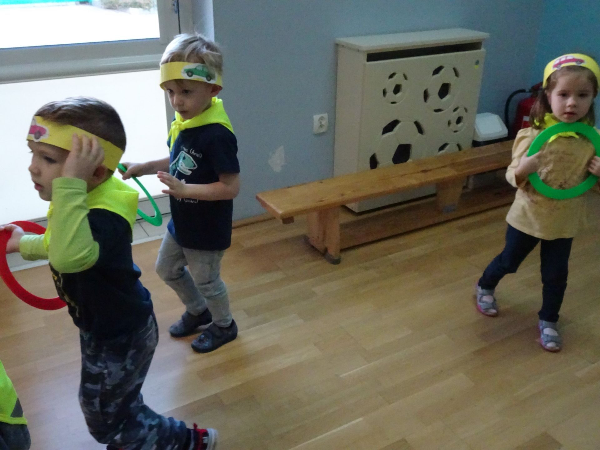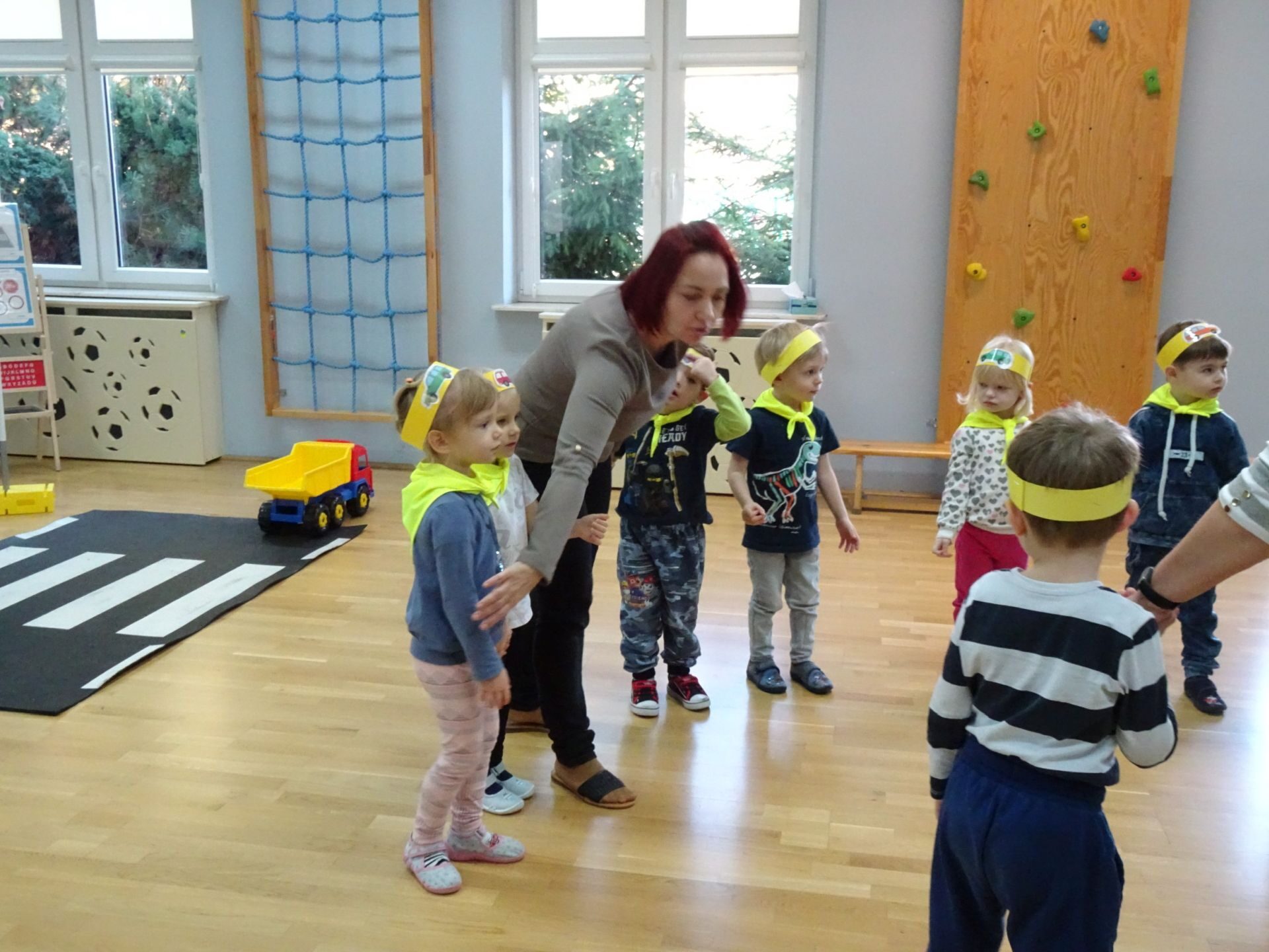 Dnia 29.10.2021 w grupie Kotki odbyły się zajęcia  mające na celu rozwijanie u dzieci wiedzy na temat bezpieczeństwa w ruchu drogowym i pieszym. Dzieci ilustrowały ruchem piosenkę „Budujemy mosty”, słuchały opowiadania „Miś i światła sygnalizatora”. Oglądały film edukacyjny pt. „Zasady bezpieczeństwa drogowego” a następnie w odblaskowych chustach przechodziły przez przejście dla pieszych sprawdzając kolor światła na sygnalizatorze. Dziecko ubrane w strój Policjanta sprawdzało prawidłowość wykonania zadania. Na koniec dzieci doskonale bawiły się przy piosence „Kolorowe światła” w kierowców samochodów. Dzięki ciekawym zajęciom nasze przedszkolaki doskonale znają zasady ruchu drogowego.