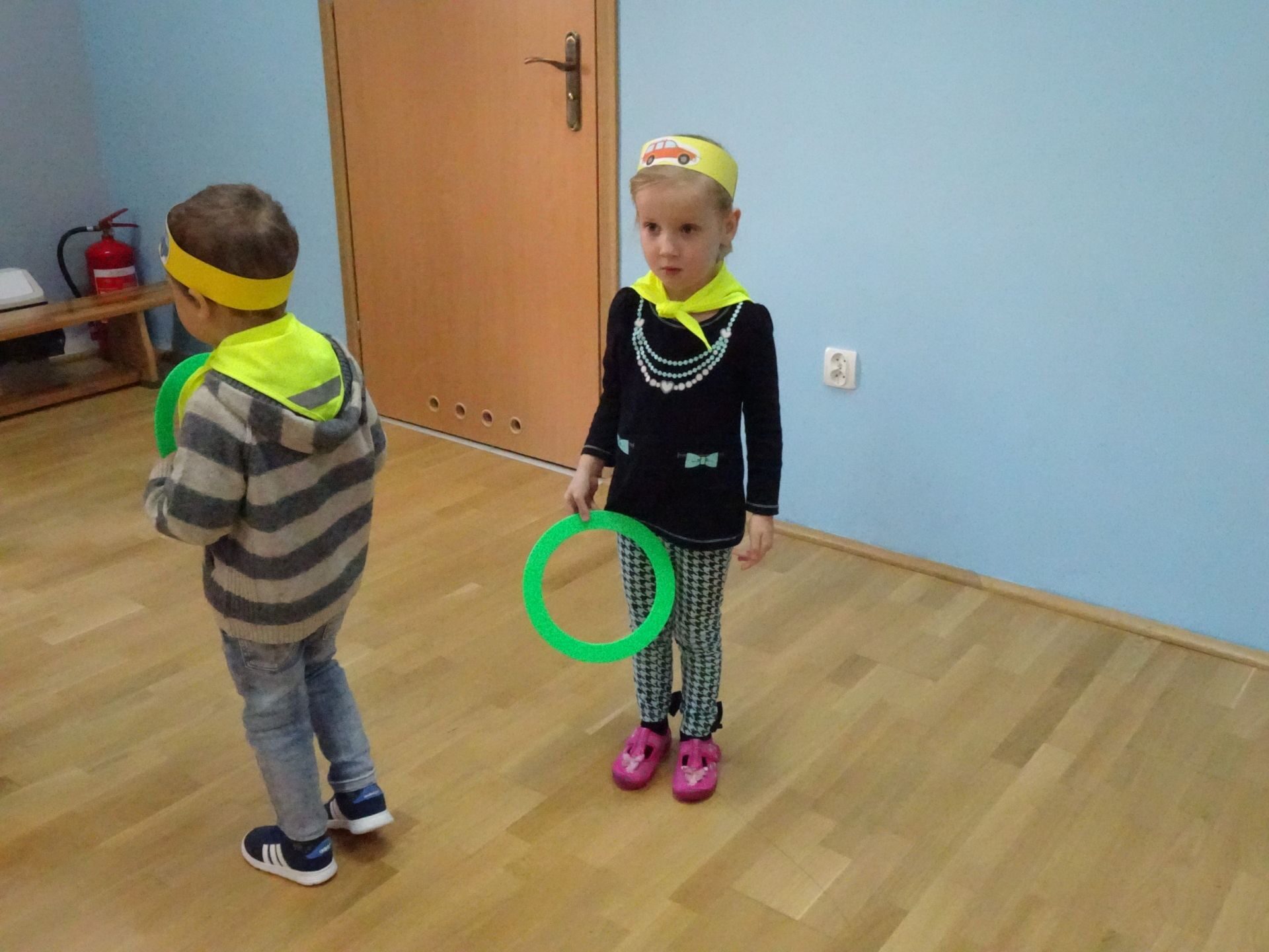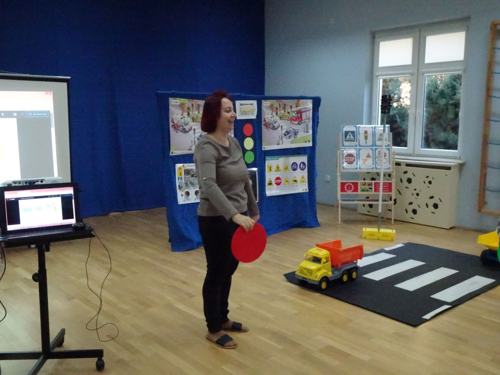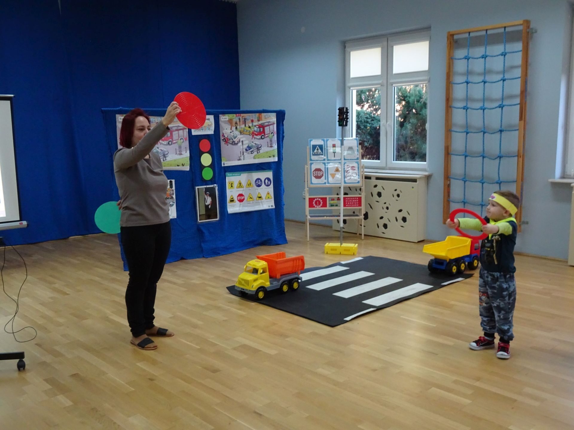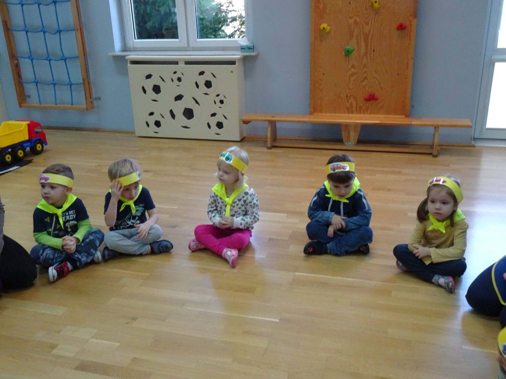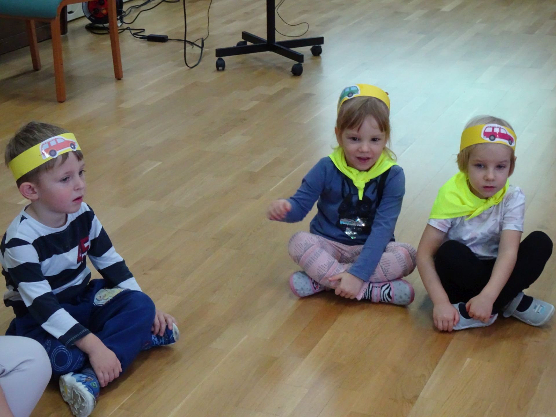 Dnia 29.10.2021 w grupie Kotki odbyły się zajęcia  mające na celu rozwijanie u dzieci wiedzy na temat bezpieczeństwa w ruchu drogowym i pieszym. Dzieci ilustrowały ruchem piosenkę „Budujemy mosty”, słuchały opowiadania „Miś i światła sygnalizatora”. Oglądały film edukacyjny pt. „Zasady bezpieczeństwa drogowego” a następnie w odblaskowych chustach przechodziły przez przejście dla pieszych sprawdzając kolor światła na sygnalizatorze. Dziecko ubrane w strój Policjanta sprawdzało prawidłowość wykonania zadania. Na koniec dzieci doskonale bawiły się przy piosence „Kolorowe światła” w kierowców samochodów. Dzięki ciekawym zajęciom nasze przedszkolaki doskonale znają zasady ruchu drogowego.