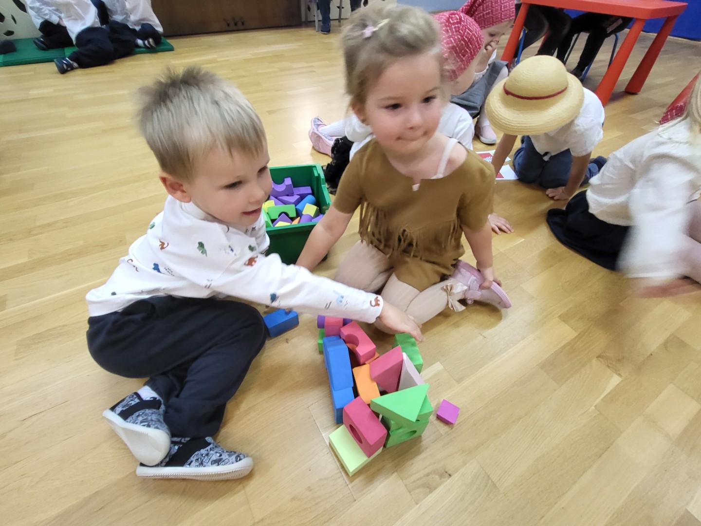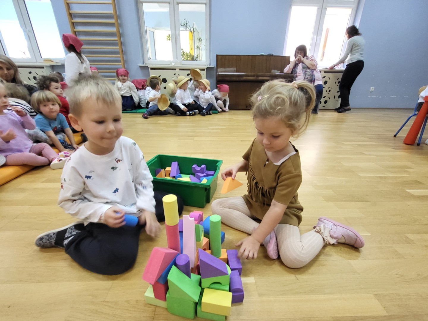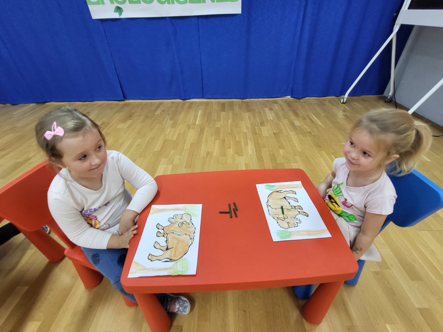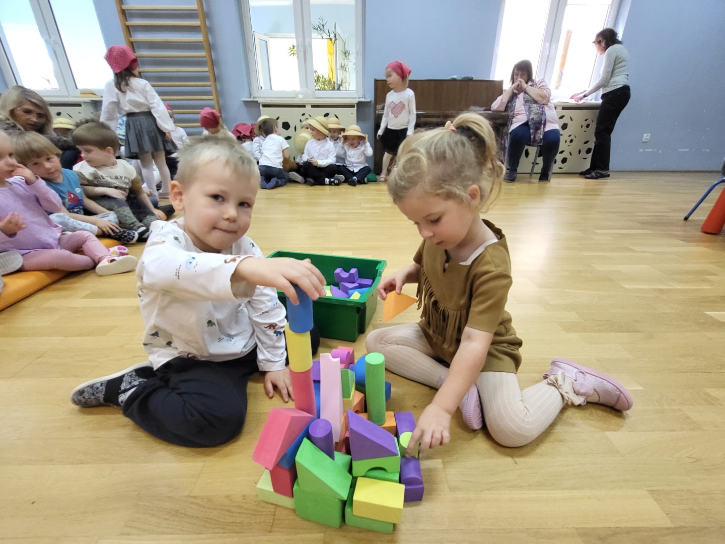 We październiku  grupa Rybki wraz z wychowawcami przygotowała pokaz multimedialny „Białystok – perła Podlasia”.  Przedszkolaki  zostały zapoznane z położeniem Białegostoku oraz Podlasia na mapie Polski, charakterystycznymi miejscami dla tego regionu,  tańcami ludowymi oraz potrawami kuchni podlaskiej.  Na podstawie prezentacji multimedialnej poznały ciekawostki dotyczące stolicy podlasia, wybrały się w wirtualny spacer po Białymstoku. Oglądając “Legendę powstania Białegostoku” dowiedziały się jak zbudowano  to miasto.  Grupa „Rybki” przepięknie zatańczyła taniec regionalny pochodzący z Podlasia “Łysy”. Na zakończenie dzieci miały za zadanie: ułożyć Pałac Branickich w Białymstoku ( 3-latki), puzzle herb Białegostoku (4-latki) oraz pokolorować żubra – króla puszczy- zwierzę żyjące w Białowieskim Parku Narodowym (5-latki).