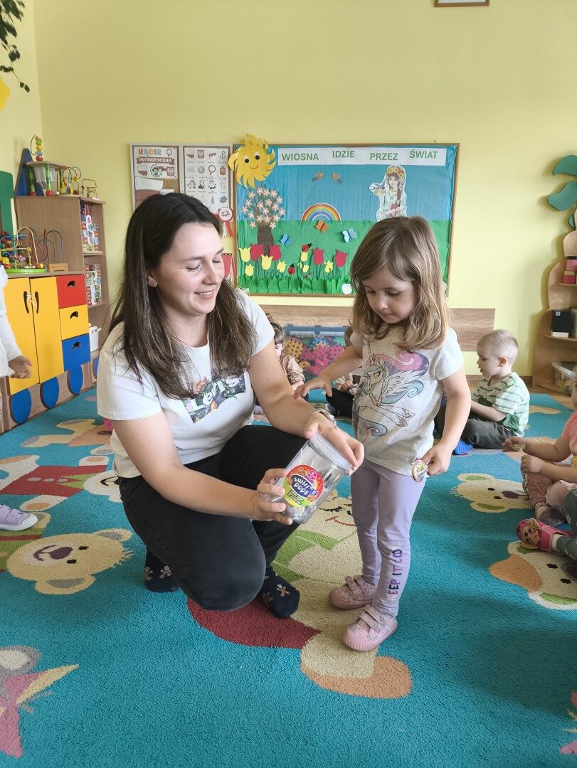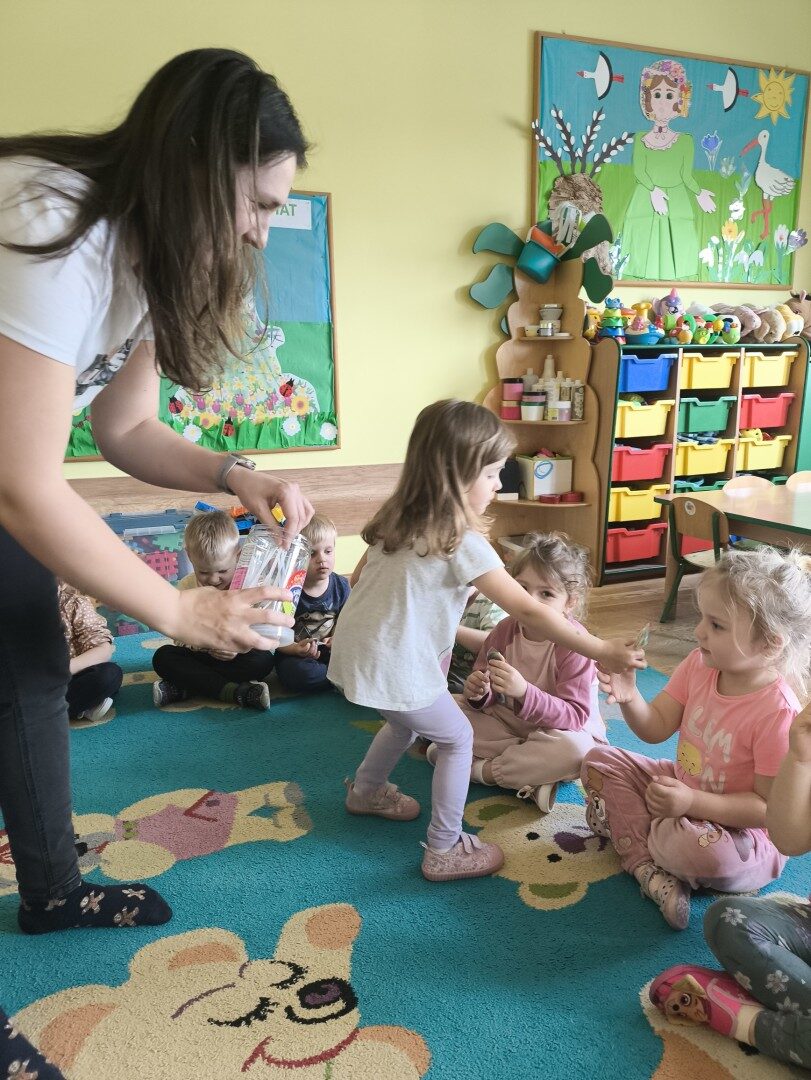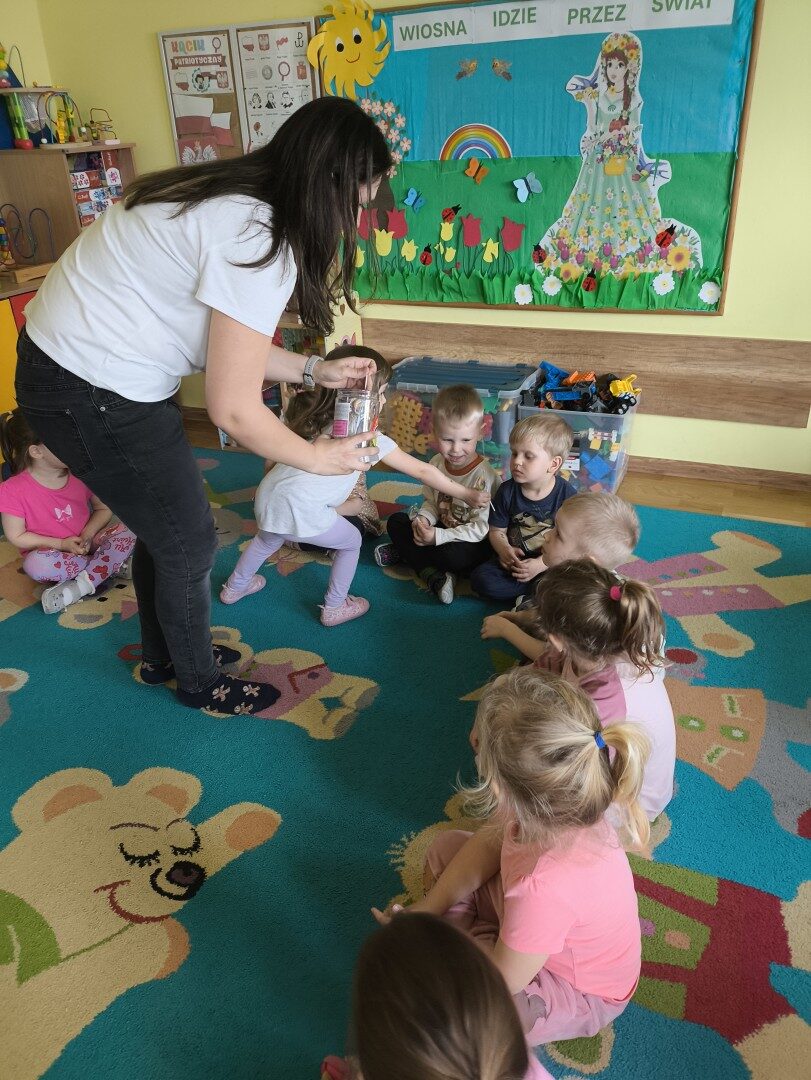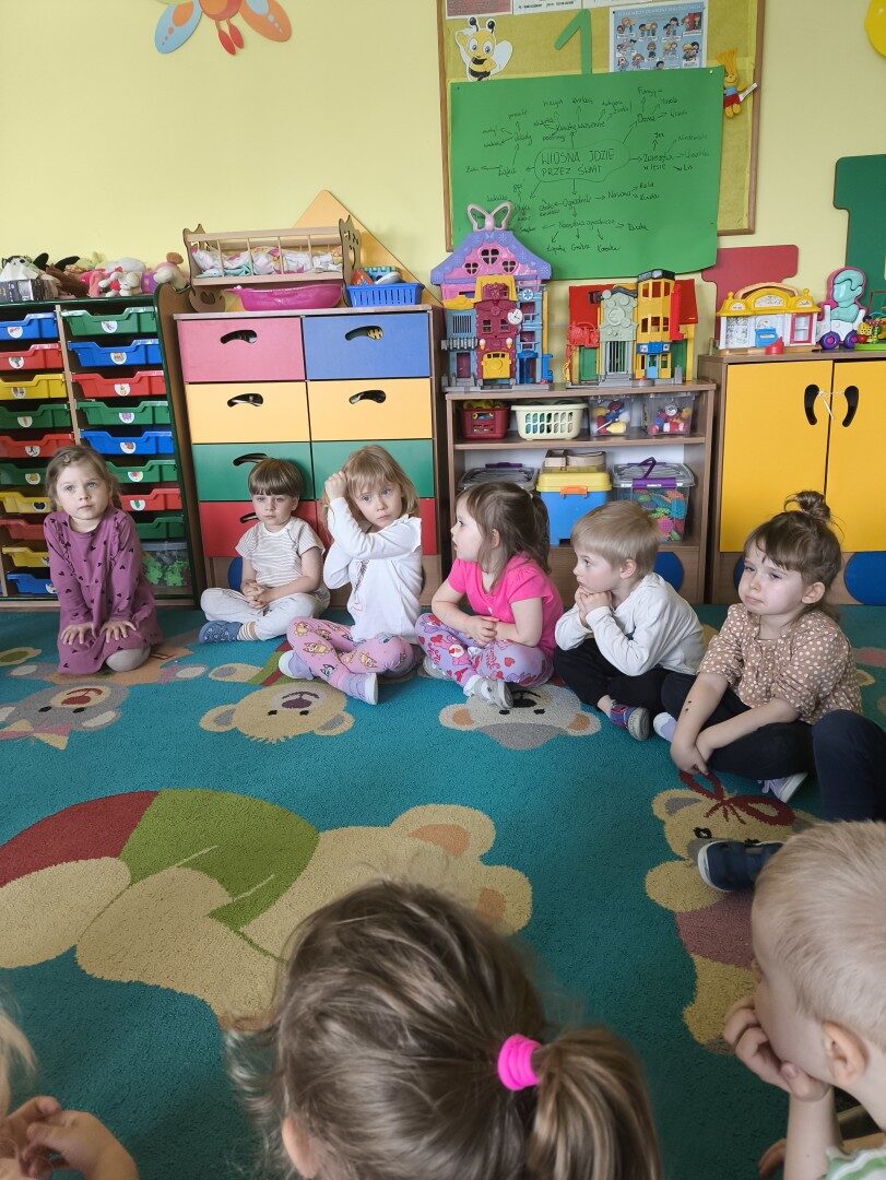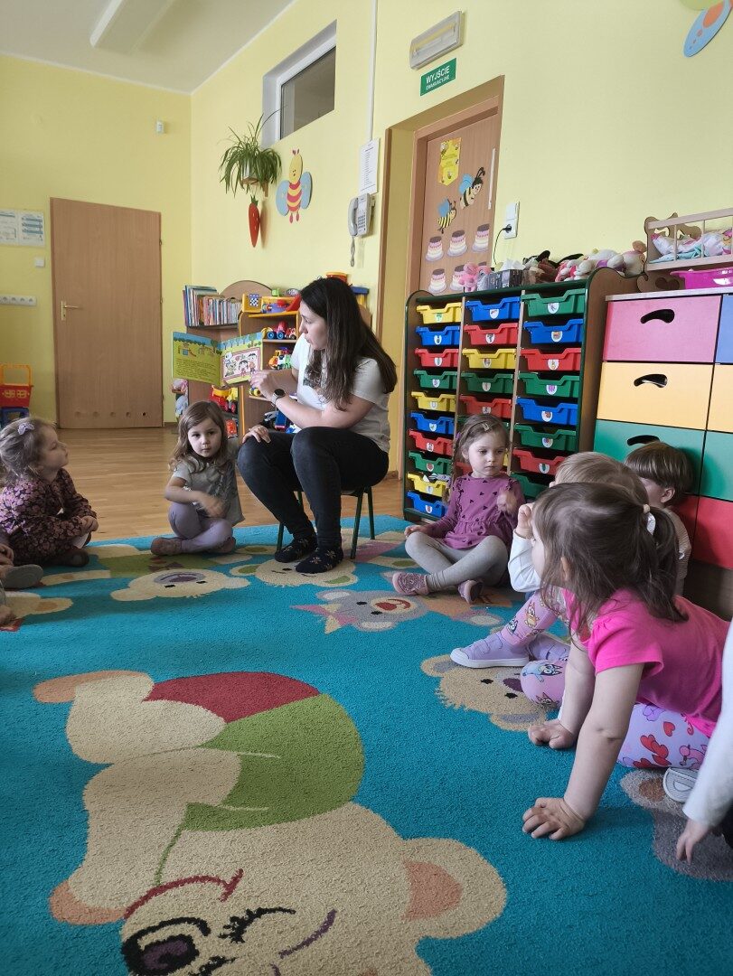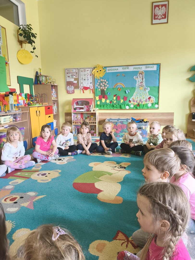 Dnia 1 kwietnia nasze przedszkole odwiedziła mama Martynki Pani Marta. Przeczytała dzieciom bajkę A. Głowińskiej pt.: „Kocia Kicia w aptece”. Przedszkolaki z dużym zainteresowaniem wsłuchiwały się w odpowiednio zaintonowany tekst utworu. Natomiast piękne ilustracje skupiały uwagę wzrokową dzieci. Na zakończenie spotkania dzieci zostały nagrodzone pysznymi lizakami.