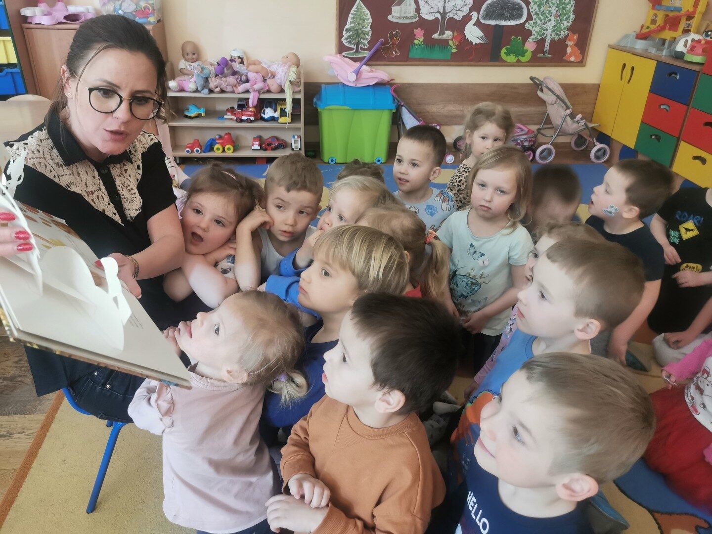 W dniu 7.03.2025r. naszą grupę odwiedziła mama Jasia która przeczytała nam bardzo interesującą książkę pt.: ”Kolorowy potwór ”. Rozmawialiśmy na temat treści opowiadania.  Serdecznie dziękujemy za przybycie do naszej Kotkowej grupy.