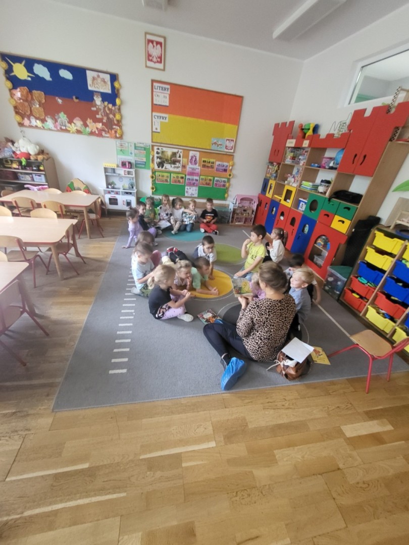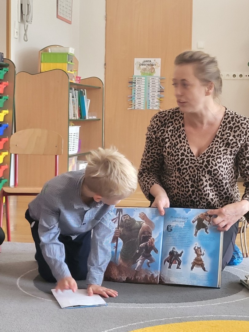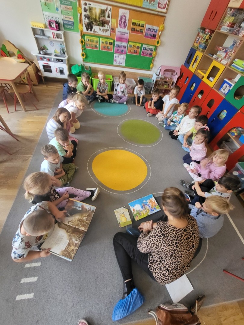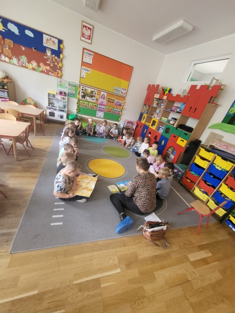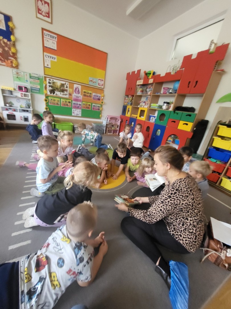 Dnia 01.10.2025r naszą grupę odwiedziła mama Leonarda, która przeczytała dzieciom opowiadania z książeczki “Smoki” oraz “Dobry Pies”, a także pokazała piękne ilustracje w ciekawej  książce  “Magiczne Istoty”. Dzieci z zainteresowaniem wyłuchały historii o bohaterach opowiadań. Dużo emocji wzbudziły i bardzo zaciekawiły dzieci Istoty przedsztawione w książce “Magiczne Istoty”, a był tam m.in.:Centaur, Minotaur, Jednorożec, Feniks czy Syrena.