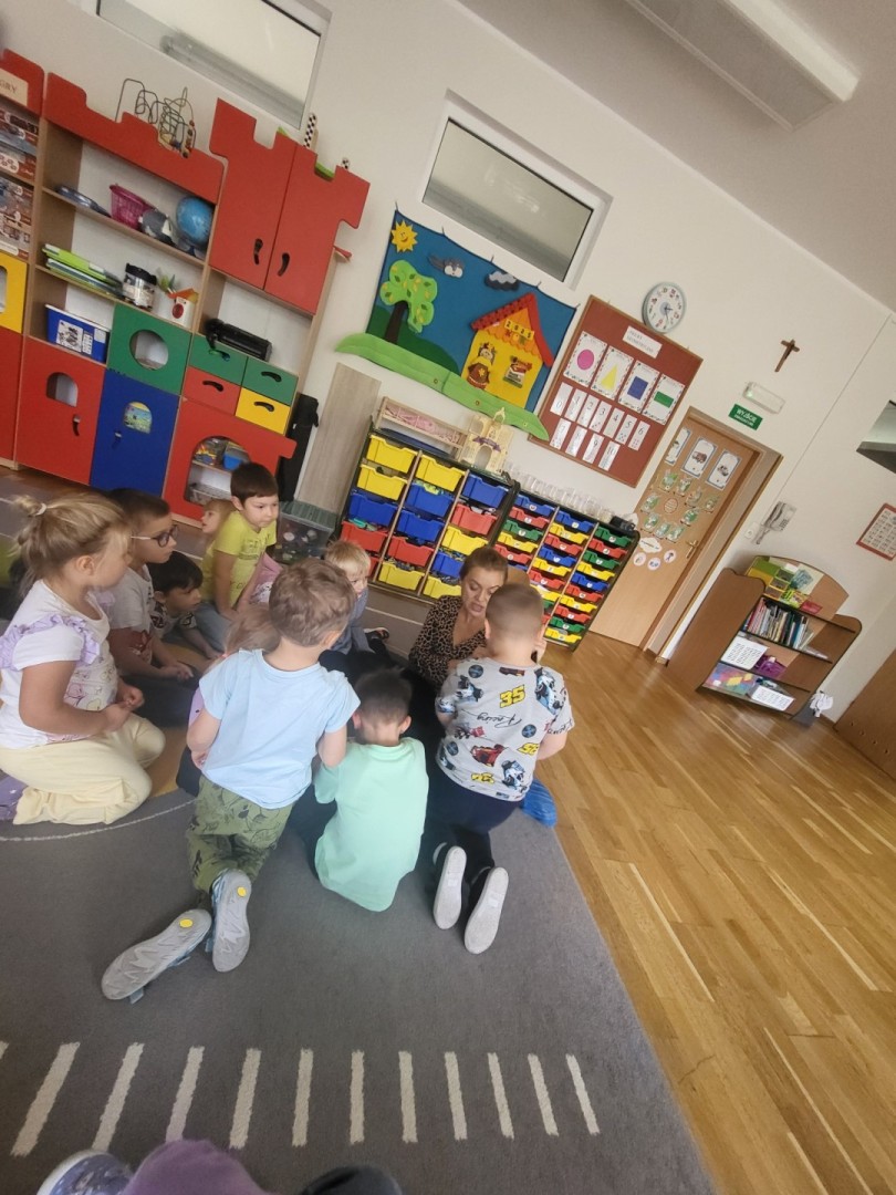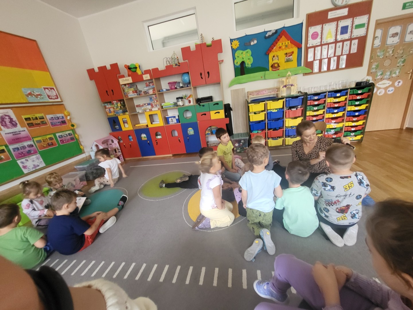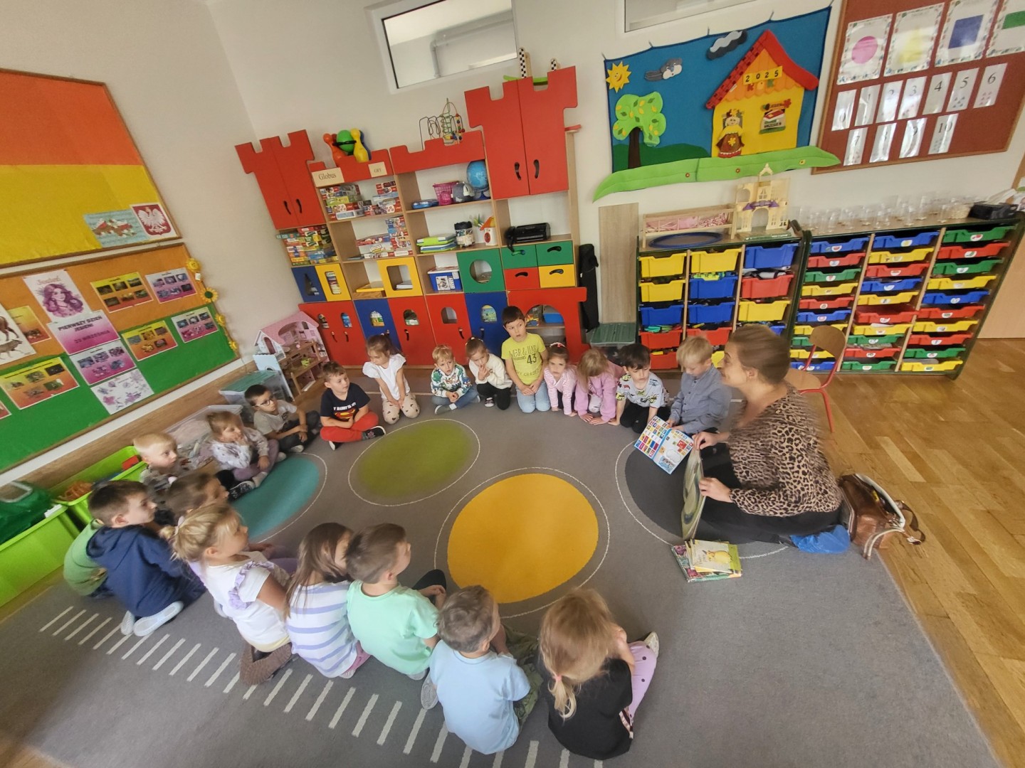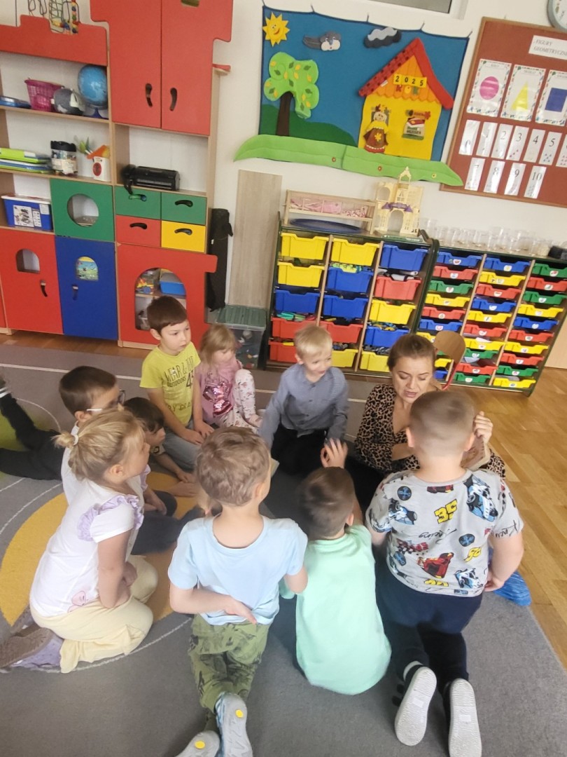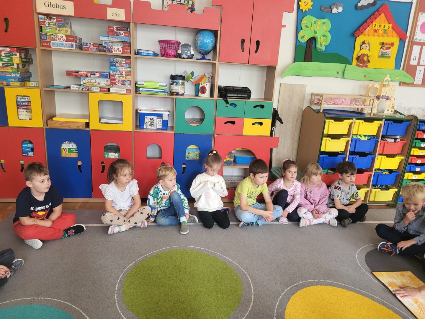 Dnia 01.10.2025r naszą grupę odwiedziła mama Leonarda, która przeczytała dzieciom opowiadania z książeczki “Smoki” oraz “Dobry Pies”, a także pokazała piękne ilustracje w ciekawej  książce  “Magiczne Istoty”. Dzieci z zainteresowaniem wyłuchały historii o bohaterach opowiadań. Dużo emocji wzbudziły i bardzo zaciekawiły dzieci Istoty przedsztawione w książce “Magiczne Istoty”, a był tam m.in.:Centaur, Minotaur, Jednorożec, Feniks czy Syrena.