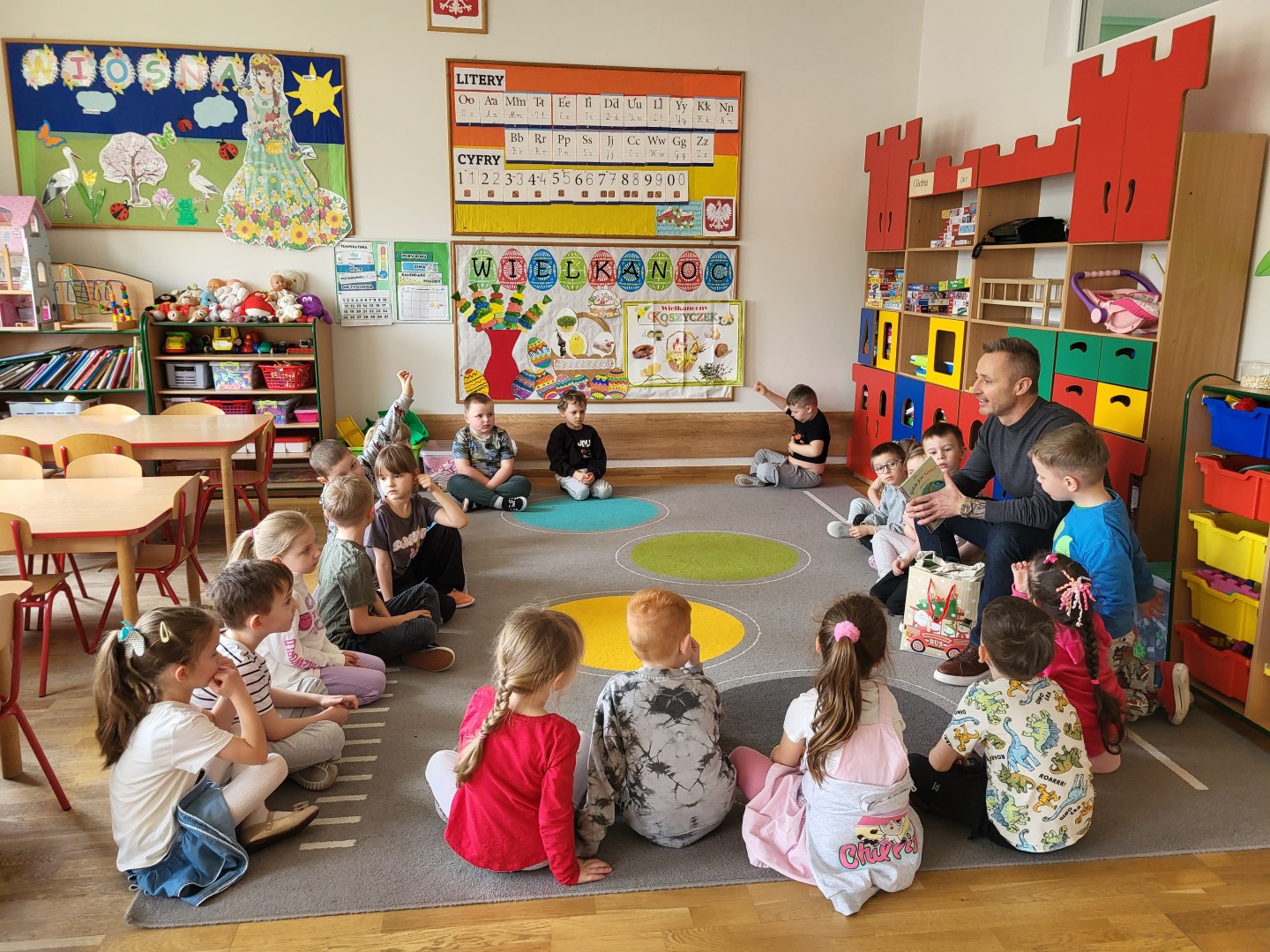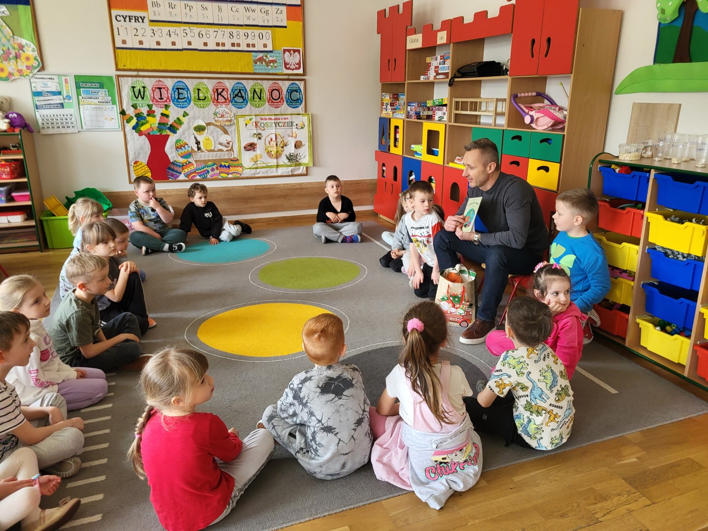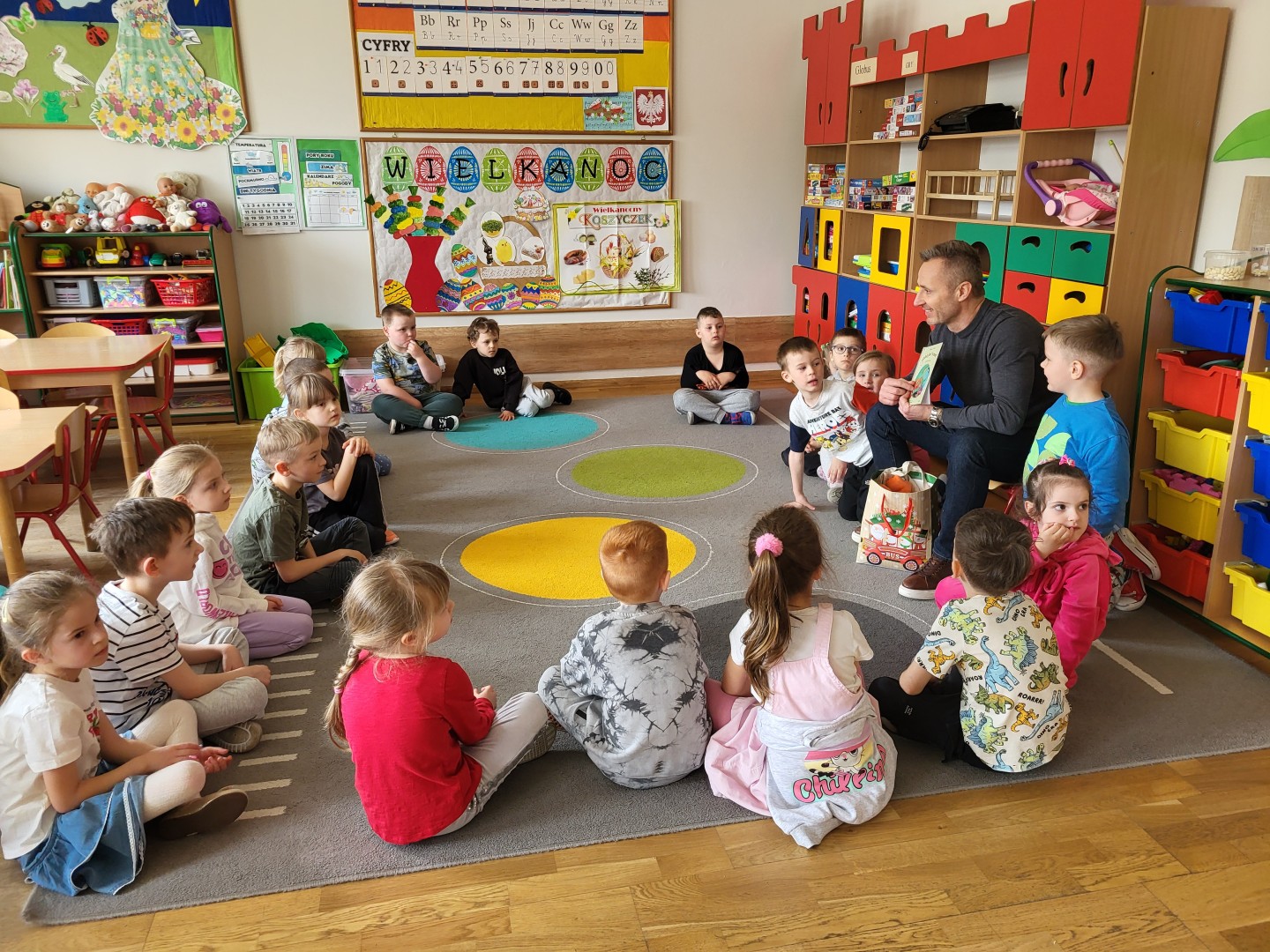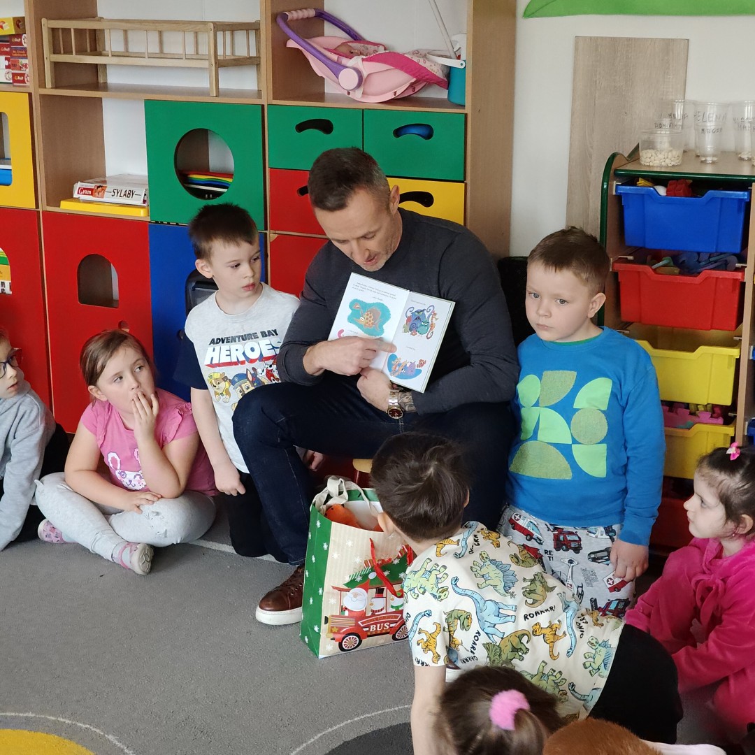 Dnia 31 marca w grupie przedszkolnej “Zajączki” odbyło się spotkanie z tatą Maksa, który odwiedził przedszkole w ramach akcji czytania bajek. Celem wizyty było rozwijanie zainteresowań czytelniczych dzieci, kształtowanie umiejętności słuchania ze zrozumieniem oraz budowanie pozytywnych relacji między przedszkolem a rodziną.