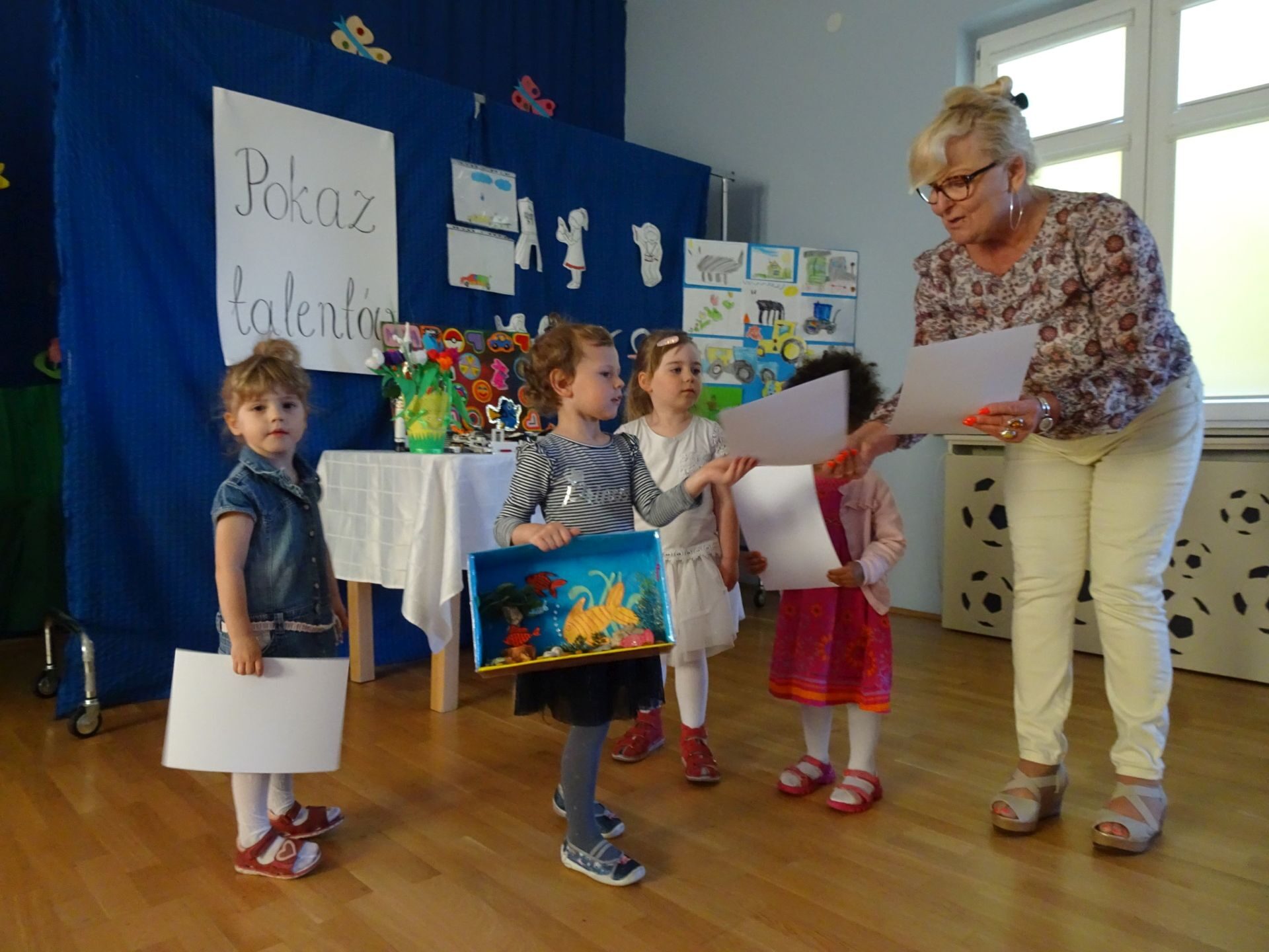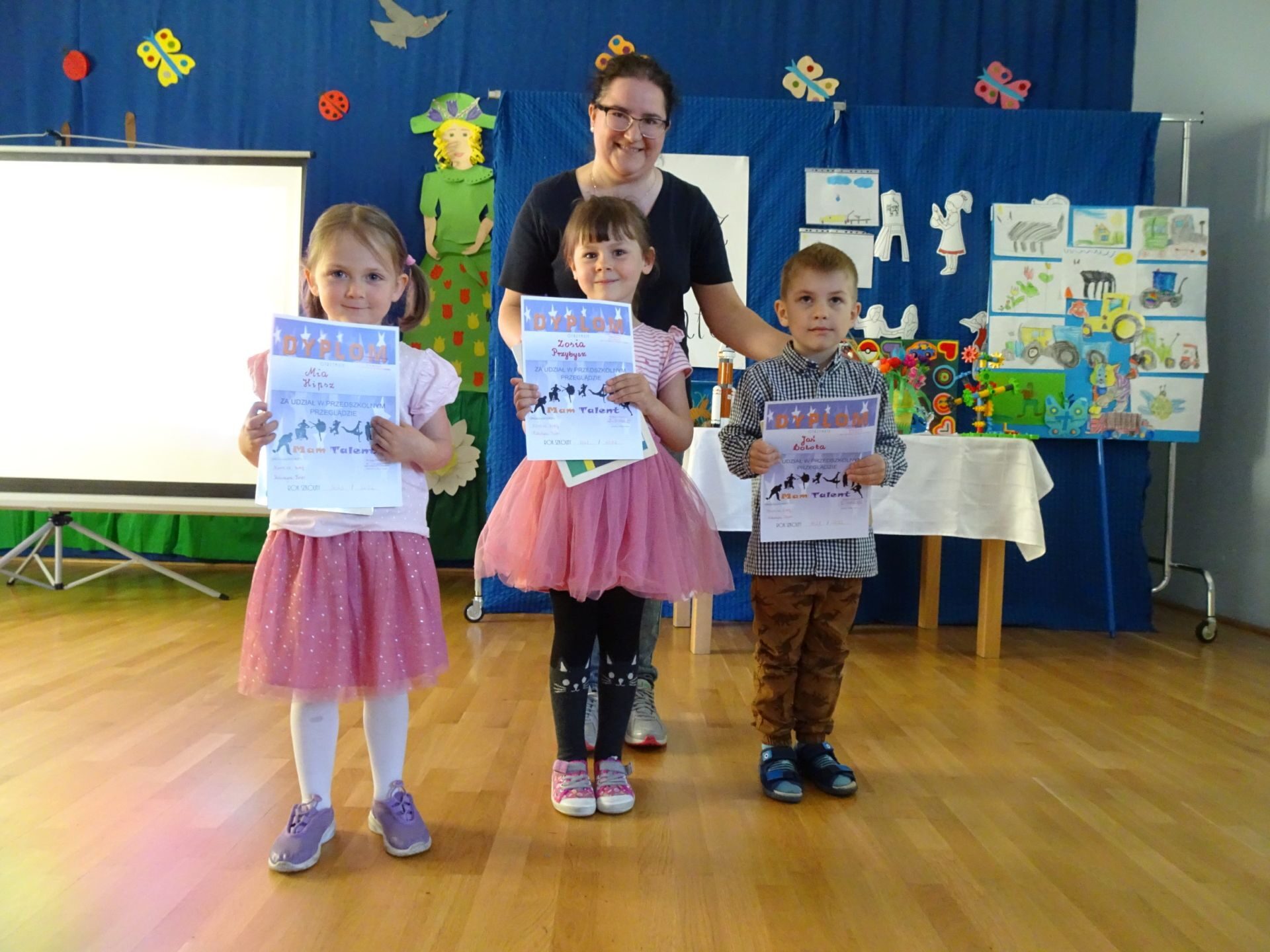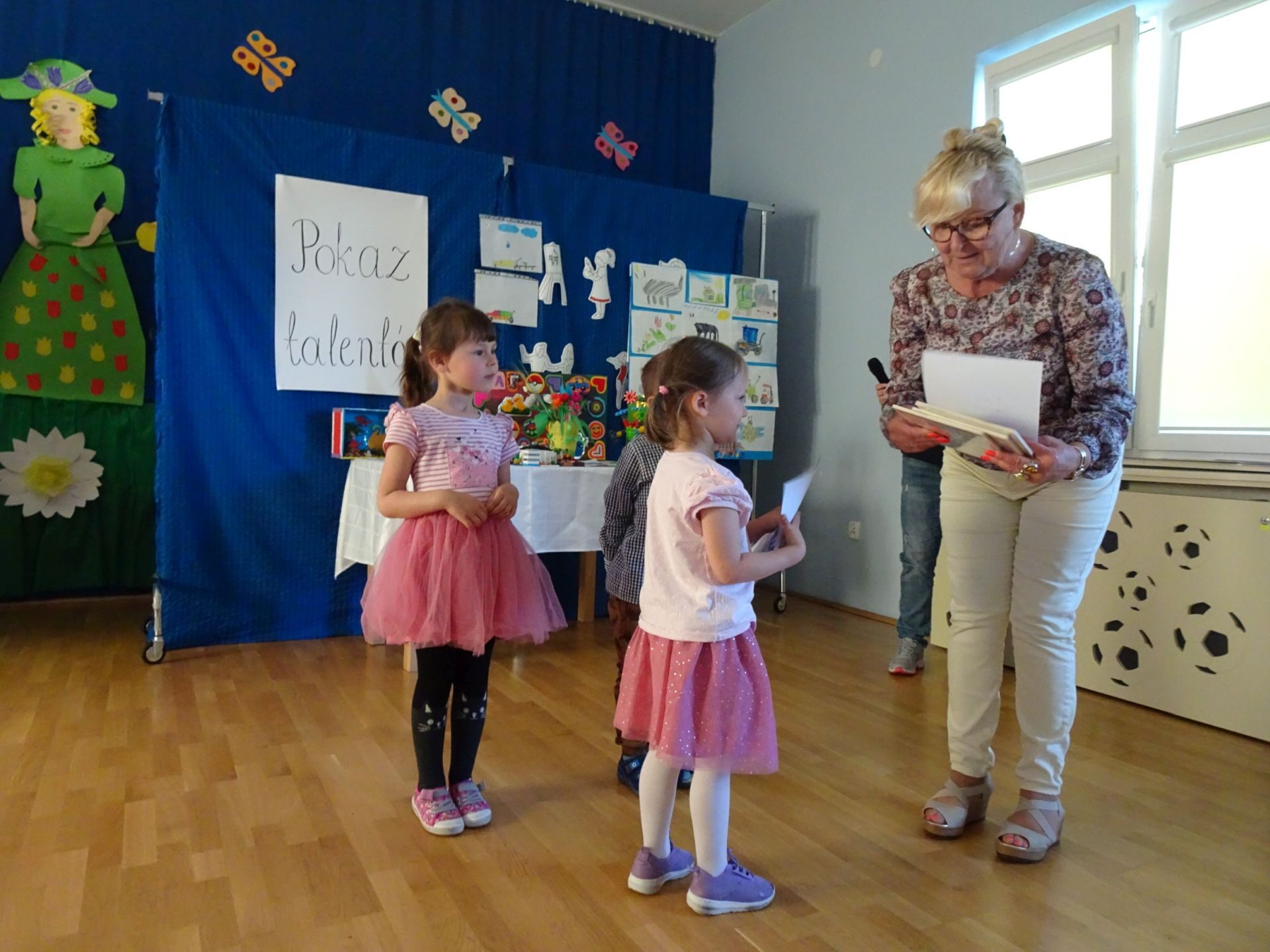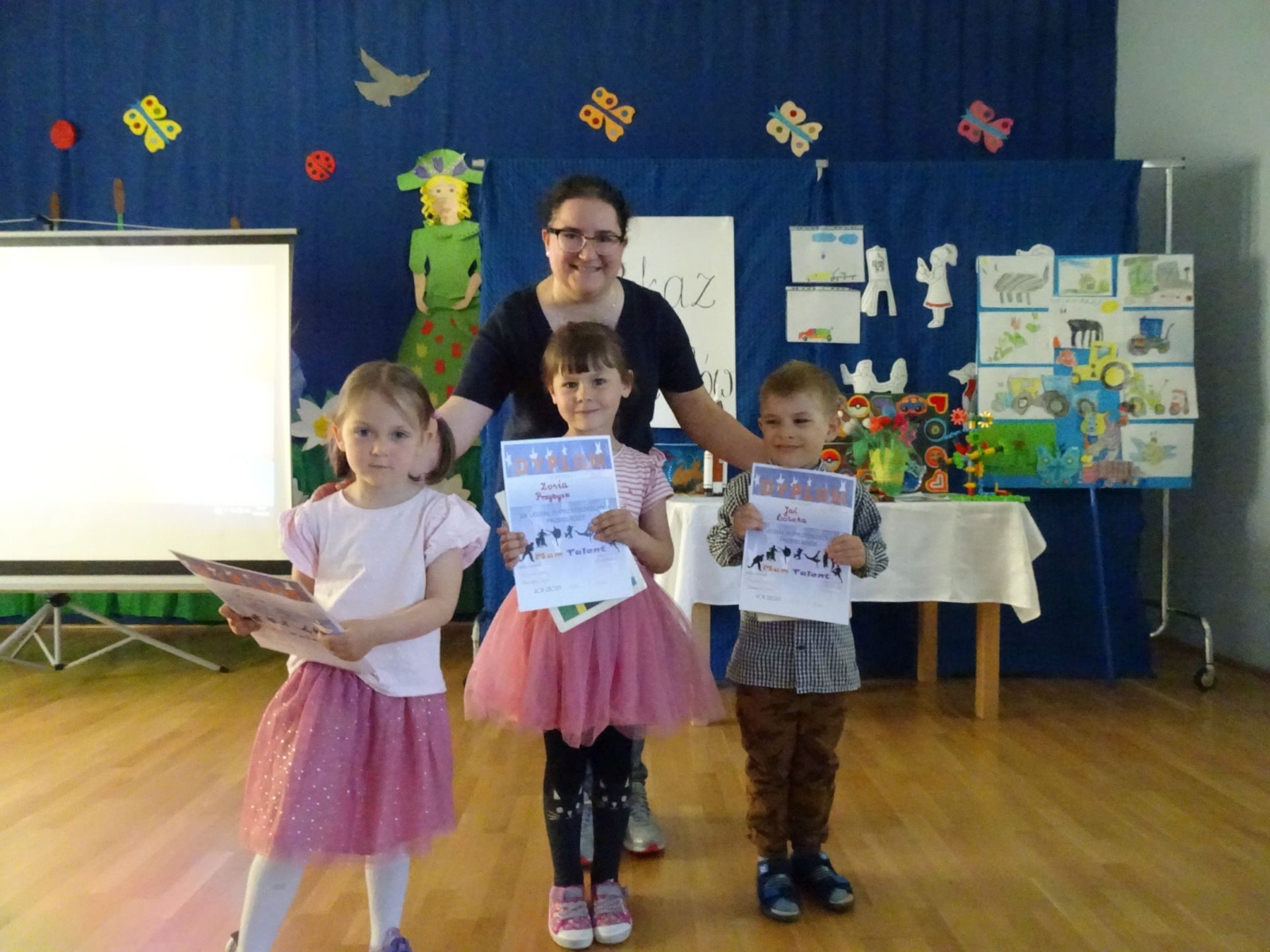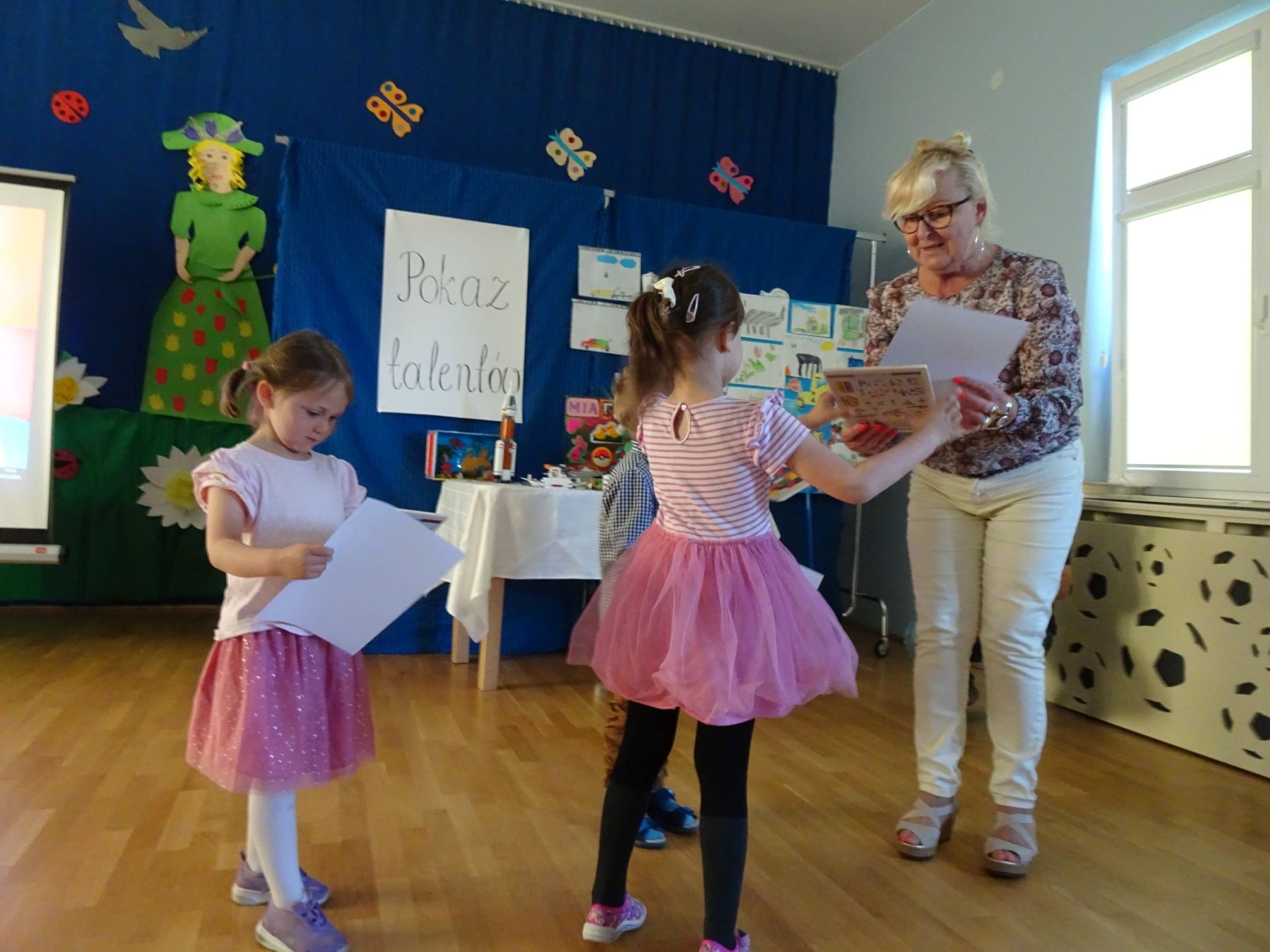 W dniu 16 maja 2022 r w naszym przedszkolu odbył się pokaz talentów. Rodzicie przygotowali dzieci do występu. Uczestnicy pokazu otrzymały dyplomy oraz nagrody.
