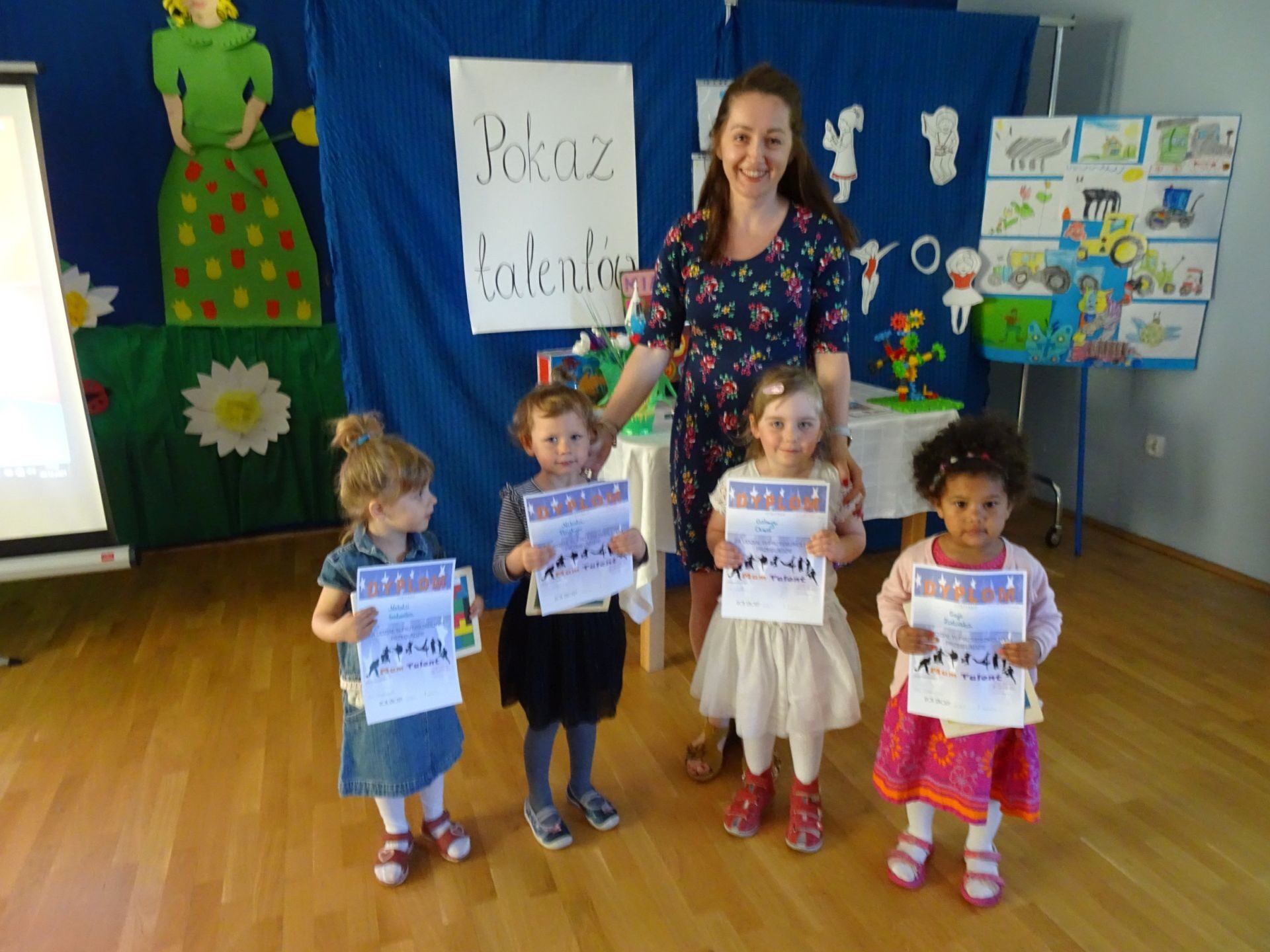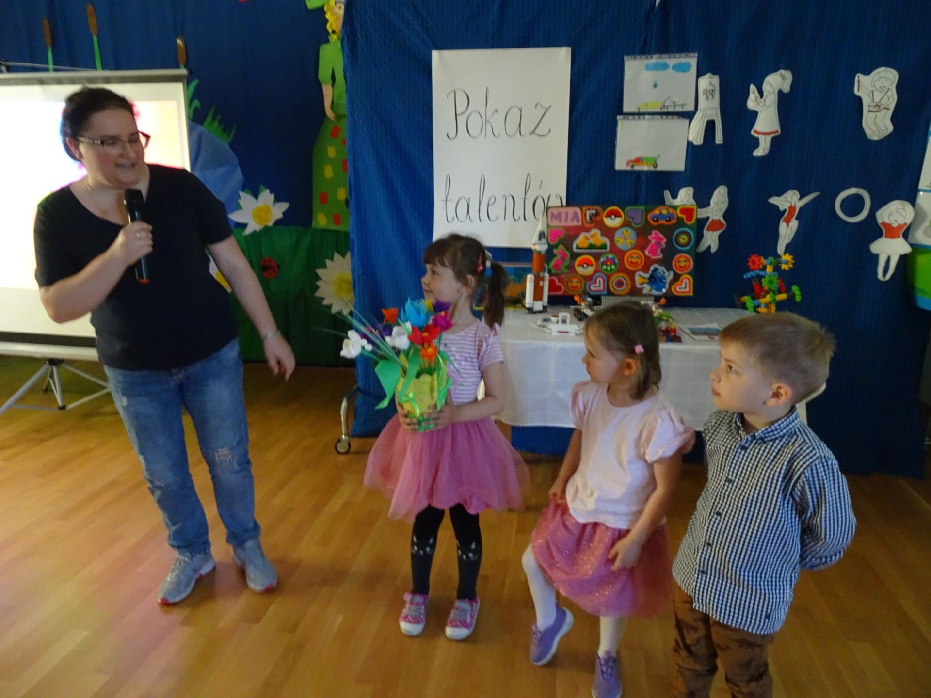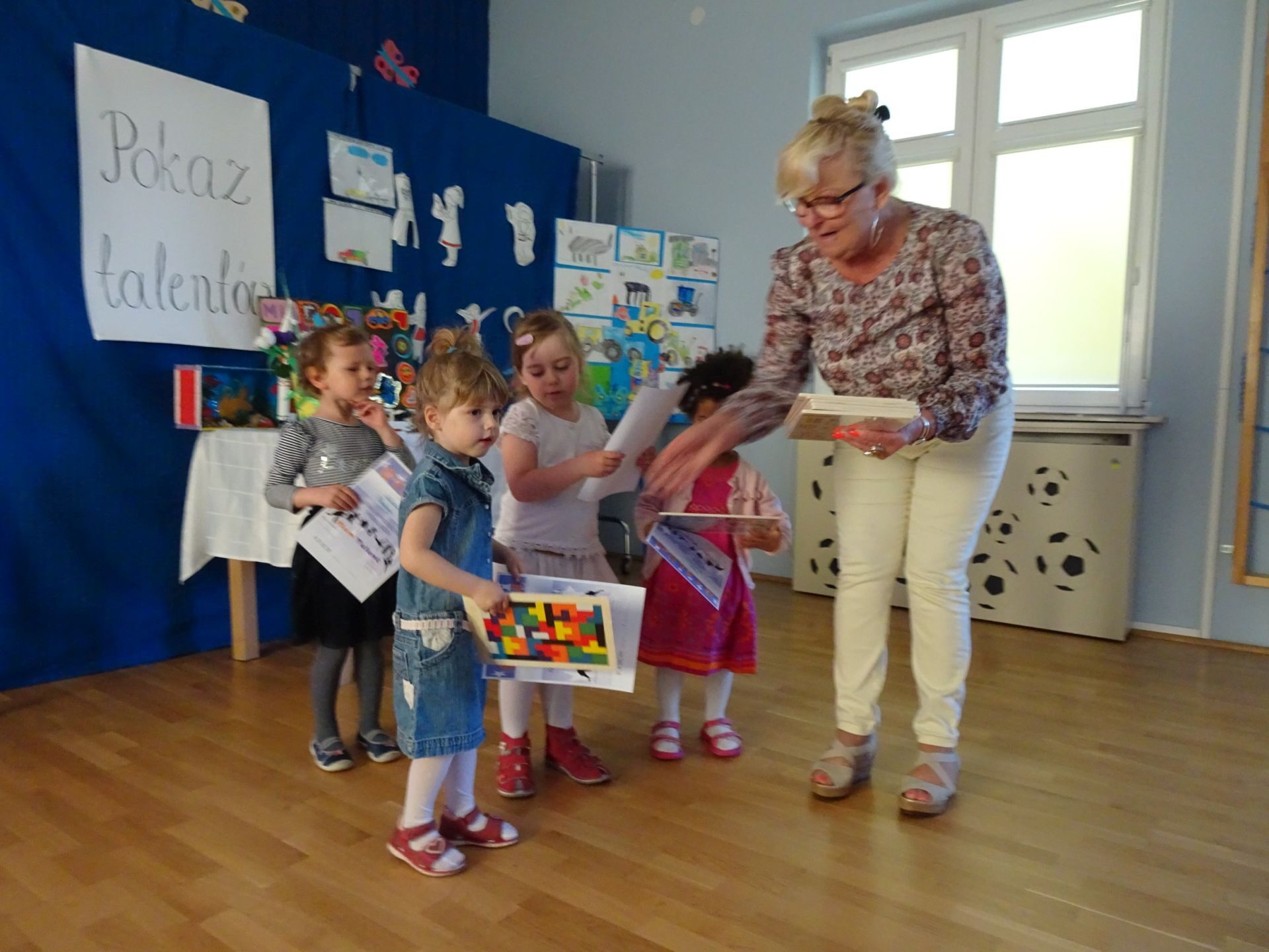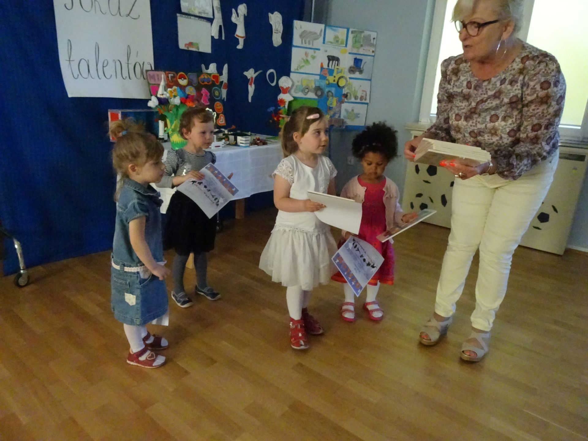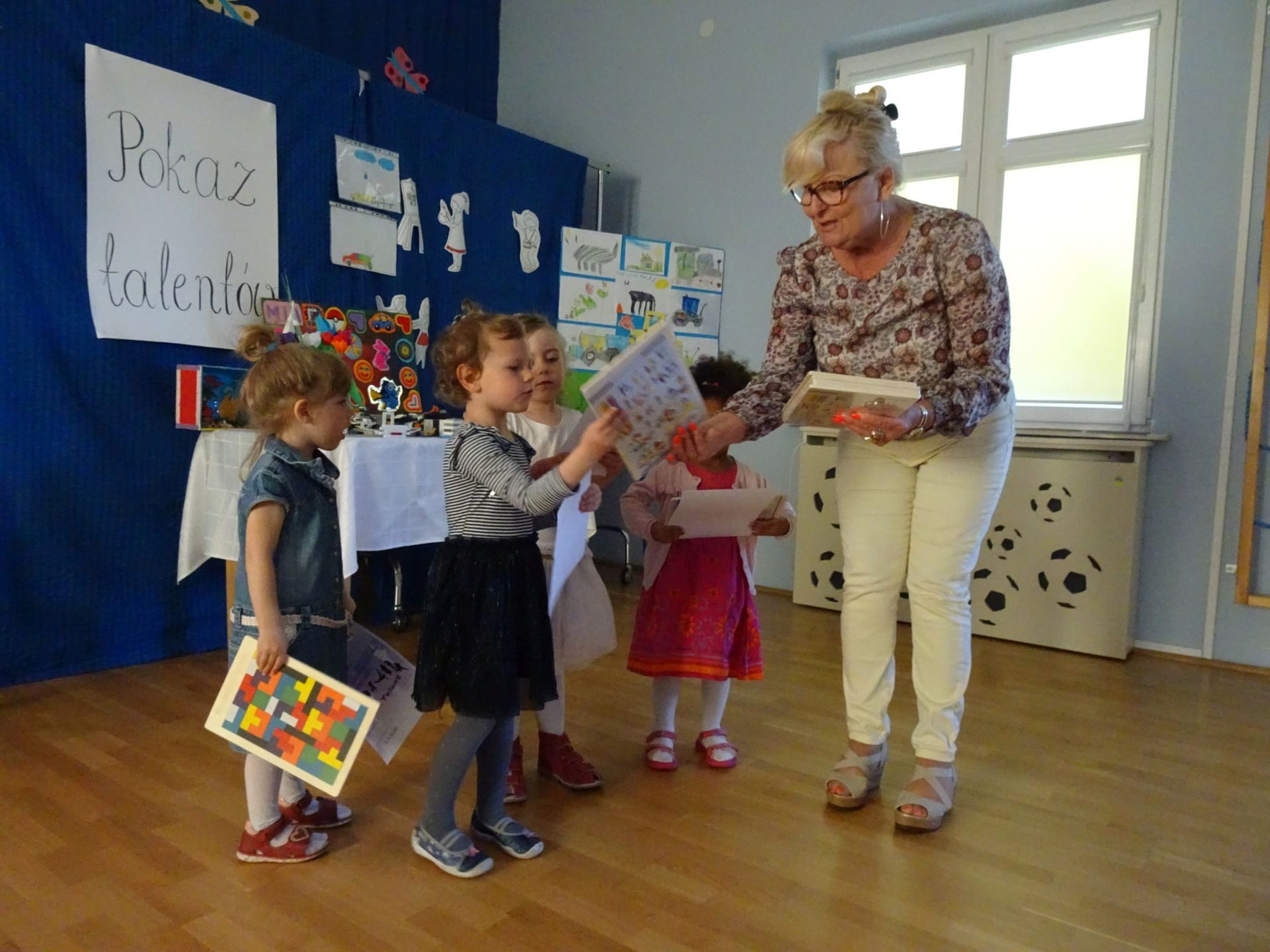 W dniu 16 maja 2022 r w naszym przedszkolu odbył się pokaz talentów. Rodzicie przygotowali dzieci do występu. Uczestnicy pokazu otrzymały dyplomy oraz nagrody.