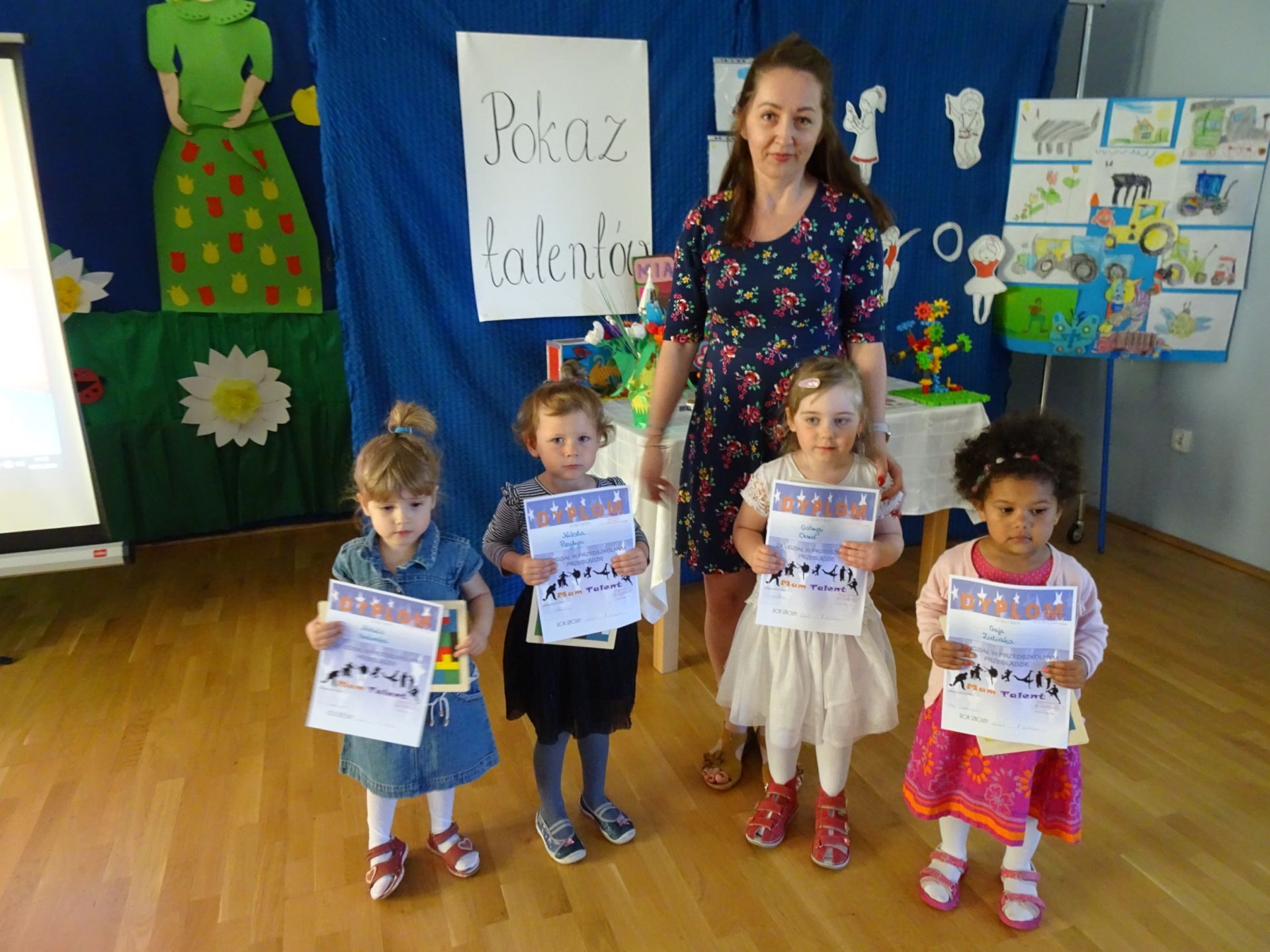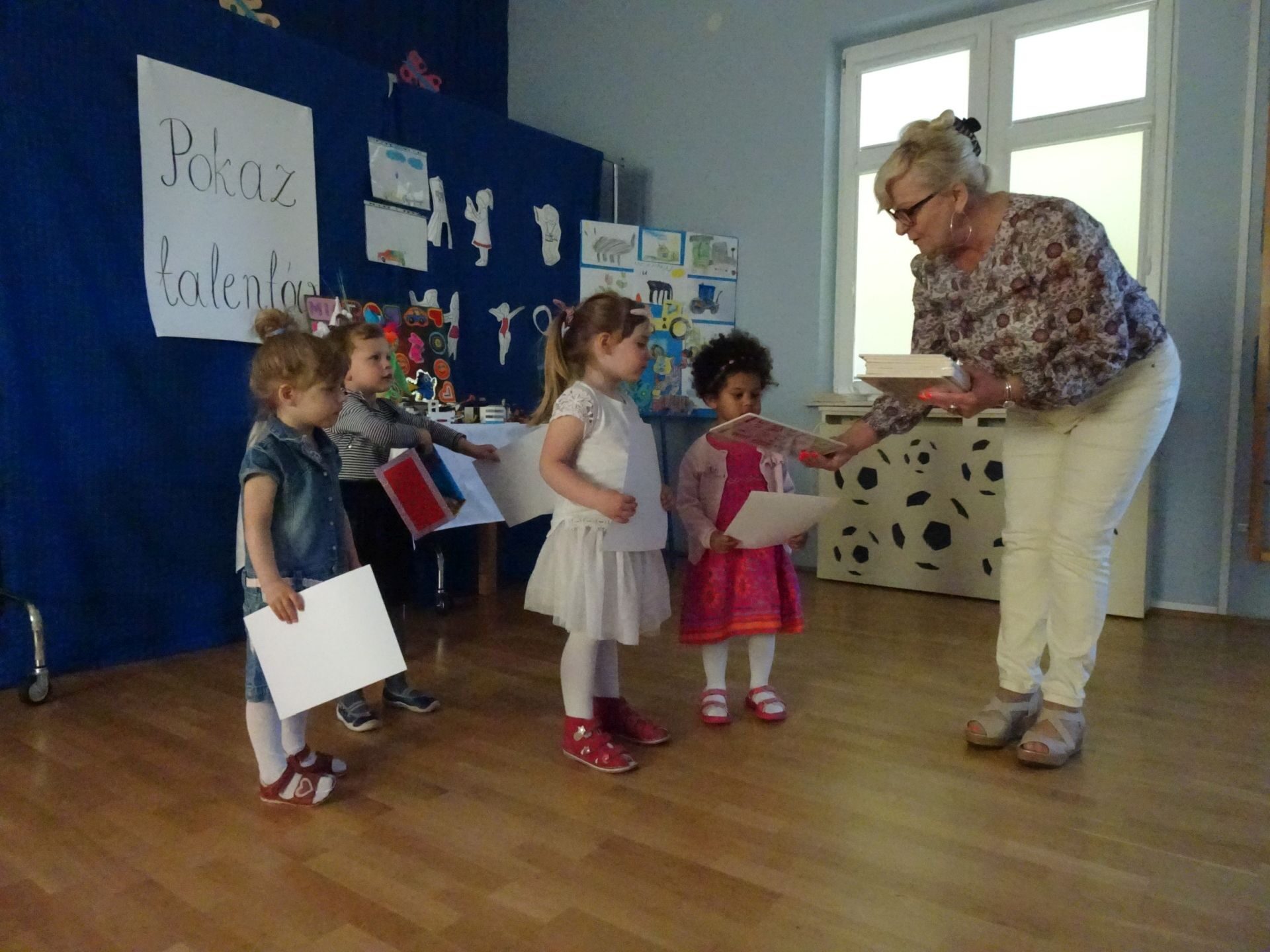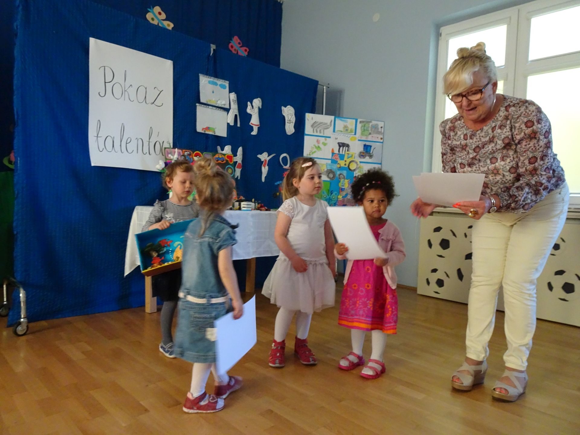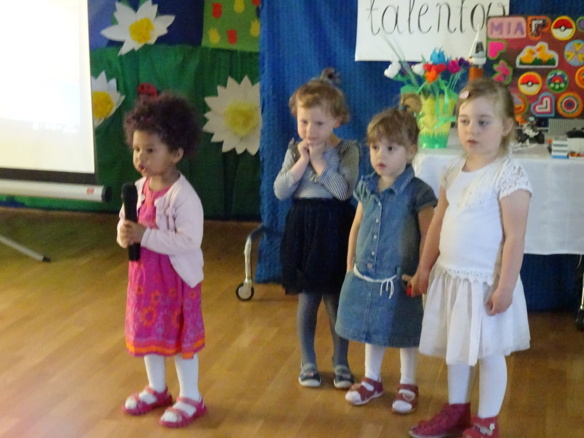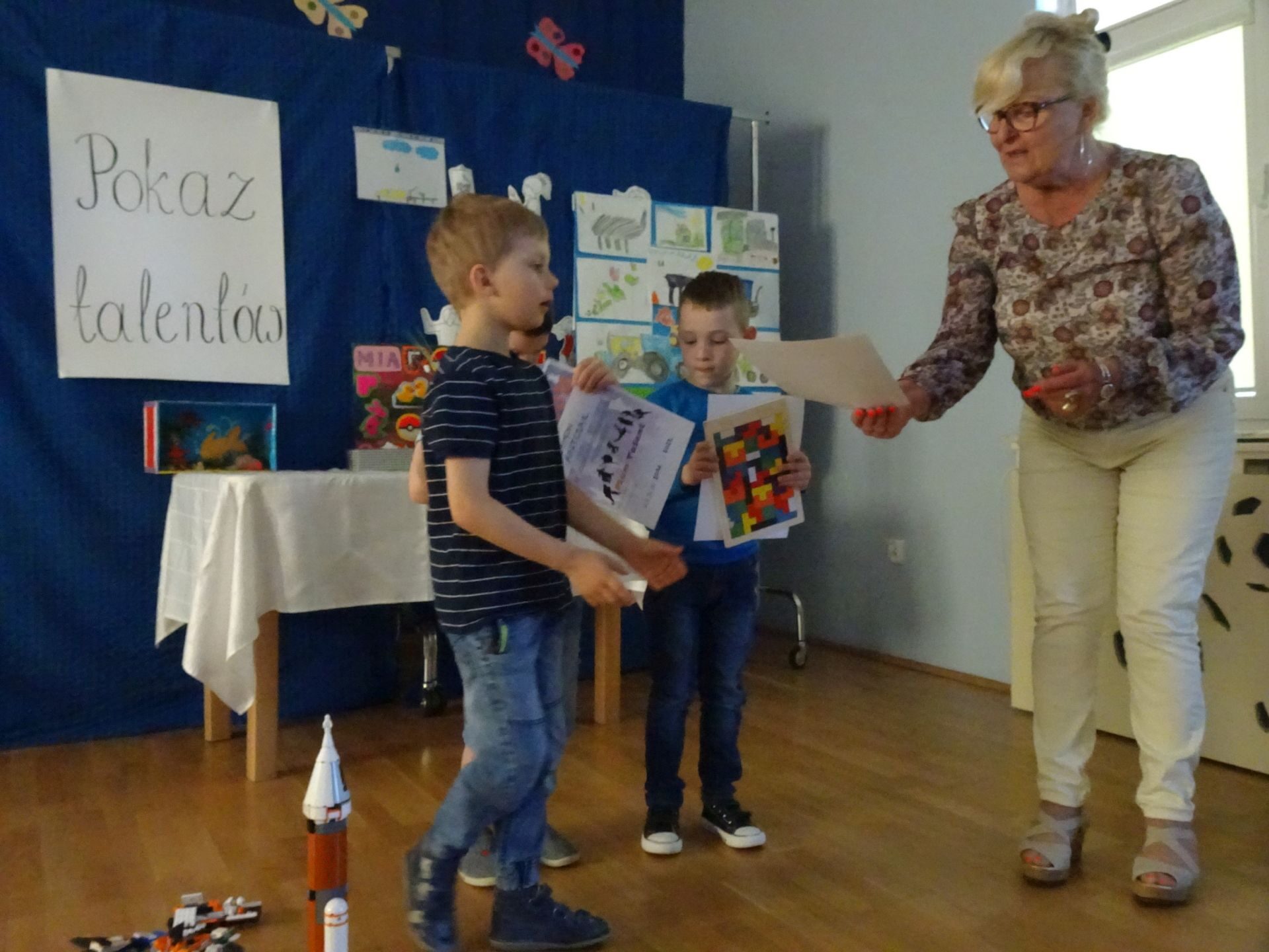 W dniu 16 maja 2022 r w naszym przedszkolu odbył się pokaz talentów. Rodzicie przygotowali dzieci do występu. Uczestnicy pokazu otrzymały dyplomy oraz nagrody.