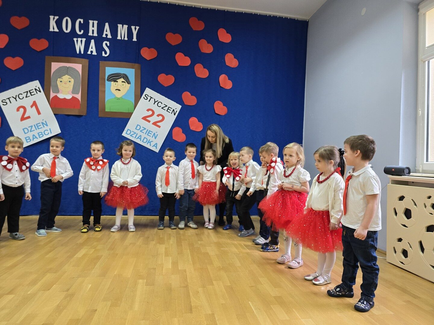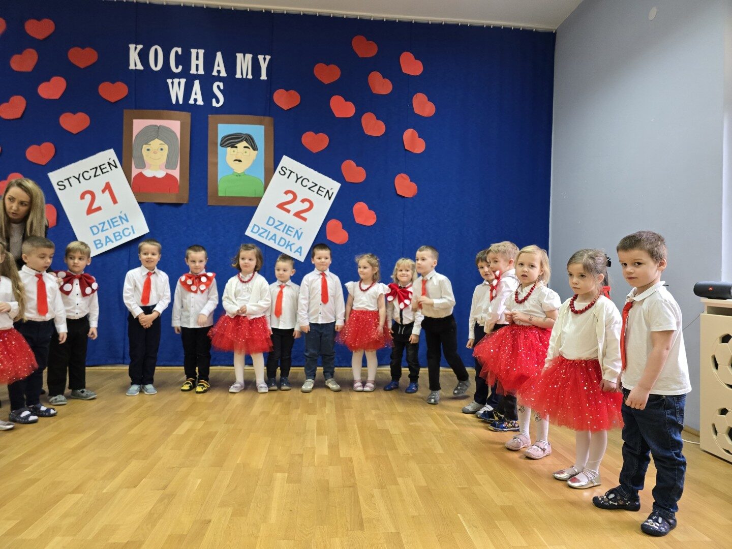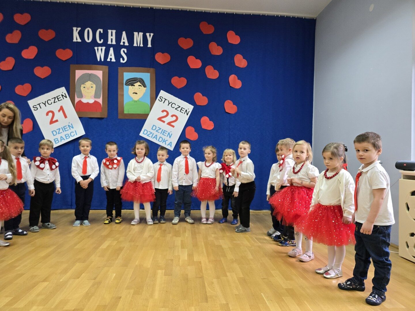 Dnia 10 lutego odbyła się uroczystość z okazji Dnia Babci i Dziadka w grupie “Pszczółki”. Babcia i Dziadek to słowa, które każdemu dziecku kojarzą się z ciepłem, miłością i wszystkim, co dobre. Dlatego dzieci gościły swoje Babcie oraz Dziadków na uroczystości z tej okazji, podczas której zaprezentowały wiersze, piosenki oraz układy choreograficzne. Ten dzień był wyjątkowy, pełen uśmiechu, radości i niezapomnianych wrażeń. Szczęśliwe i rozpromienione twarze babć i dziadków dały wyraz tego, jak ważne są takie spotkania i chwile spędzone wspólnie z wnukami. 🙂