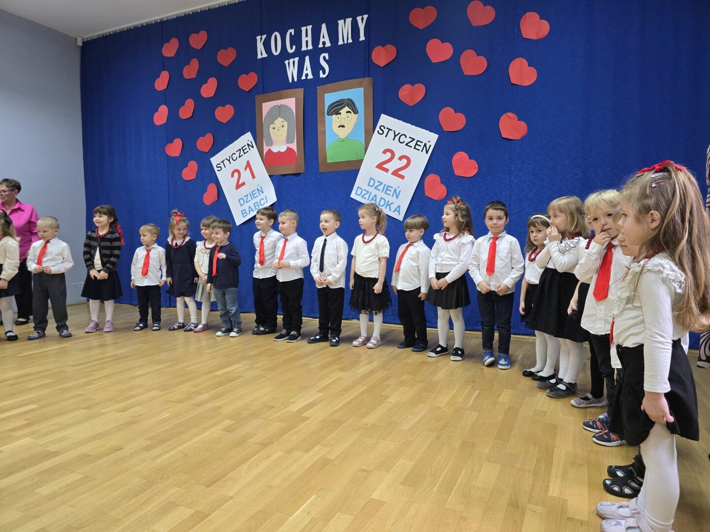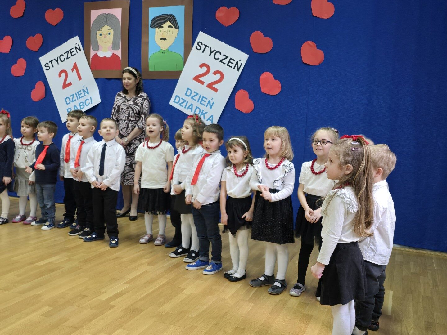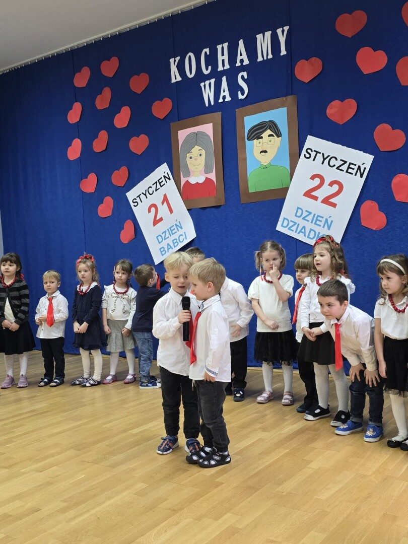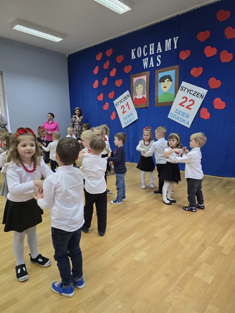 Dnia 12 lutego odbyła się uroczystość z okazji Dnia Babci i Dziadka w grupie “Pszczółki”. Babcia i Dziadek to słowa, które każdemu dziecku kojarzą się z ciepłem, miłością i wszystkim, co dobre. Dlatego dzieci gościły swoje Babcie oraz Dziadków na uroczystości z tej okazji, podczas której zaprezentowały wiersze, piosenki oraz układy choreograficzne. Ten dzień był wyjątkowy, pełen uśmiechu, radości i niezapomnianych wrażeń. Szczęśliwe i rozpromienione twarze babć i dziadków dały wyraz tego, jak ważne są takie spotkania i chwile spędzone wspólnie z wnukami. 🙂