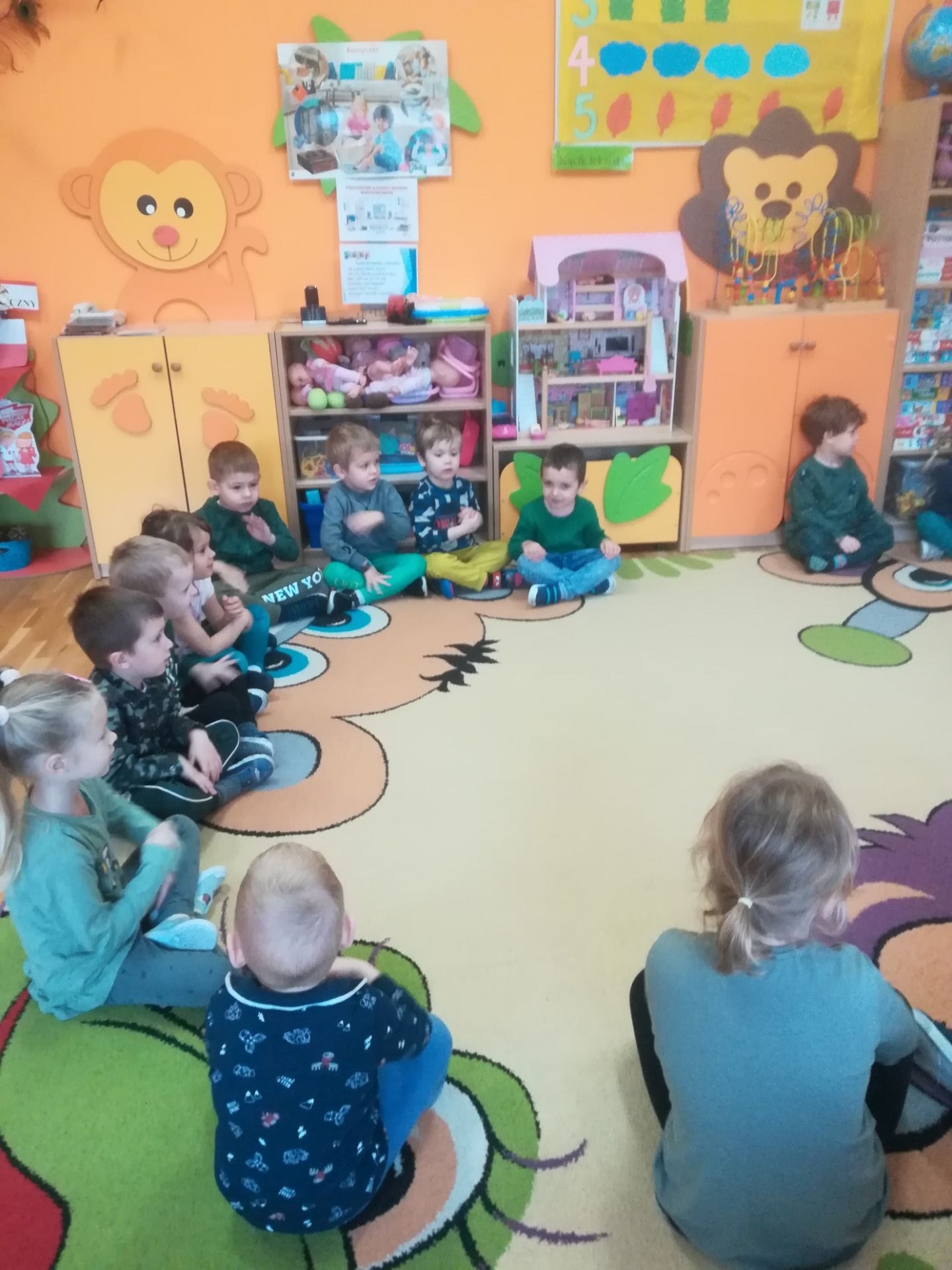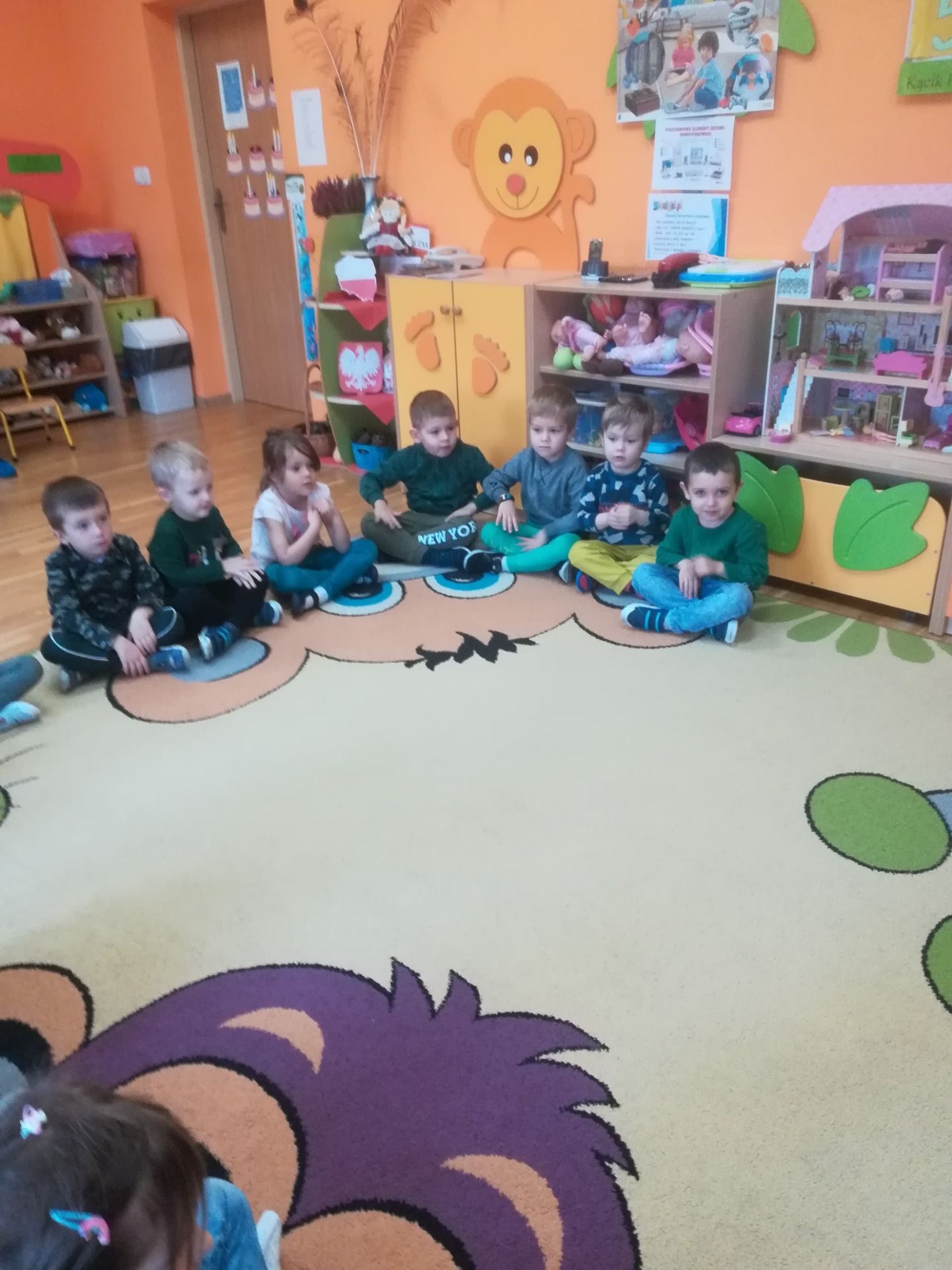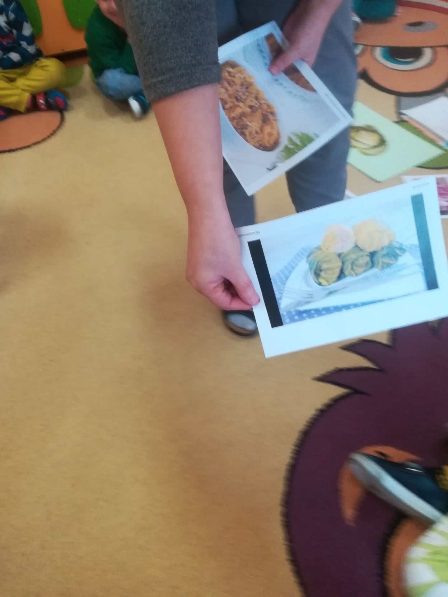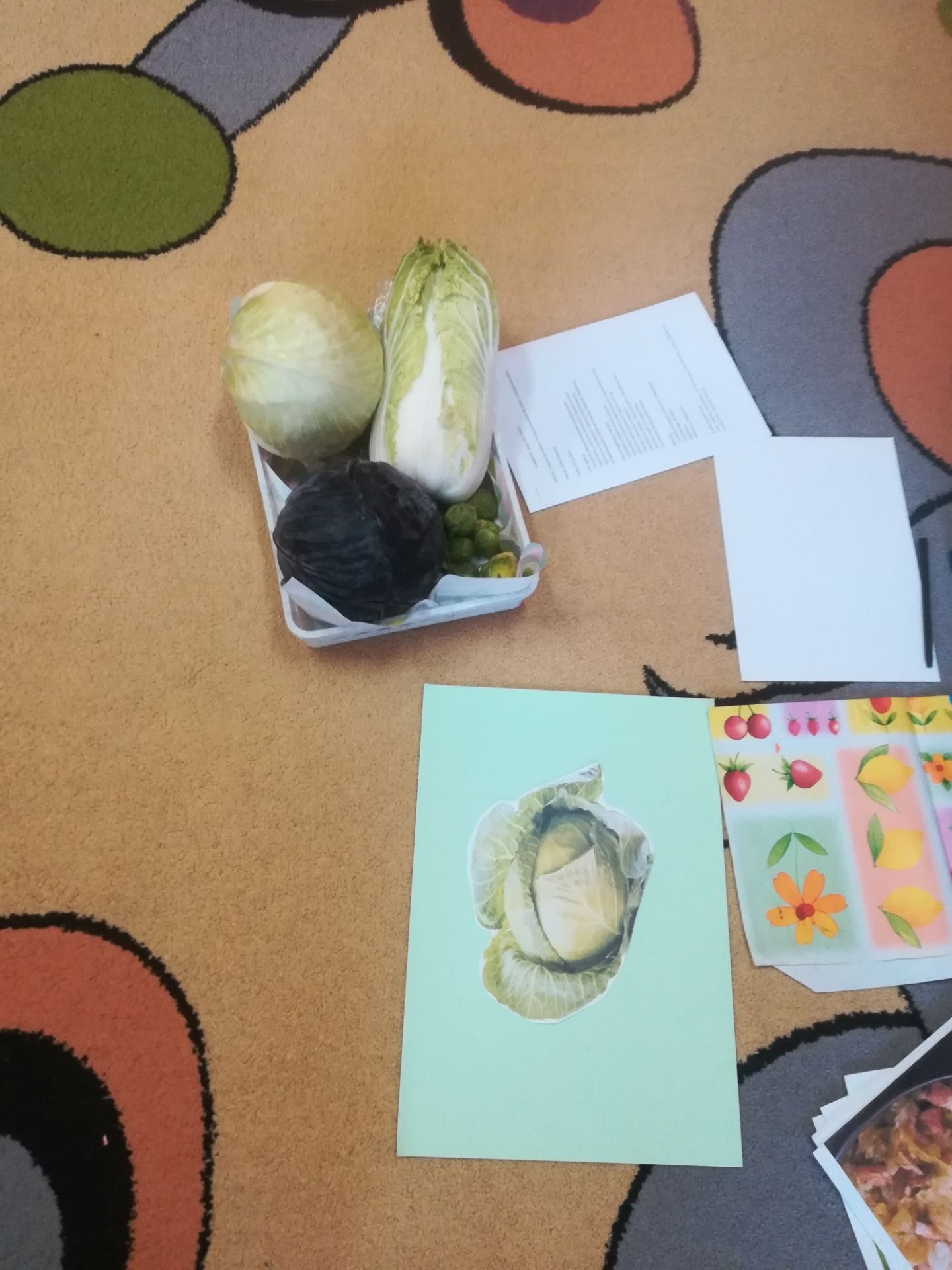 24.11. 2021 w naszym przedszkolu obchodziliśmy „Dzień Kapusty”. W tym dniu wszystkie dzieci ubrały się na zielono. Przedszkolaki z niecierpliwością wyczekiwały tego, co się wydarzy. Nadszedł wreszcie czas na poznanie niespodzianki – kapusty. Dzieci miały okazję zobaczyć i dotknąć kapustę białą, czerwoną, włoską, pekińską a także brukselkę. Następnie przedszkolaki rozpoznawały dania jakie można przygotować z kapusty. Bardzo pomocne okazały się przygotowane ilustracje potraw. Przedszkolaki z wielkim zainteresowaniem obserwowały eksperyment przewodzenia kolorowej wody przez kapustę pekińską „Jak kapusta pije wodę”.  Dzieci poznały wartości odżywcze kapusty, utrwaliły  wiadomości o cechach i walorach zdrowotnych kapusty surowej i kiszonej,  wzięły również udział w zabawach ruchowych przy piosence  „Kapuściana piosenka”, a także bawiły się w „Kiszenie kapusty”, naśladowały czynności, o których  była mowa w rymowance. Kulminacyjnym punktem tego dnia było wykonanie kulinarnego zadania z zachowaniem zasad bezpieczeństwa i higieny podczas przygotowywania posiłków. Jedne grupy przedszkolaków przygotowały samodzielnie sałatkę z kapusty i dodatków, którą ze smakiem zjadły. W innych grupach odbyło się przygotowanie kapusty do kiszenia w słoikach. Dzieci samodzielnie próbowały szatkować kapustę, którą wkładały do słoików, soli, dodawały marchewkę i ubijały. Teraz pozostało czekać na ukiszenie kapusty i obserwację tego co się dzieje w słoikach. Przedszkolaki z niecierpliwością czekają aby z ukiszonej kapusty przygotować surówkę.