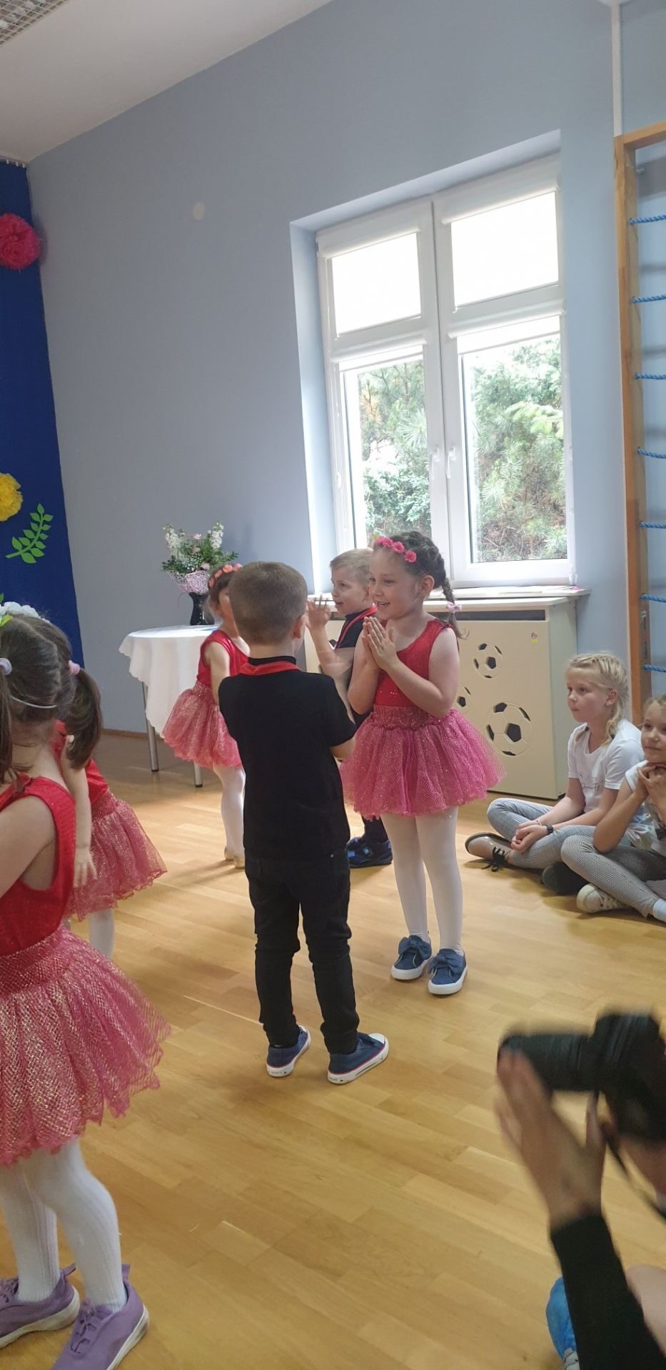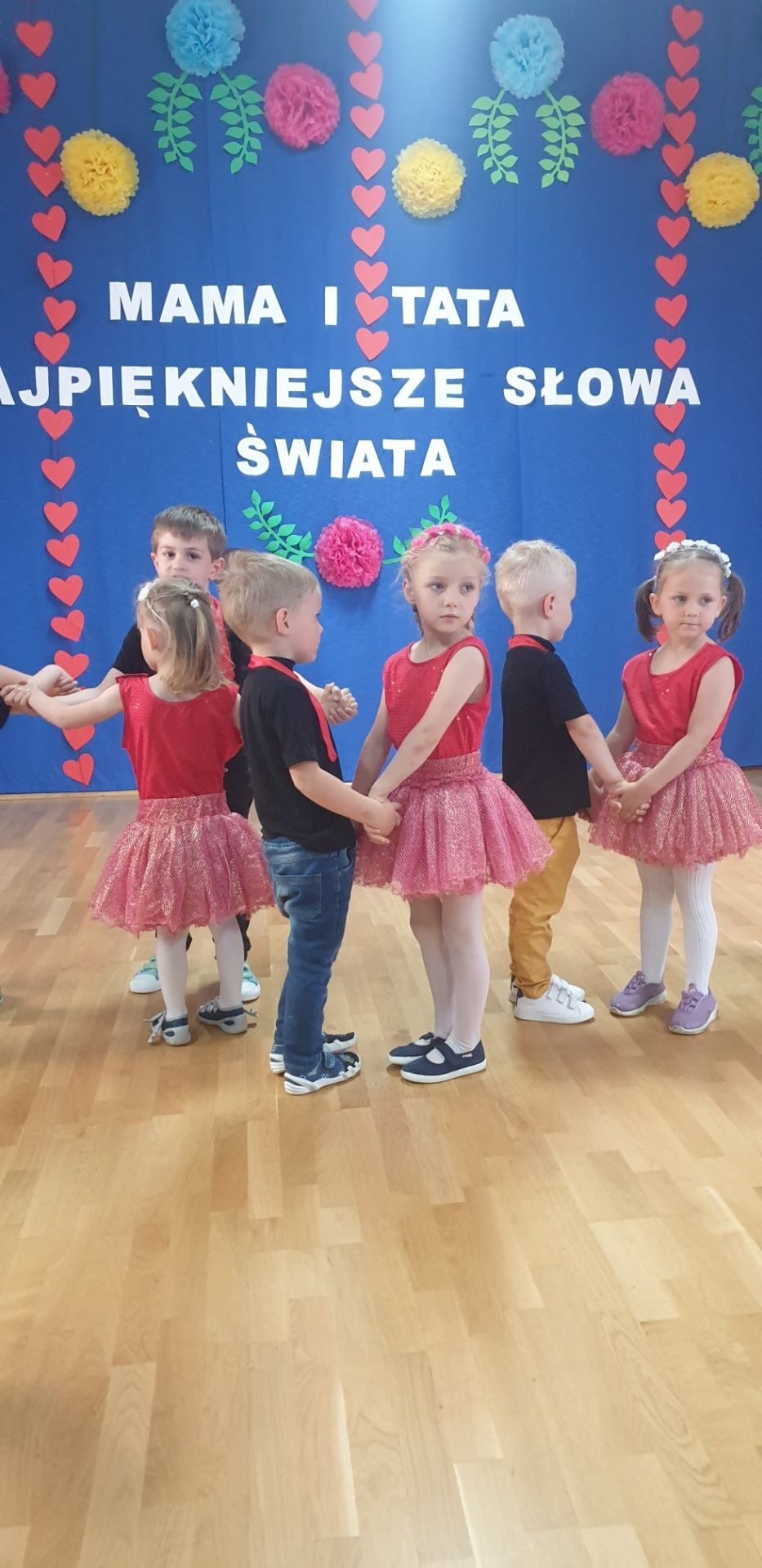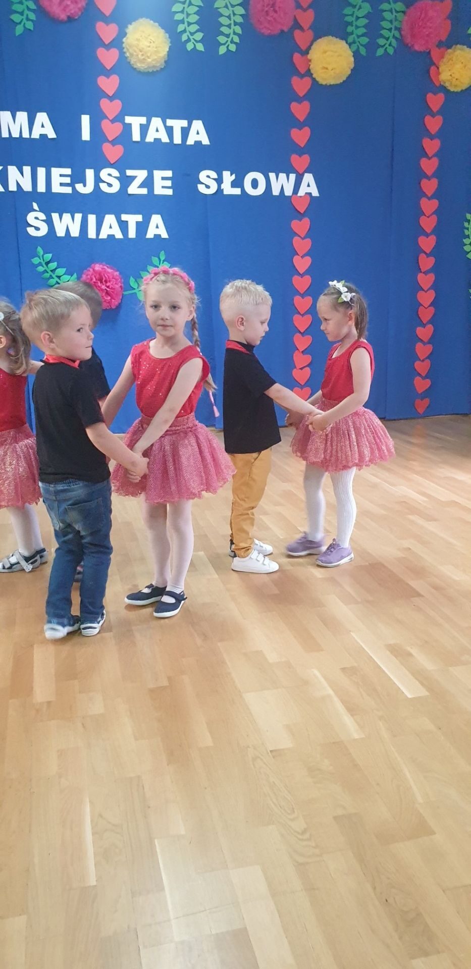 Mama i tata to wielkie słowa, które są synonimem miłości, dobra, ciepła rodzinnego i szczęścia. Mama i tata to pierwsze słowa każdego dziecka. Dla małego dziecka rodzice to najważniejsze osoby w jego życiu, należy więc dbać, troszczyć się i pielęgnować więź między dzieckiem a rodzicem. Dlatego też co roku w naszym przedszkolu nauczycielki pomagają dzieciom wyrazić ich miłość do rodziców organizując Dzień Matki i Ojca. Z tej właśnie okazji 21.06.2022 r. odbyło się uroczyste przedstawienie. Sala przedszkolna stała się sceną, na której dzieci w pięknych strojach zaprezentowały bogaty program artystyczny, wystąpiły również w języku angielskim, a także pięknie zatańczyły. Przedszkolaki otrzymały dyplomy. Po występie dzieci wraz z rodzicami przeszli do swojej sali, gdzie na dzielnych artystów czekał poczęstunek przygotowany przez rodziców. Dzieci wręczyły rodzicom własnoręcznie wykonane upominki.