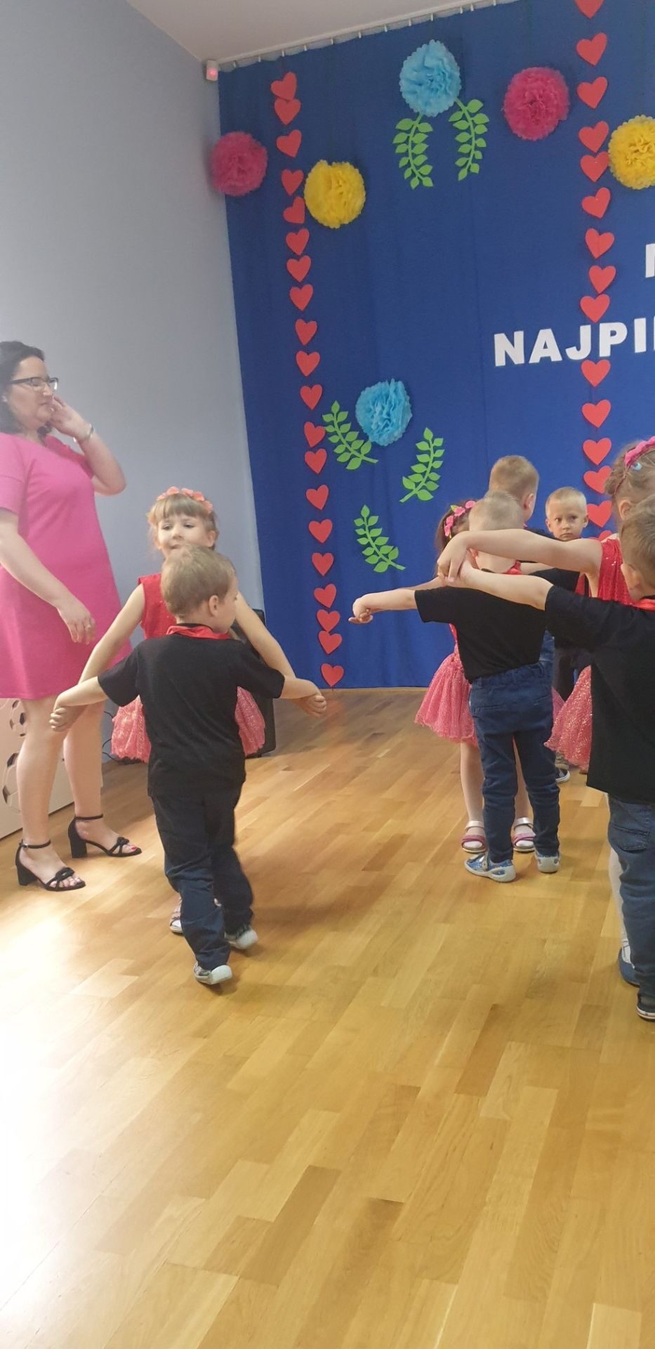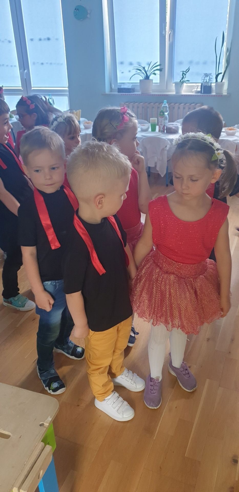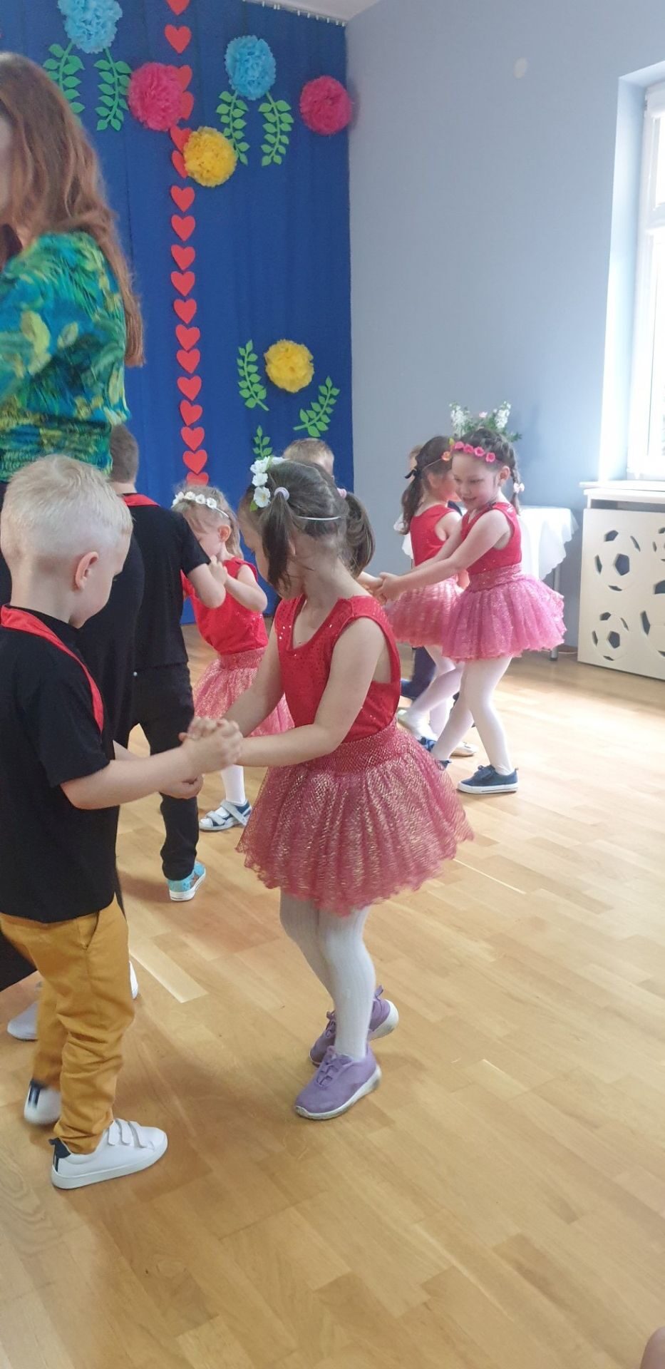 Mama i tata to wielkie słowa, które są synonimem miłości, dobra, ciepła rodzinnego i szczęścia. Mama i tata to pierwsze słowa każdego dziecka. Dla małego dziecka rodzice to najważniejsze osoby w jego życiu, należy więc dbać, troszczyć się i pielęgnować więź między dzieckiem a rodzicem. Dlatego też co roku w naszym przedszkolu nauczycielki pomagają dzieciom wyrazić ich miłość do rodziców organizując Dzień Matki i Ojca. Z tej właśnie okazji 21.06.2022 r. odbyło się uroczyste przedstawienie. Sala przedszkolna stała się sceną, na której dzieci w pięknych strojach zaprezentowały bogaty program artystyczny, wystąpiły również w języku angielskim, a także pięknie zatańczyły. Przedszkolaki otrzymały dyplomy. Po występie dzieci wraz z rodzicami przeszli do swojej sali, gdzie na dzielnych artystów czekał poczęstunek przygotowany przez rodziców. Dzieci wręczyły rodzicom własnoręcznie wykonane upominki.