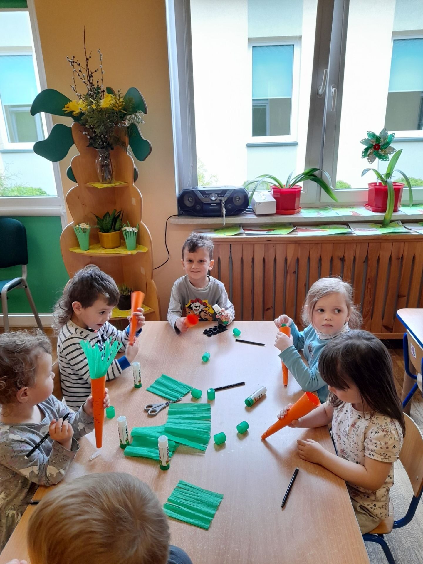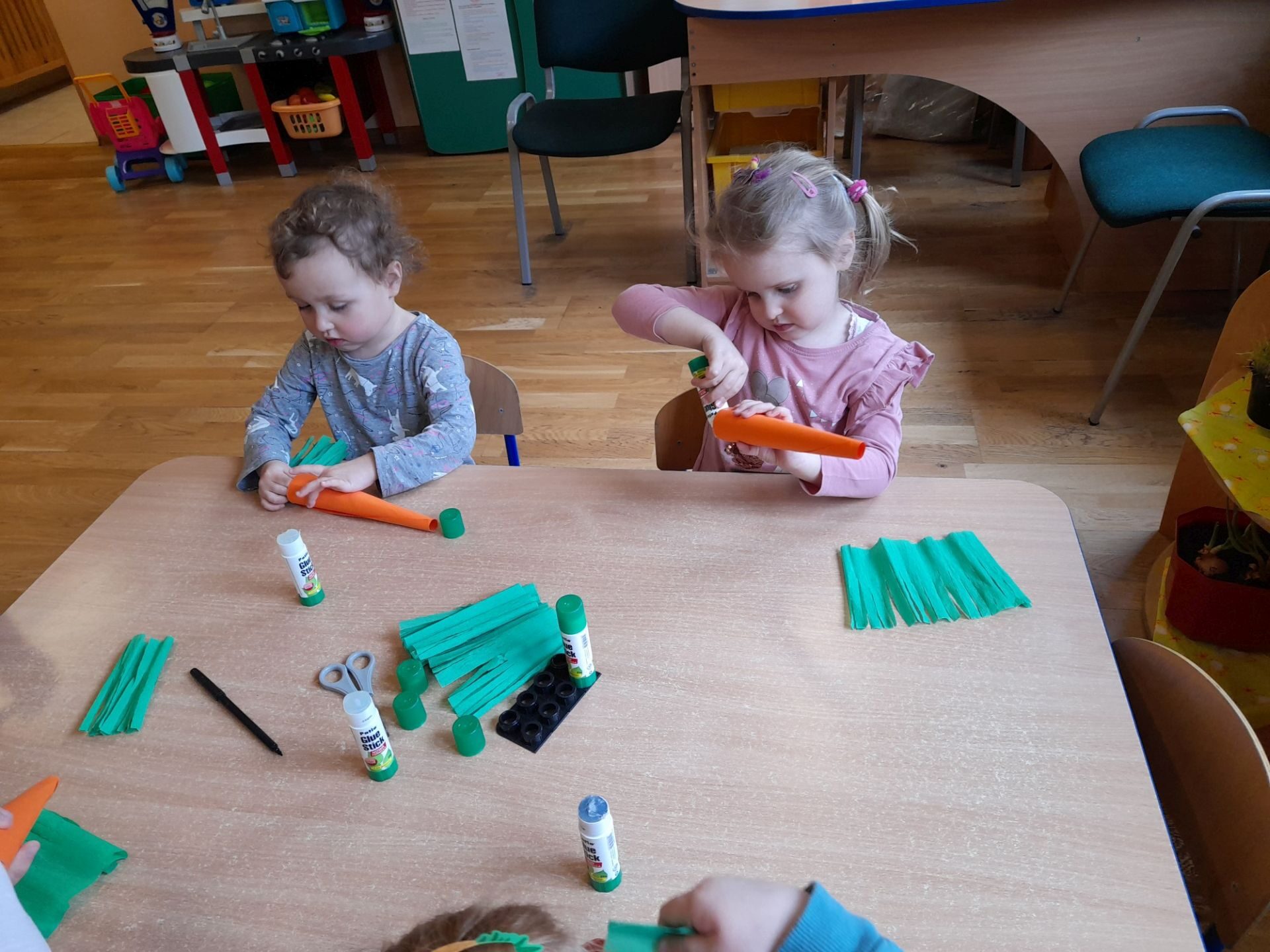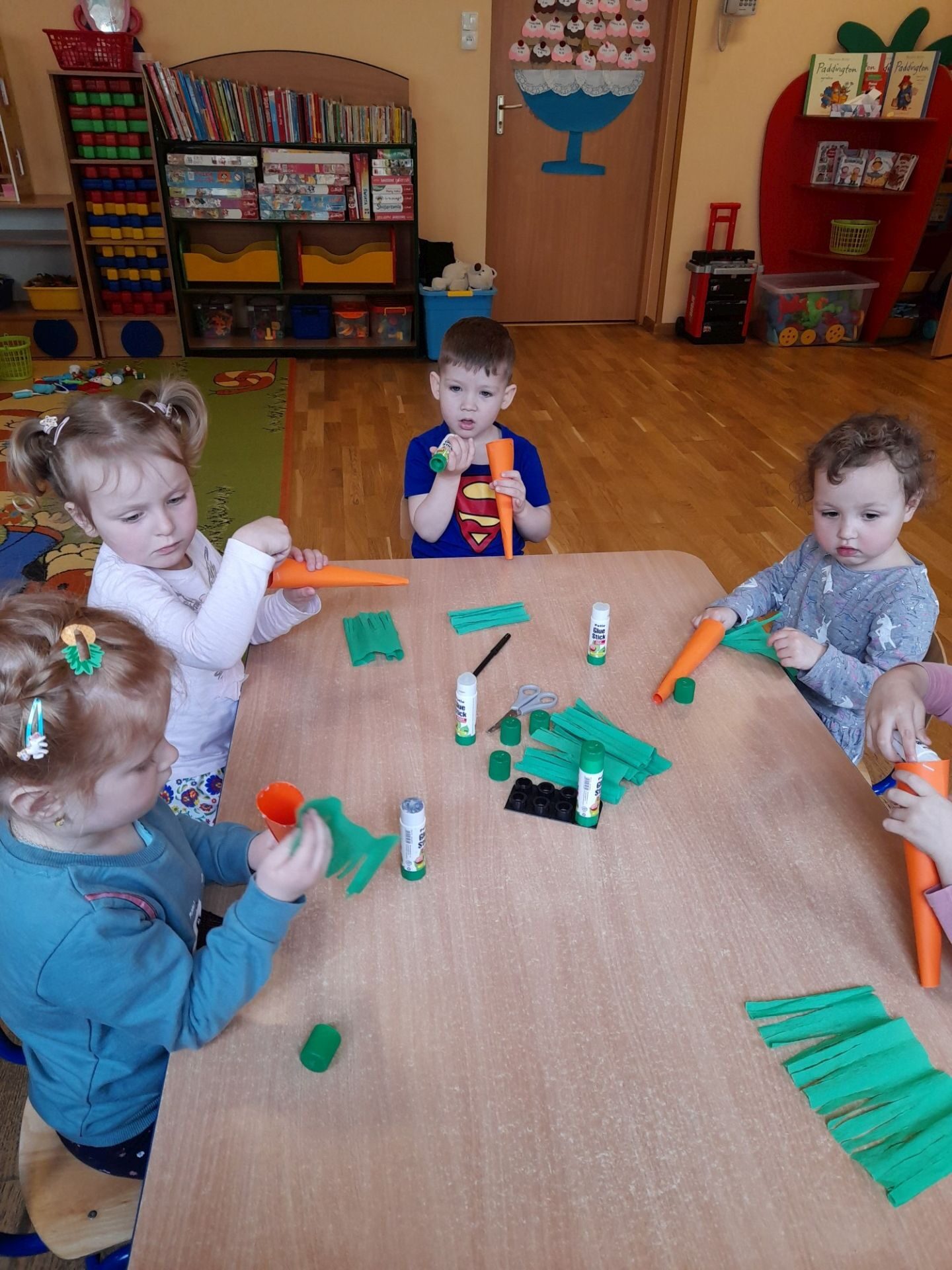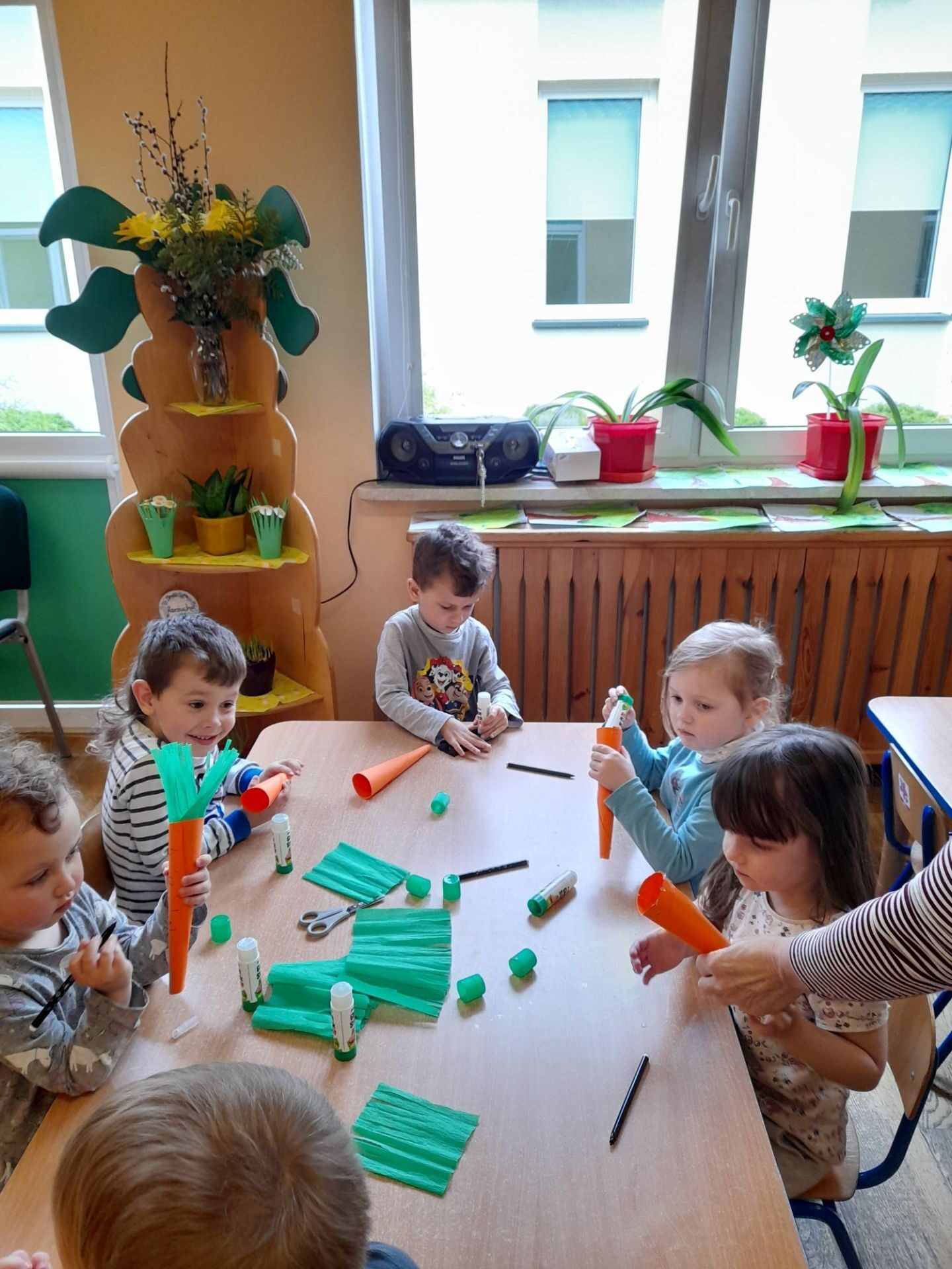 Dzień 27.04.2022r w naszym przedszkolu był dniem wyjątkowym- pomarańczowym, marchewkowym, zdrowym i witaminowym. W tym dniu dzieci przyszły do przedszkola ubrane na pomarańczowo. Realizując program edukacji żywieniowej przedszkolaki poznały zalety i walory marchewki. Dzieci mogły się dowiedzieć wiele ciekawych rzeczy: jak bardzo jest zdrowa , zawiera wiele cennych witamin i składników odżywczych, korzystnie wpływa na skórę, włosy oraz wzrok.  Warto go pić, bo to witaminowa „bomba”. Przedszkolaki dowiedziały się, że z marchewki można zrobić też dżem, sok i upiec marchewkowe ciasto. Ten „bardzo zdrowy dzień pomarańczowy” wypełniony był zabawami przy piosenkach o marchewce, pracami plastycznymi oczywiście o marchewce, chrupaniem surowych marchewek, próbowaniem marchewkowego soku a także degustacją surówki z marchewki.