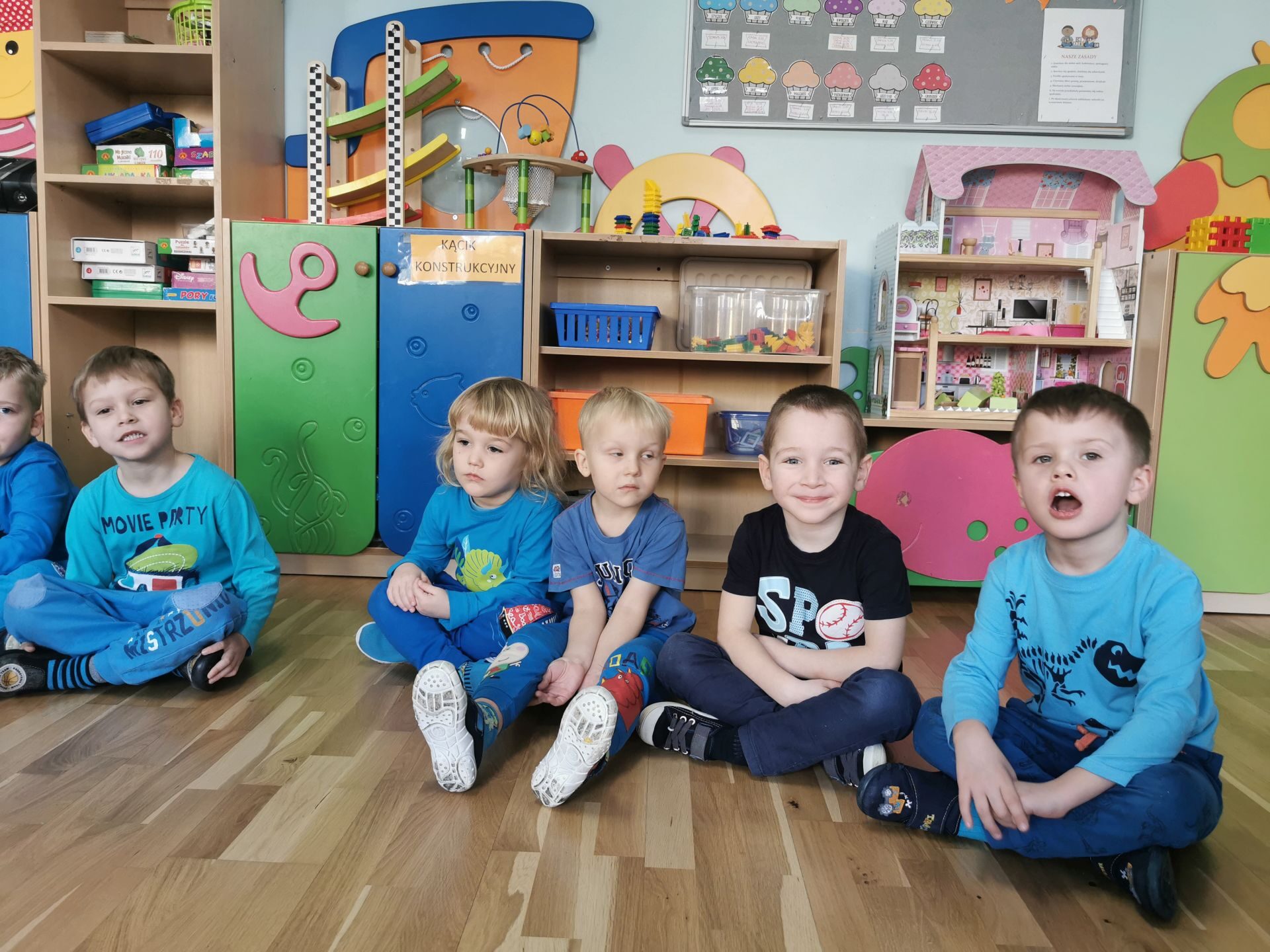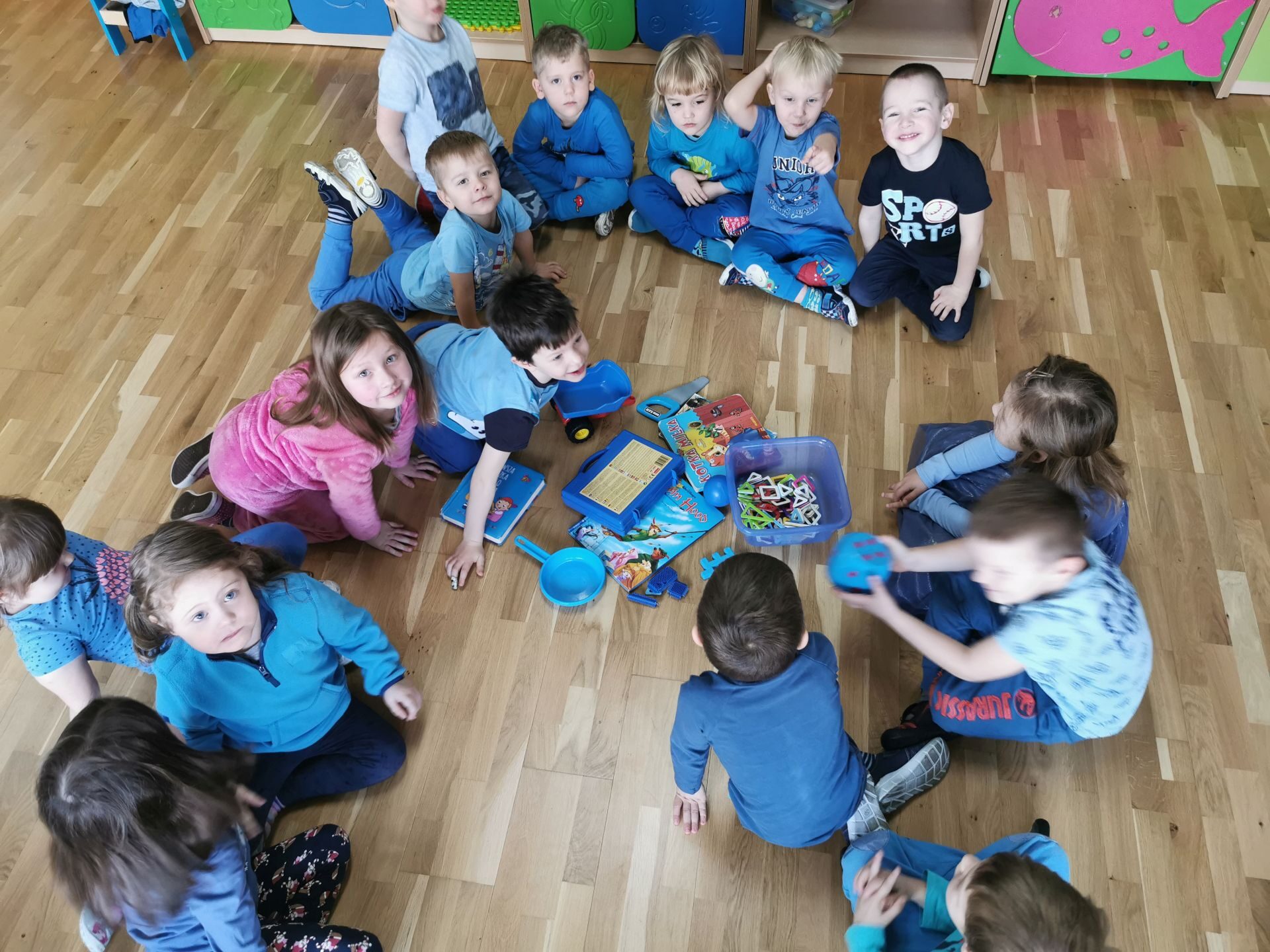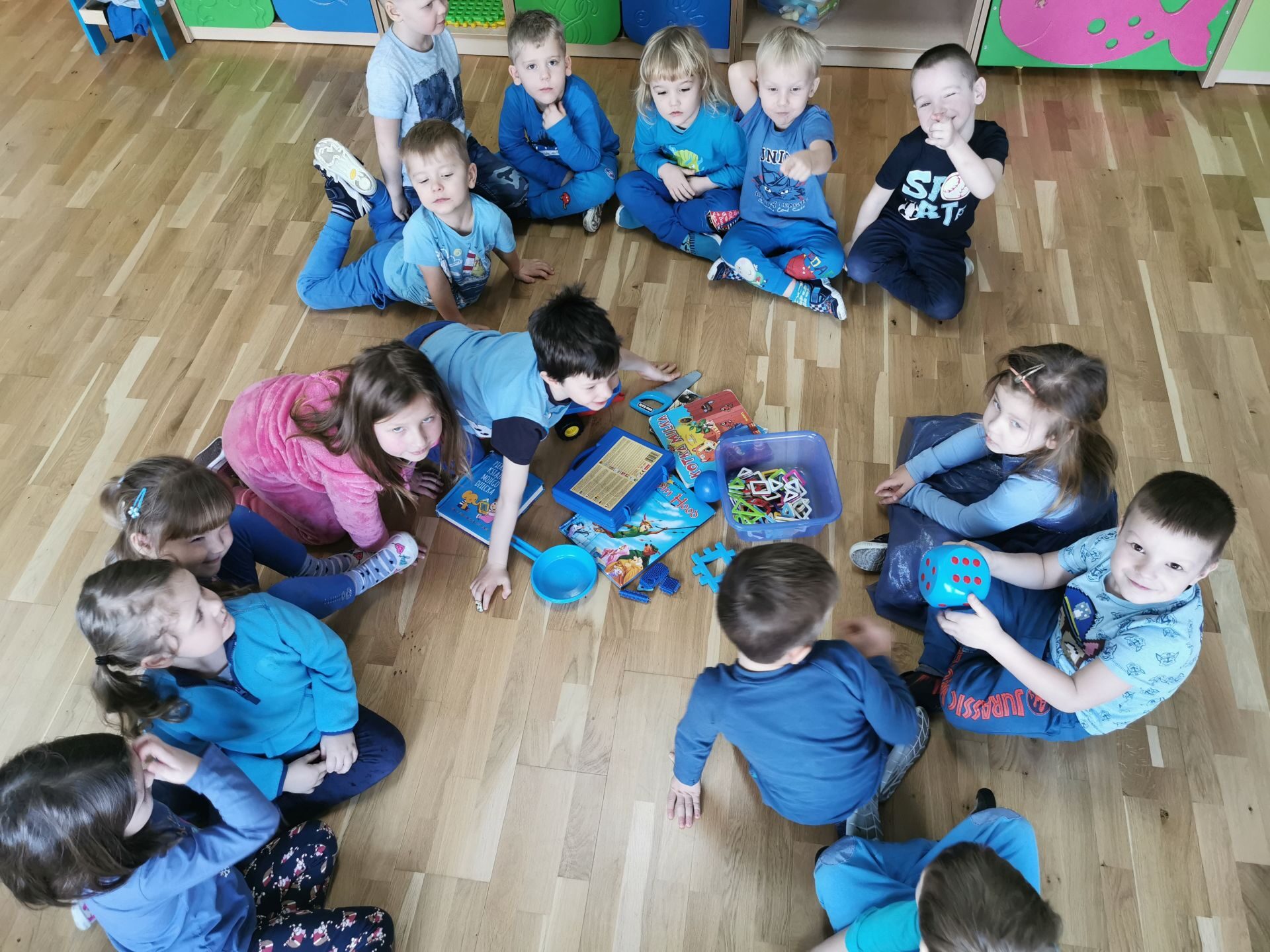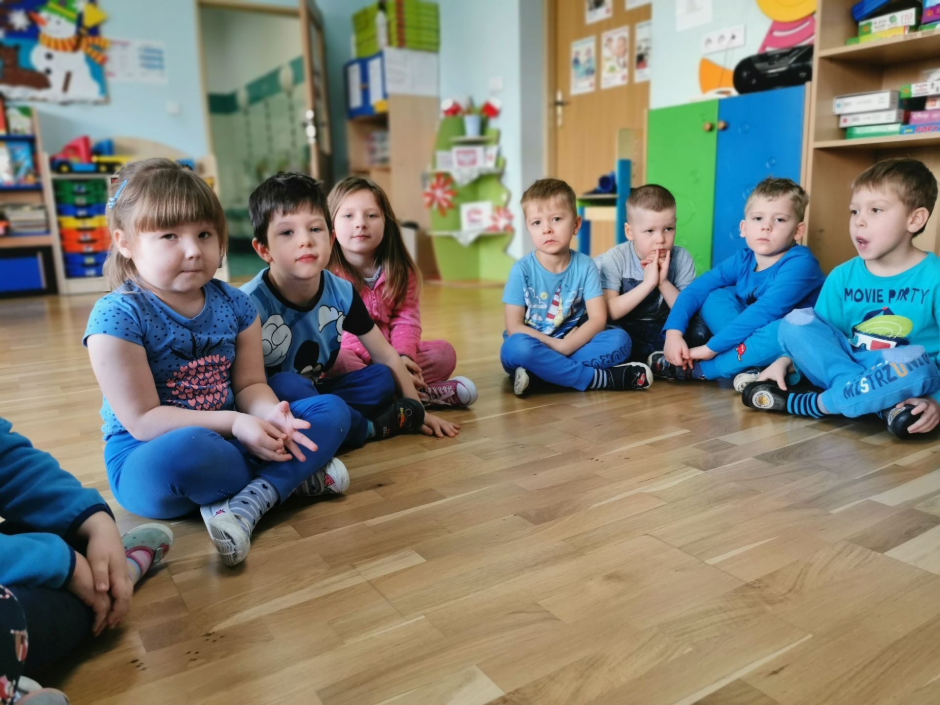 Na salach królował kolor niebieski.Każdy przedszkolak miał na sobie coś niebieskiego. Ciocie również…