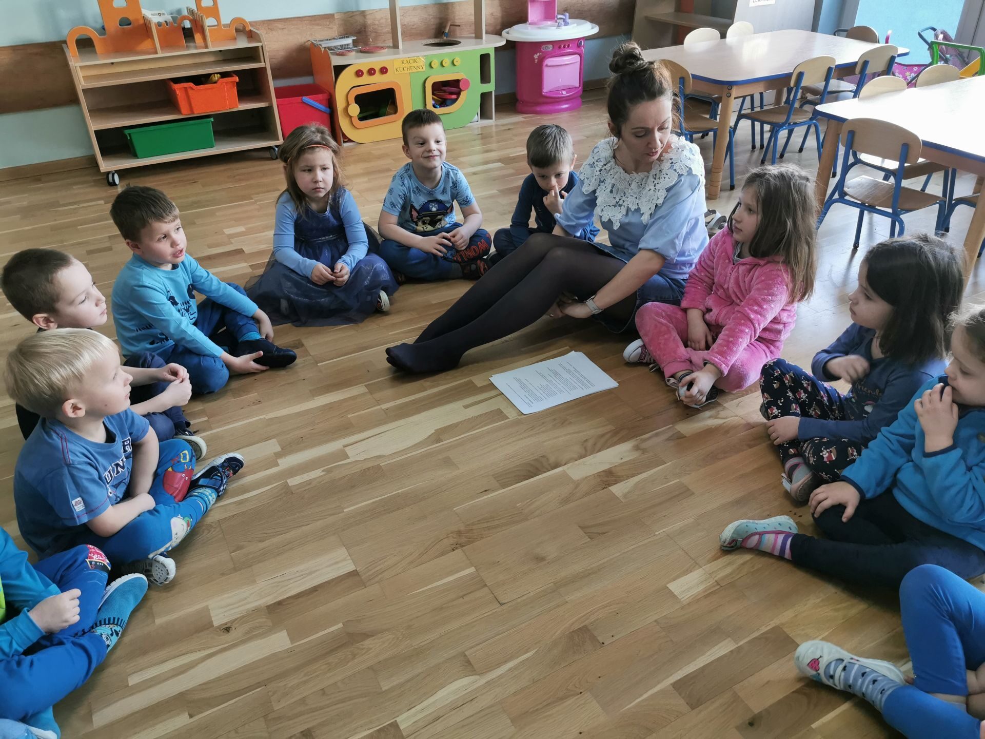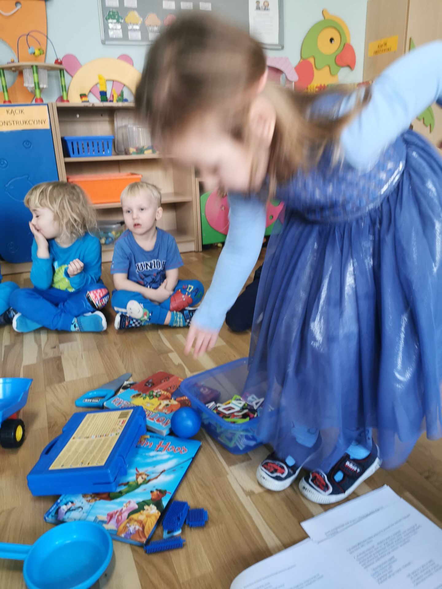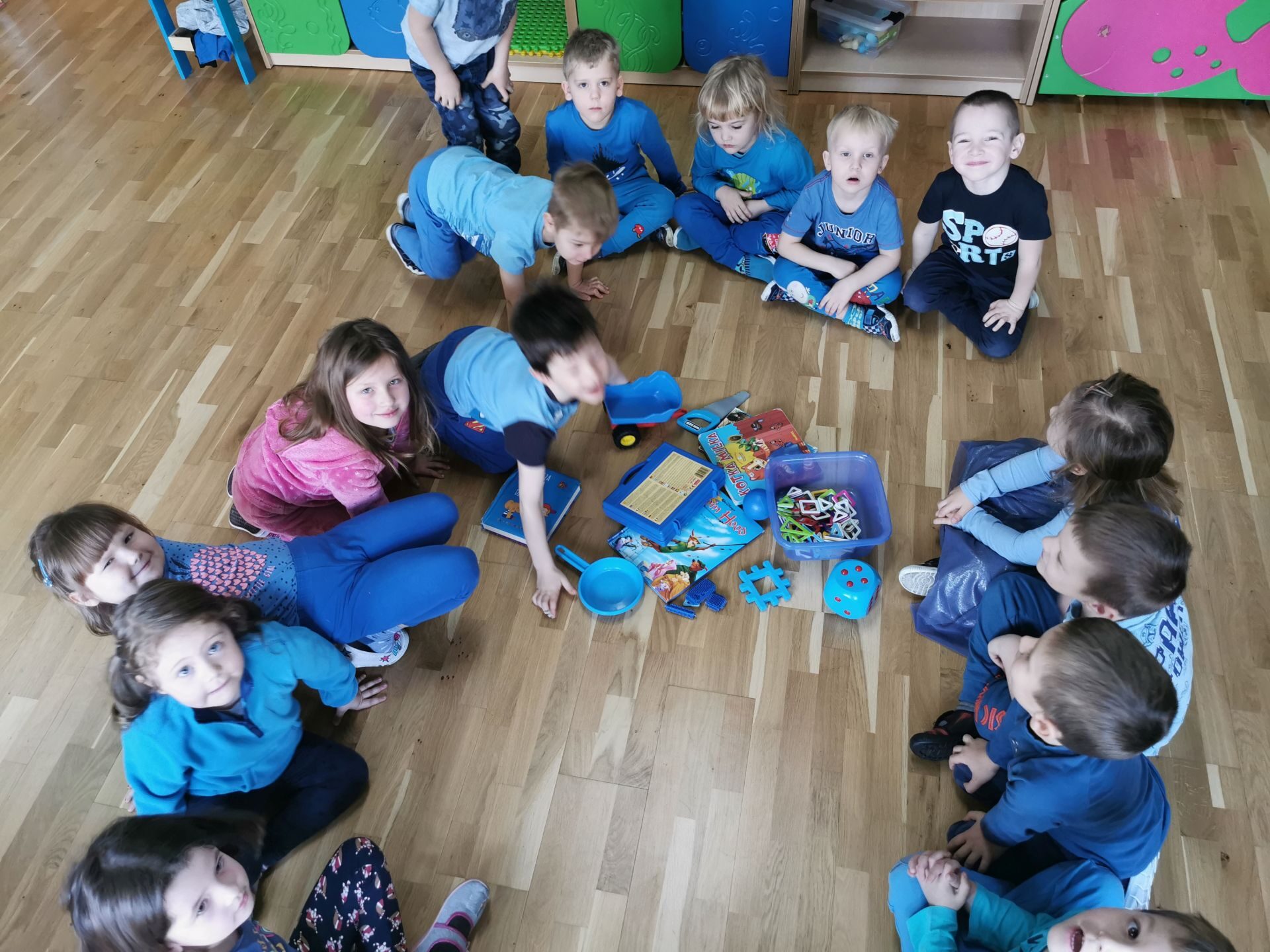 Na salach królował kolor niebieski.Każdy przedszkolak miał na sobie coś niebieskiego. Ciocie również…