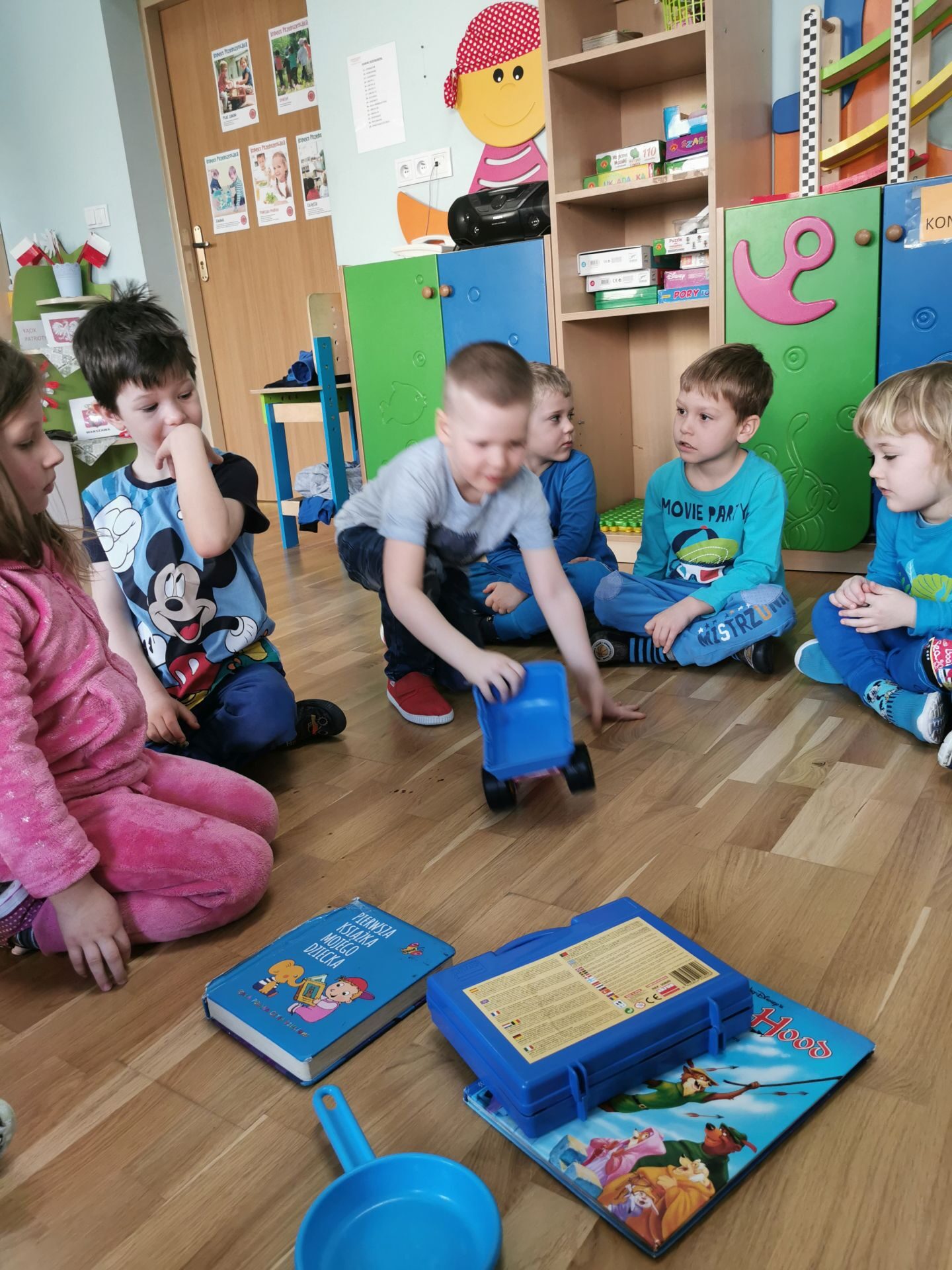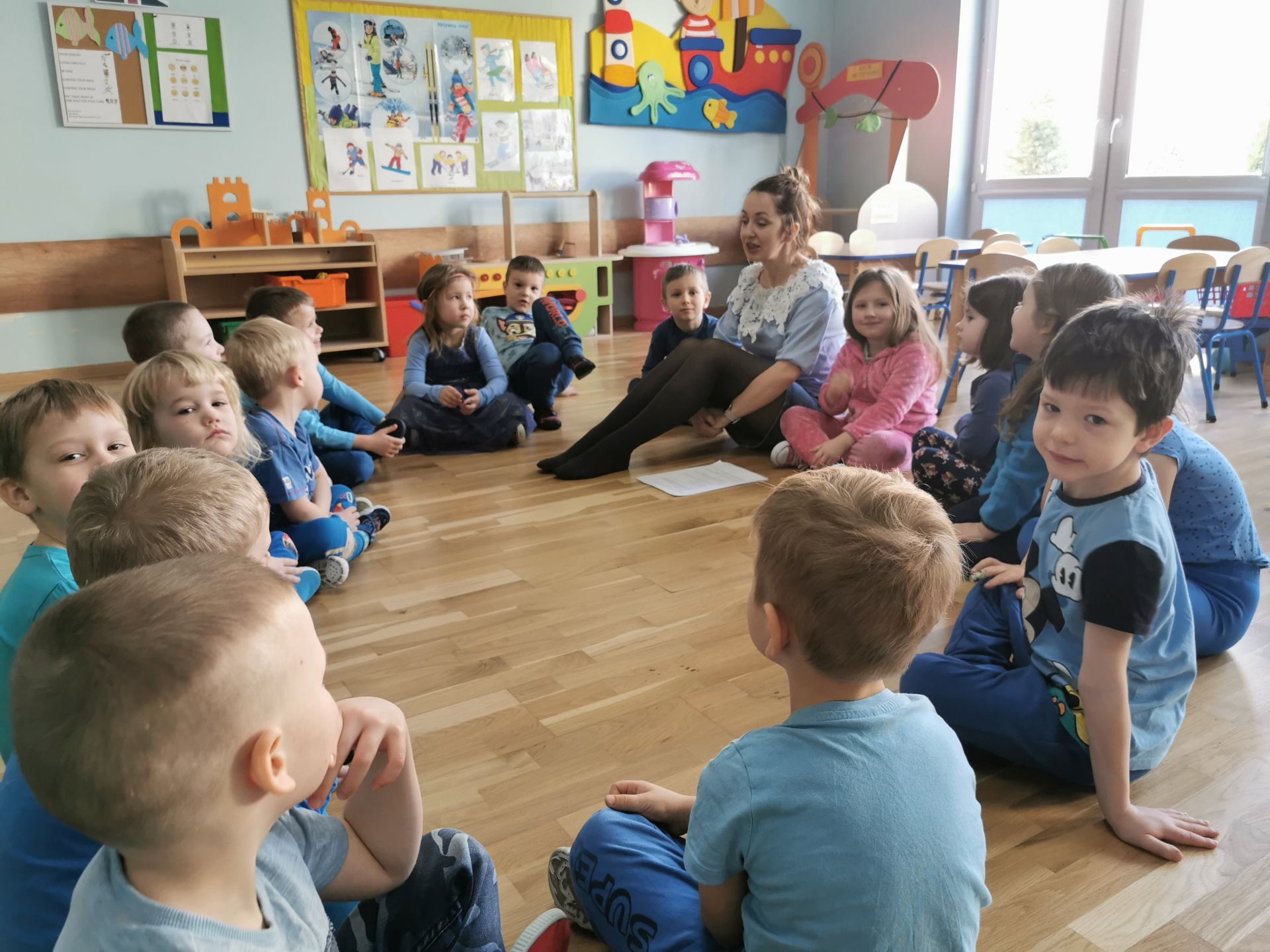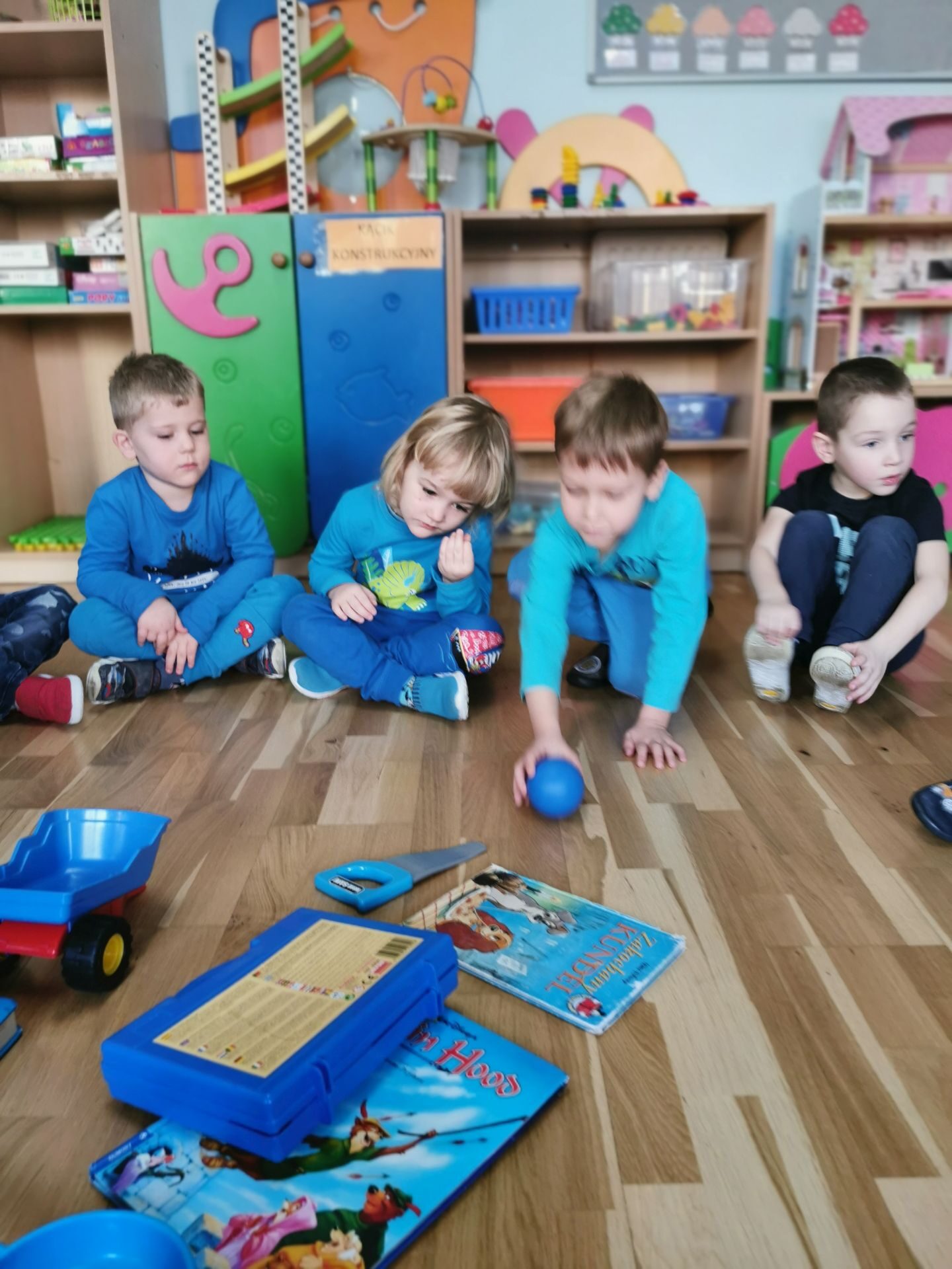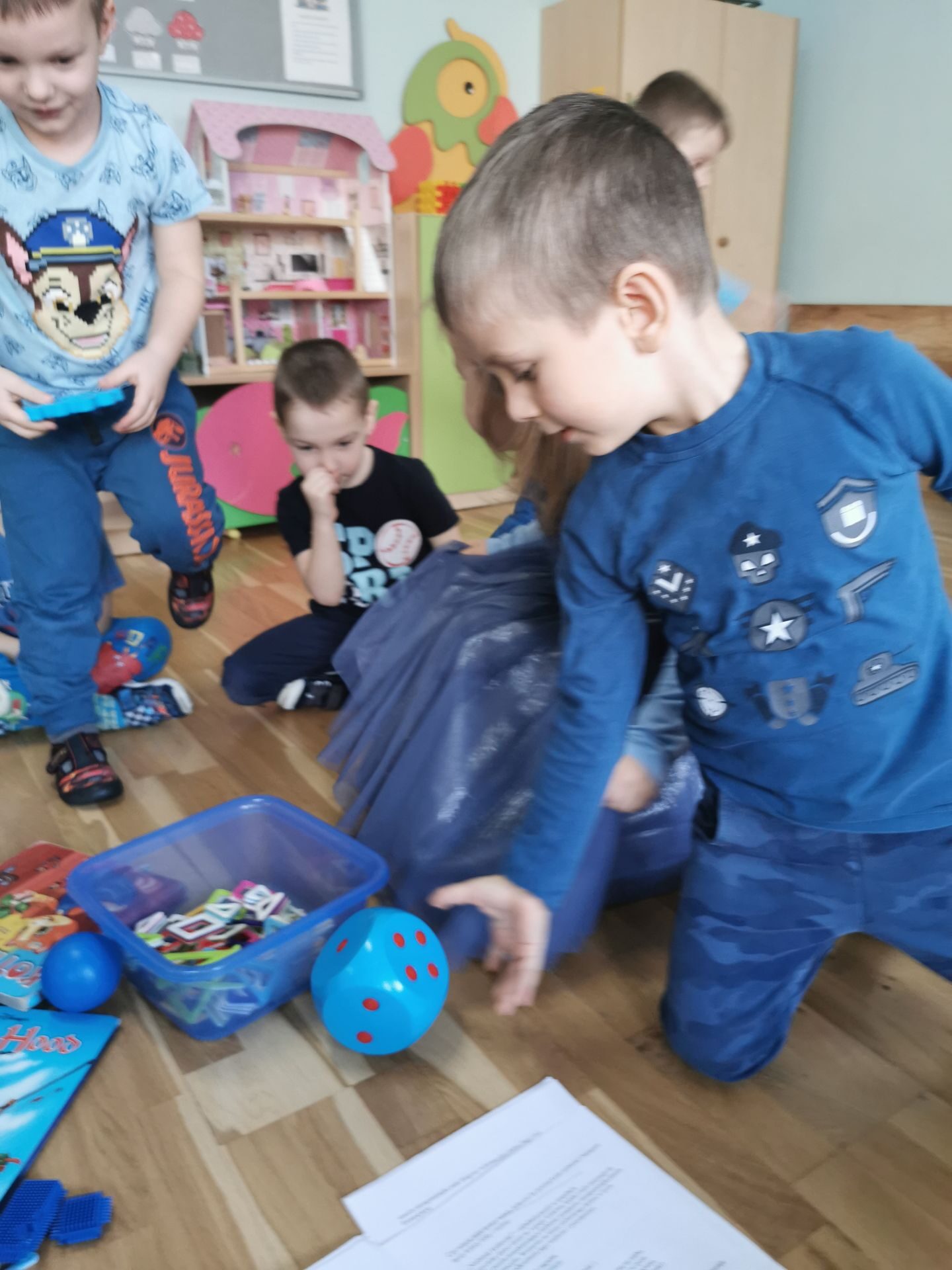 Na salach królował kolor niebieski.Każdy przedszkolak miał na sobie coś niebieskiego. Ciocie również…