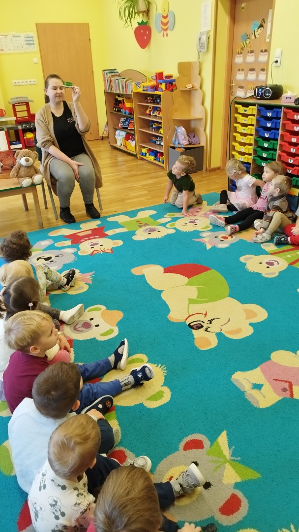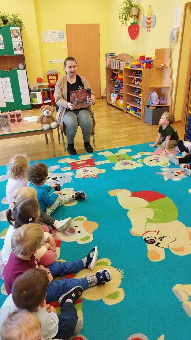 był „Dzień Pluszowego Misia”. Przedszkolaki wysłuchały bajki pt. „Pan Miś chrapie”