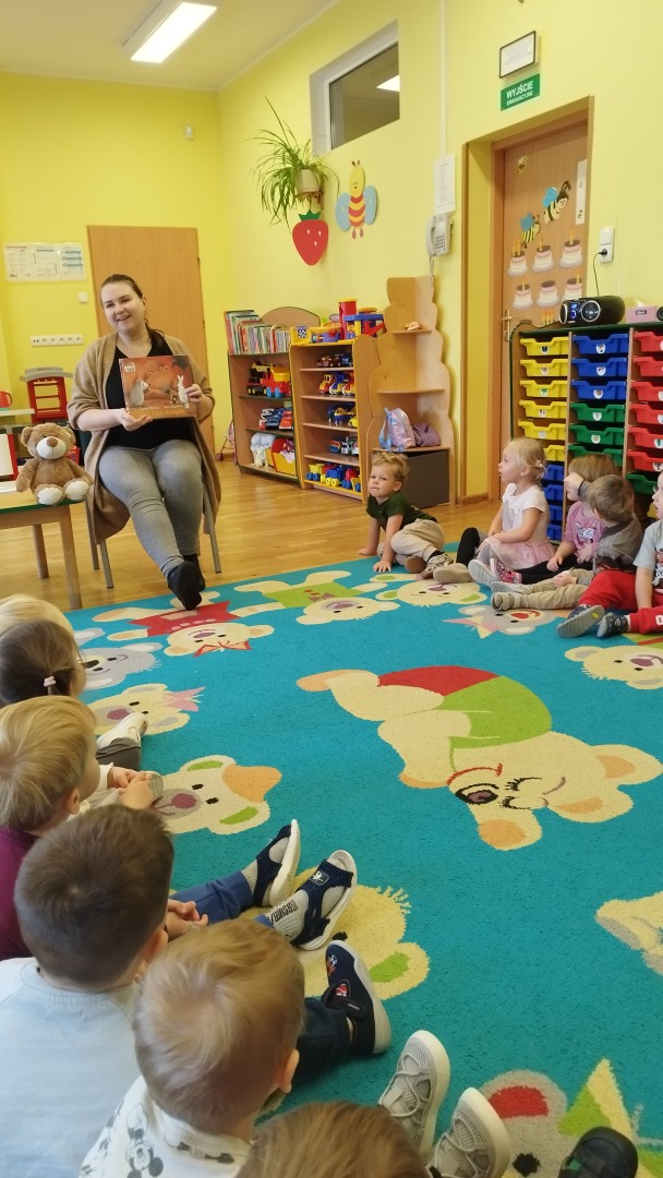 25.11.2025 r. dzieci trzyletnie wzięły udział w ciekawych zajęciach bibliotecznych,