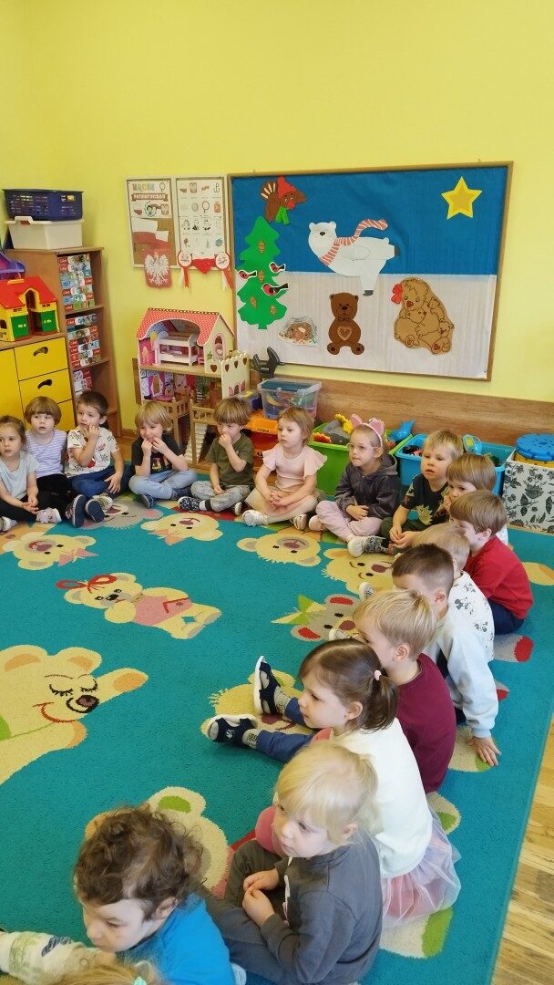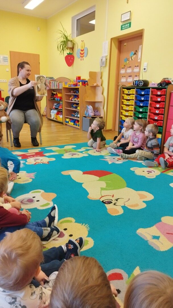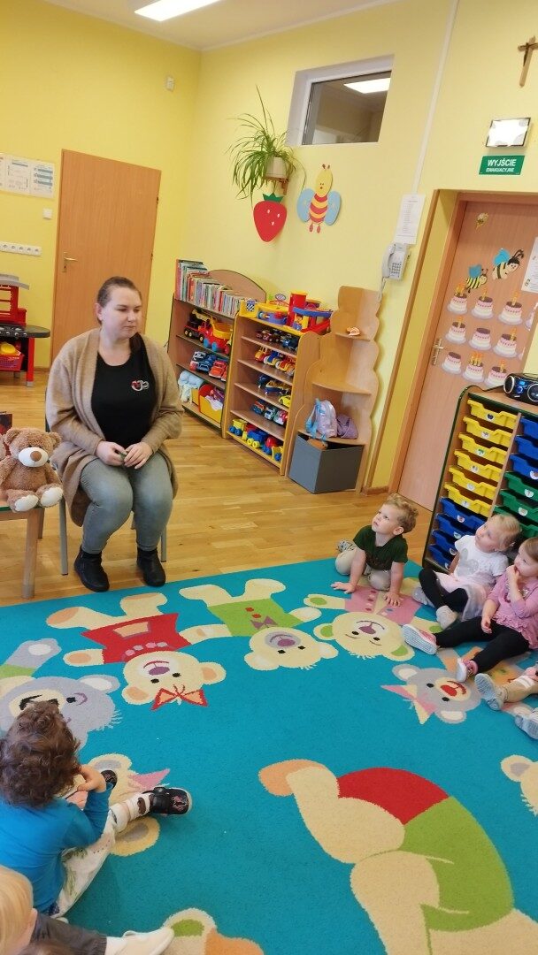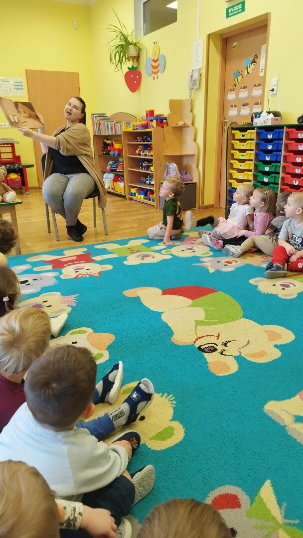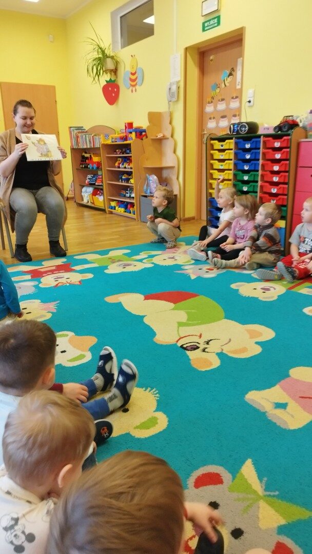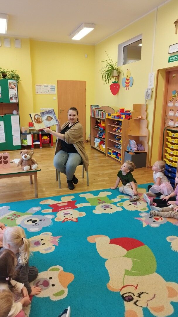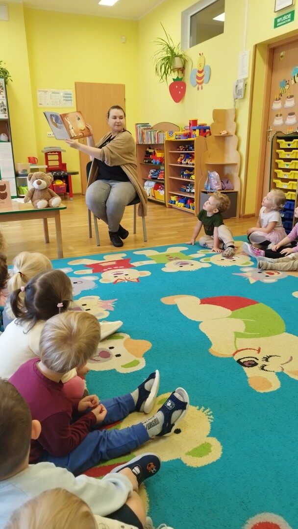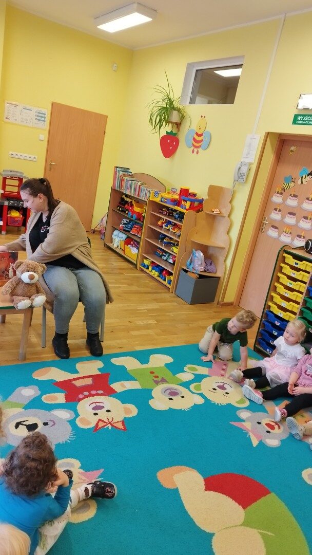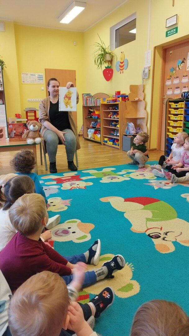 był „Dzień Pluszowego Misia”. Przedszkolaki wysłuchały bajki pt. „Pan Miś chrapie”