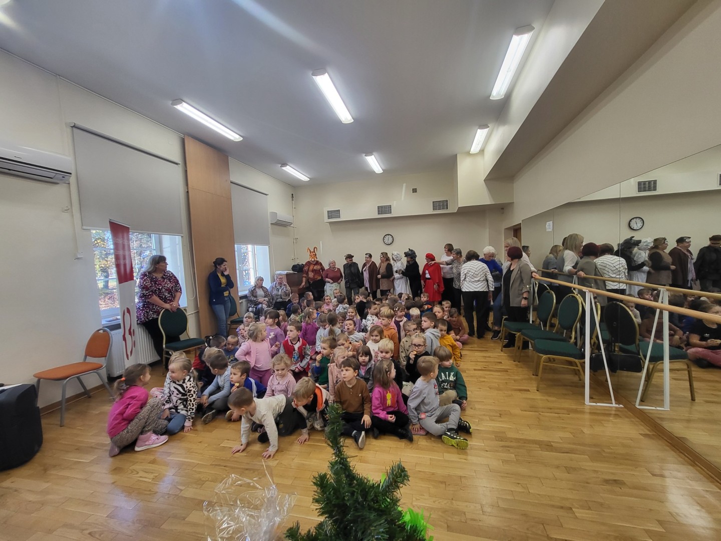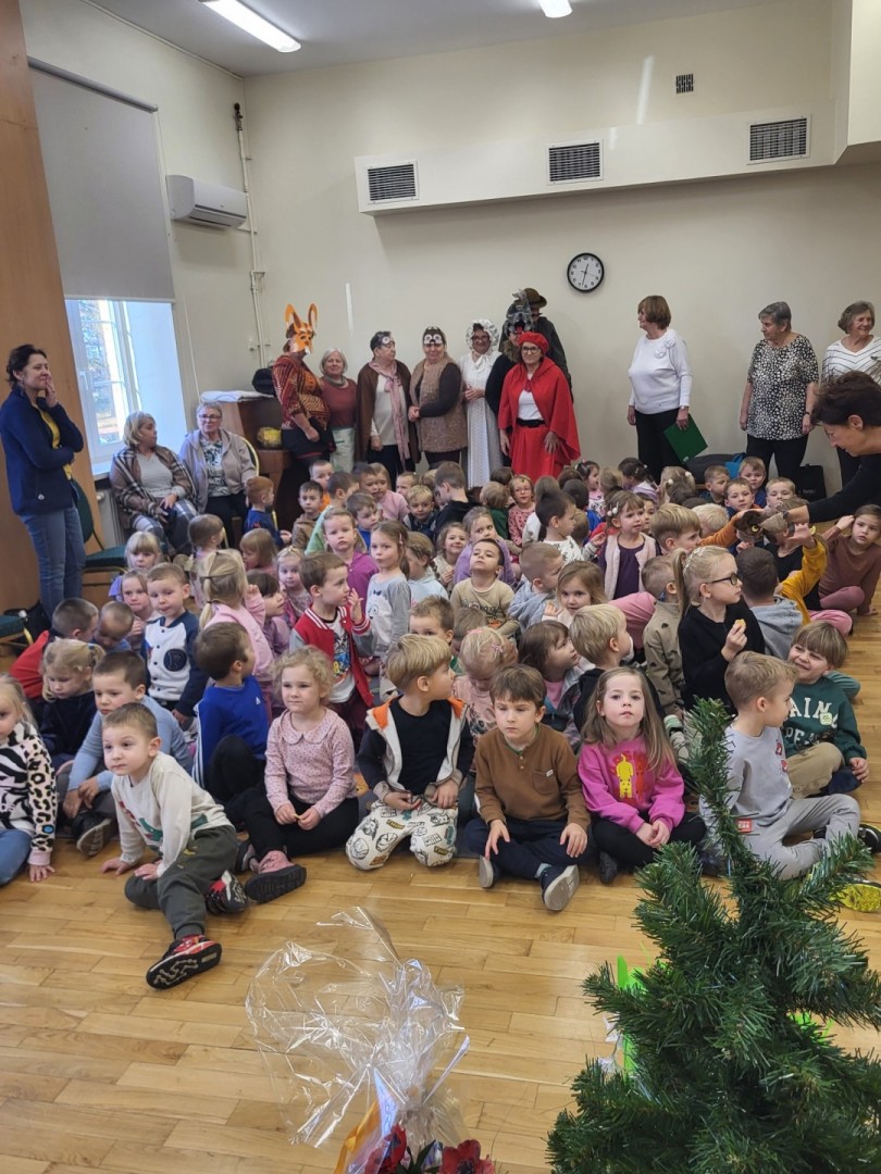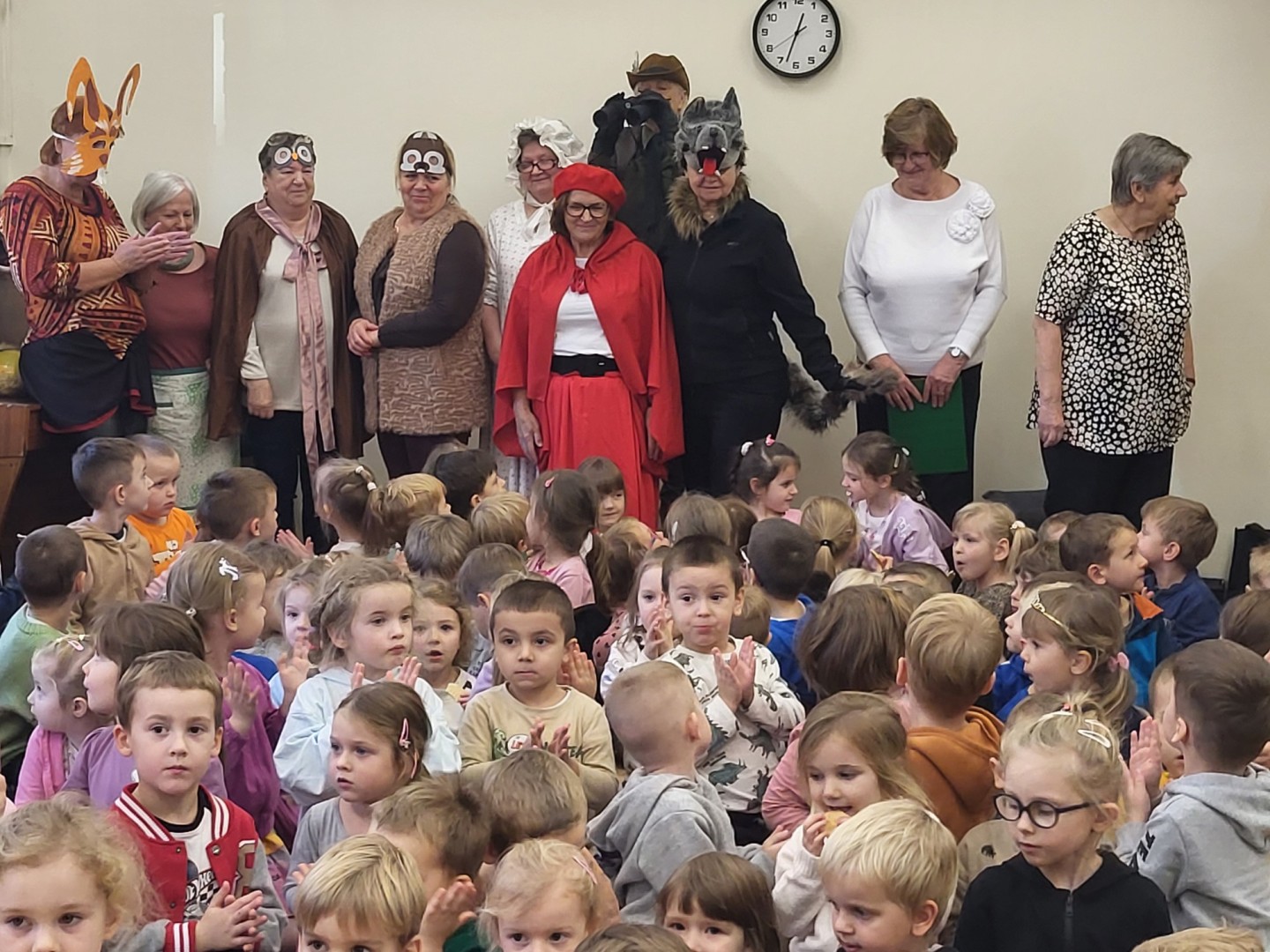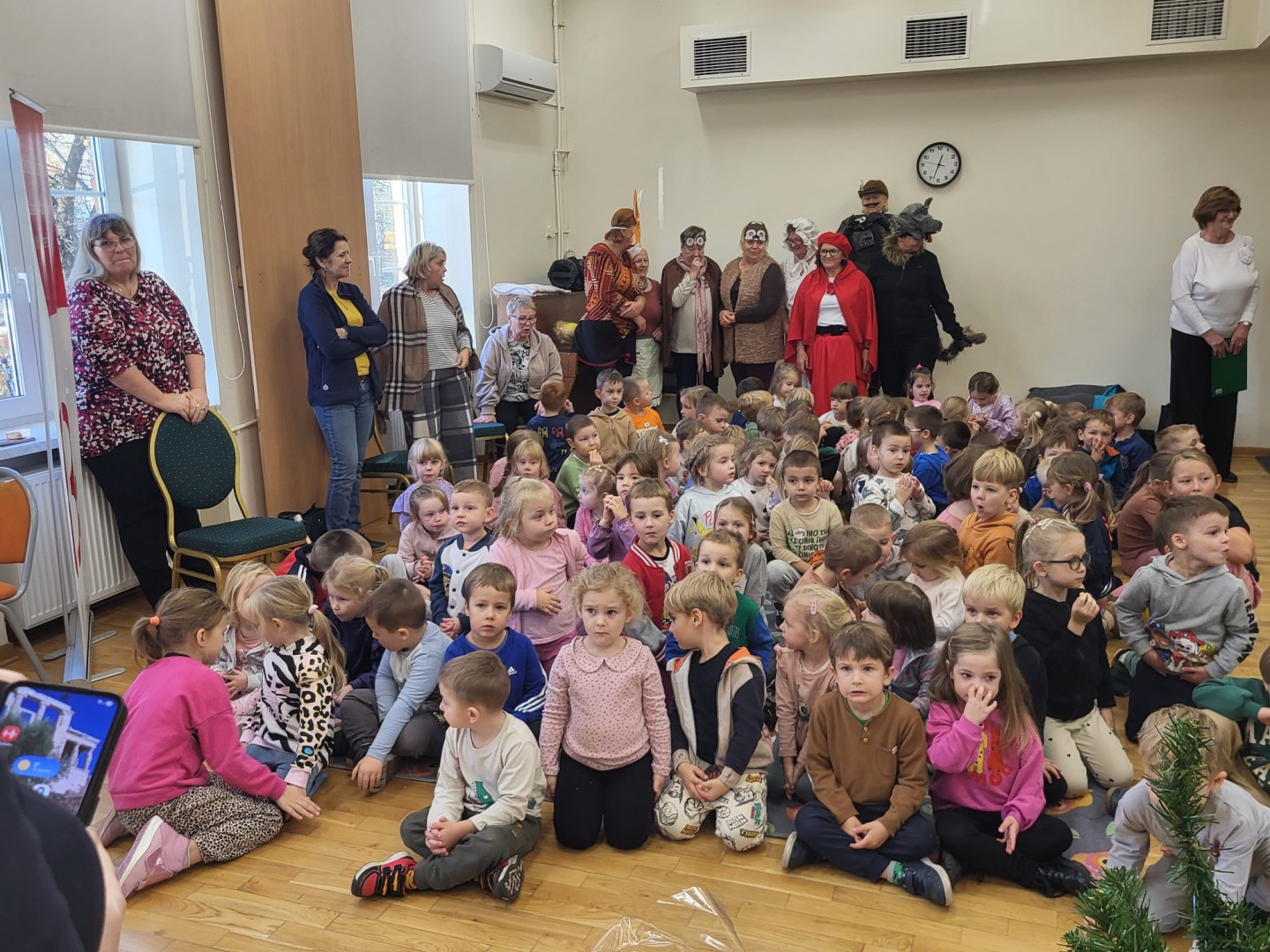 5 listopada obchodziliśmy Dzień Postaci z Bajek, z tej okazji 4 grupy dzieci na naszego przedszkola”Rybki”, “Biedronki”, “Żabki” i Zajączki” zostały zaproszone do Biblioteki Publicznej w Józefowie na specyjalny spektakl teatralny, który dla przedszkolaków przygotowały  panie z Klubu Pasjonatów. Bajka pt.: “Czerwony Kapturek” w tak innym wykonaniu  zachwyciła naszych przedszkolaków i wychowawczynie, którzy aż zaniemówili z zachwytu. Z zapartym tchem wszyscy śledzili losy Czerwonego Kapturka, który spotykał w lesie (w drodze do babci)  leśne zwierząta i z nimi rozmawiał. Na zakończenie Aktorki  porwały wszystkich gości do tańca. Wspaniała gra aktorska, piękne stroje oraz przygotowana scenografia sprawiła, że spektakl na dlugo zostanie w pamięci przedszkolaków i wychowawców.  Przedszkolaki wraz z panią wicedyrektor podziękowały za zaproszenie oraz zaprosily panie Klubu Pasjonatów na uroczyste ochody Święta Niepodległości do naszego przedszkola.