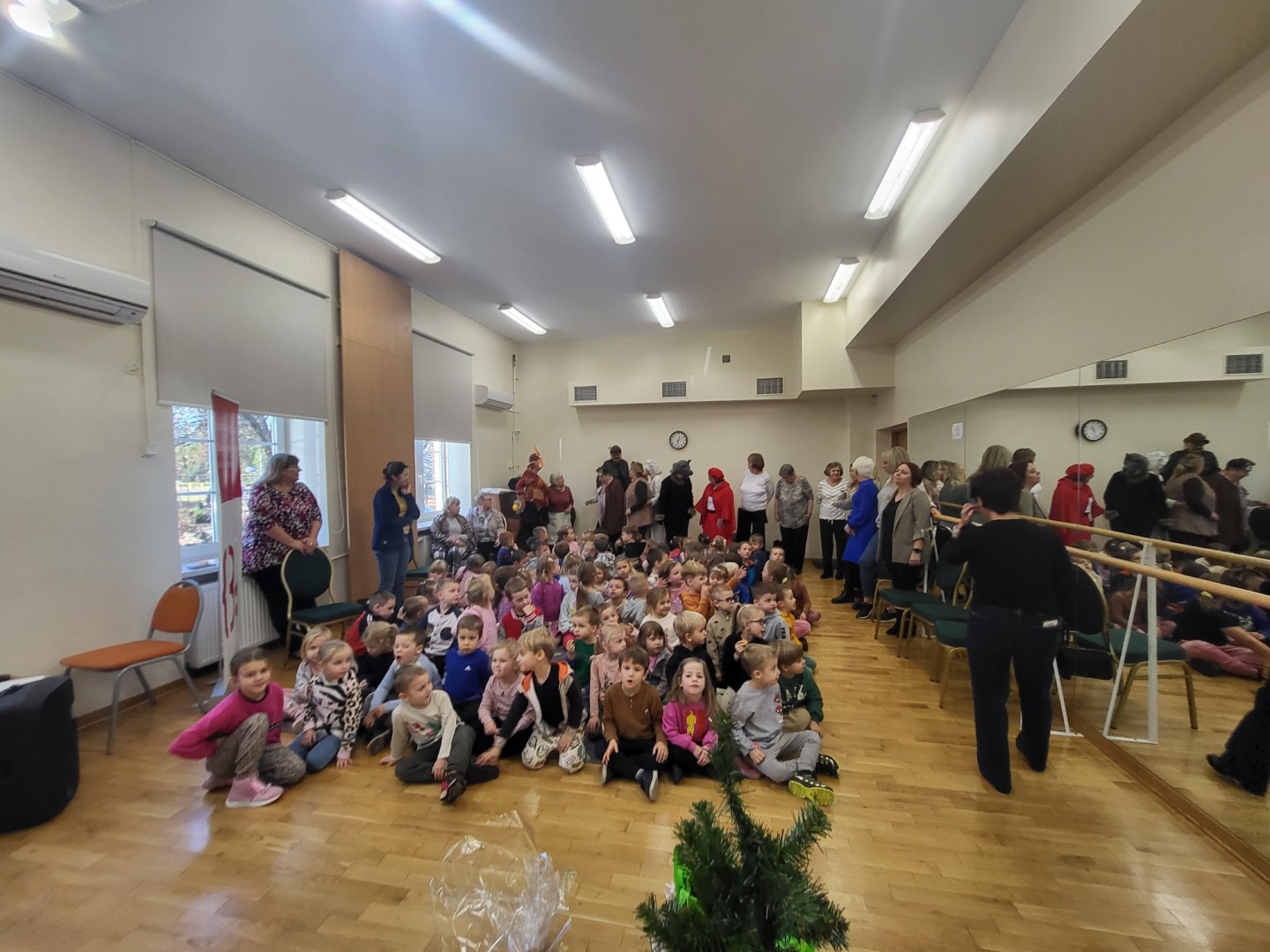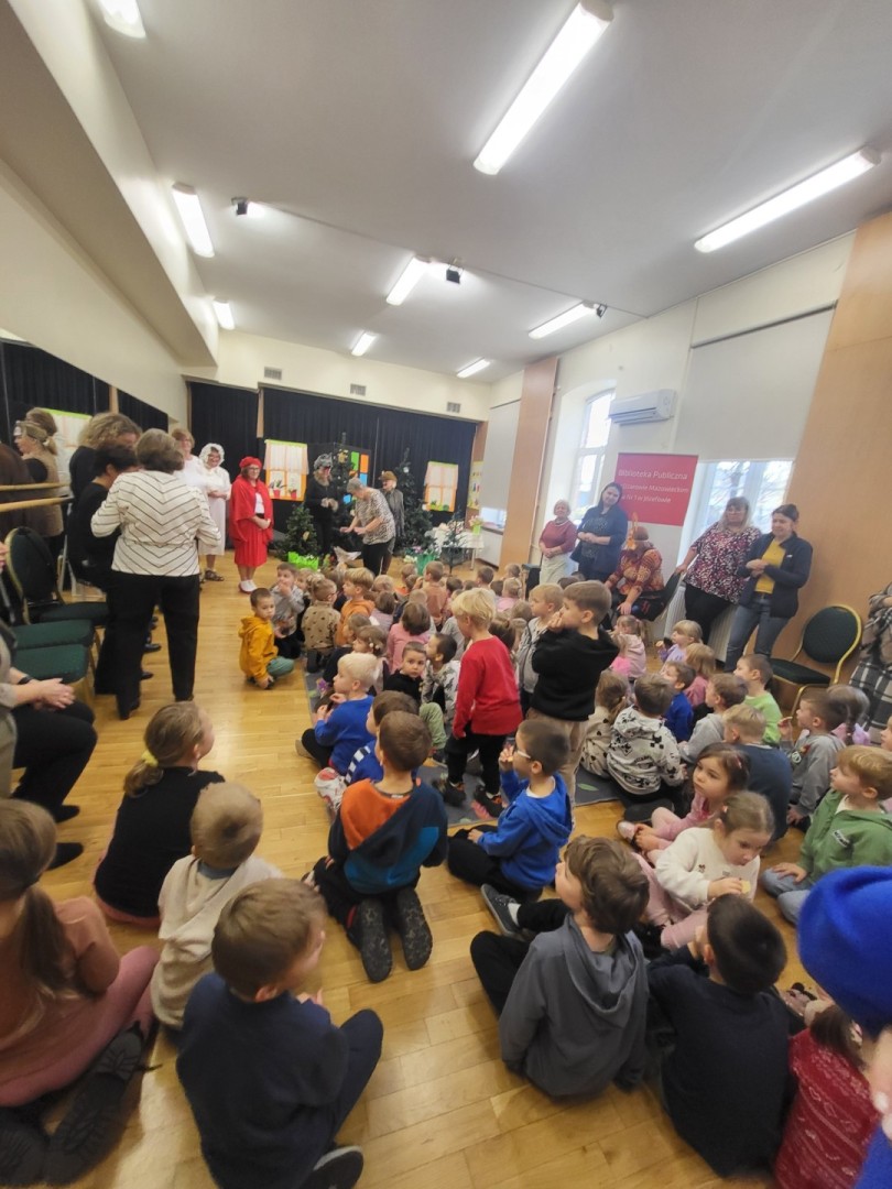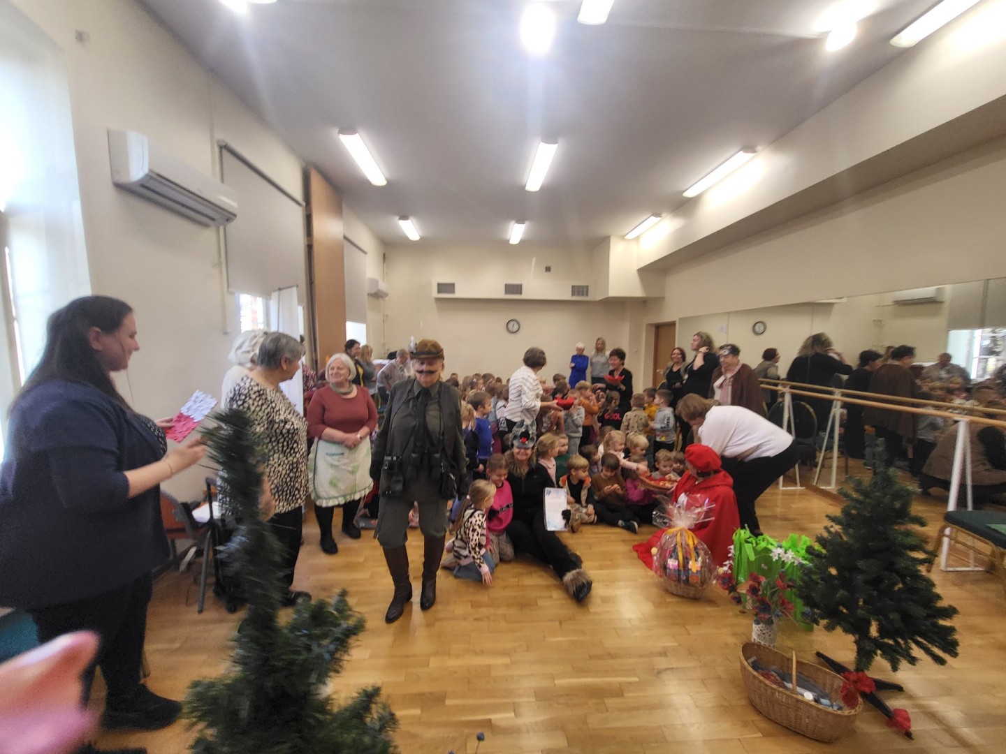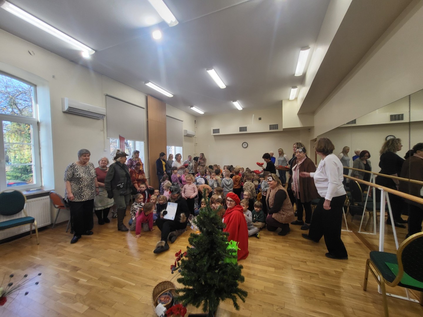 5 listopada obchodziliśmy Dzień Postaci z Bajek, z tej okazji 4 grupy dzieci na naszego przedszkola”Rybki”, “Biedronki”, “Żabki” i Zajączki” zostały zaproszone do Biblioteki Publicznej w Józefowie na specyjalny spektakl teatralny, który dla przedszkolaków przygotowały  panie z Klubu Pasjonatów. Bajka pt.: “Czerwony Kapturek” w tak innym wykonaniu  zachwyciła naszych przedszkolaków i wychowawczynie, którzy aż zaniemówili z zachwytu. Z zapartym tchem wszyscy śledzili losy Czerwonego Kapturka, który spotykał w lesie (w drodze do babci)  leśne zwierząta i z nimi rozmawiał. Na zakończenie Aktorki  porwały wszystkich gości do tańca. Wspaniała gra aktorska, piękne stroje oraz przygotowana scenografia sprawiła, że spektakl na dlugo zostanie w pamięci przedszkolaków i wychowawców.  Przedszkolaki wraz z panią wicedyrektor podziękowały za zaproszenie oraz zaprosily panie Klubu Pasjonatów na uroczyste ochody Święta Niepodległości do naszego przedszkola.