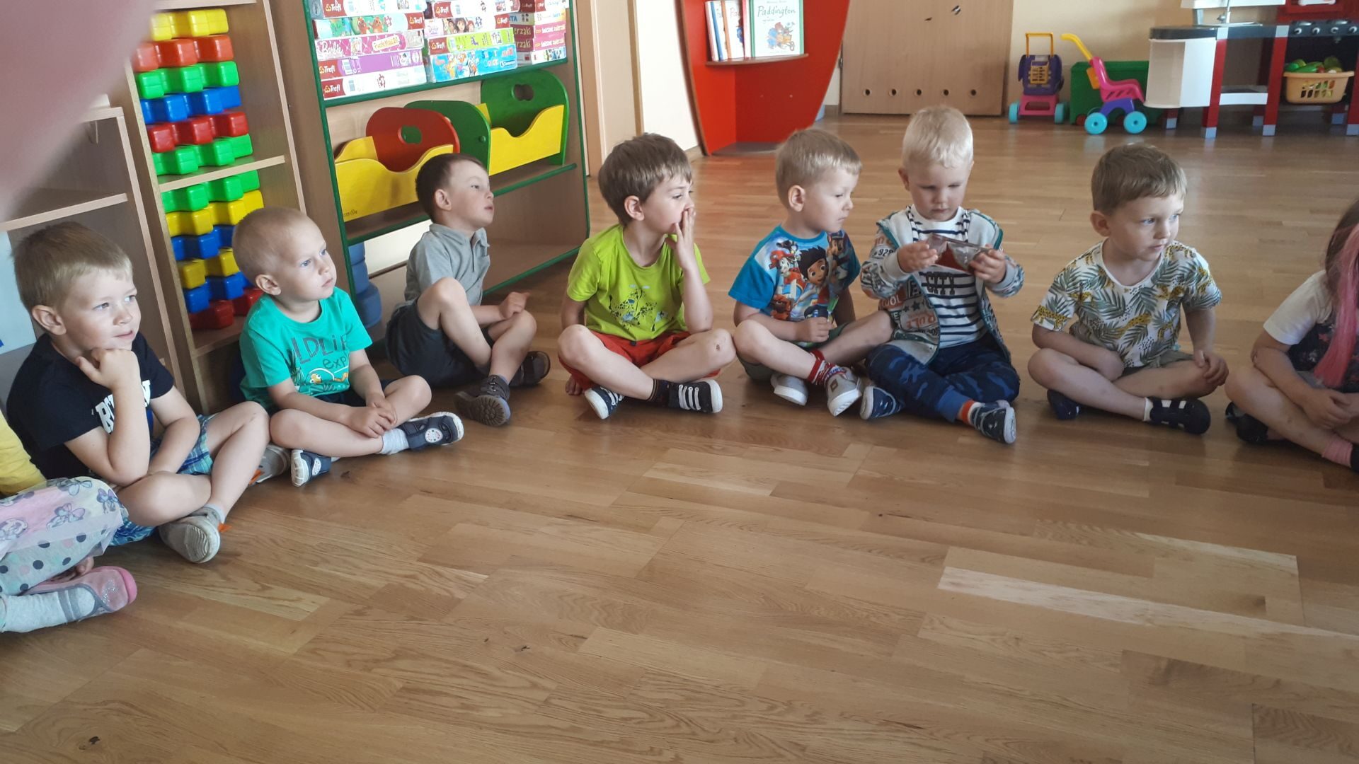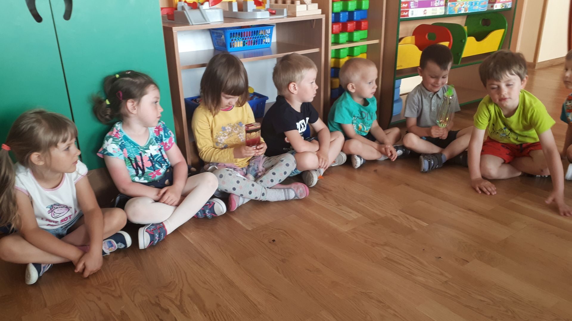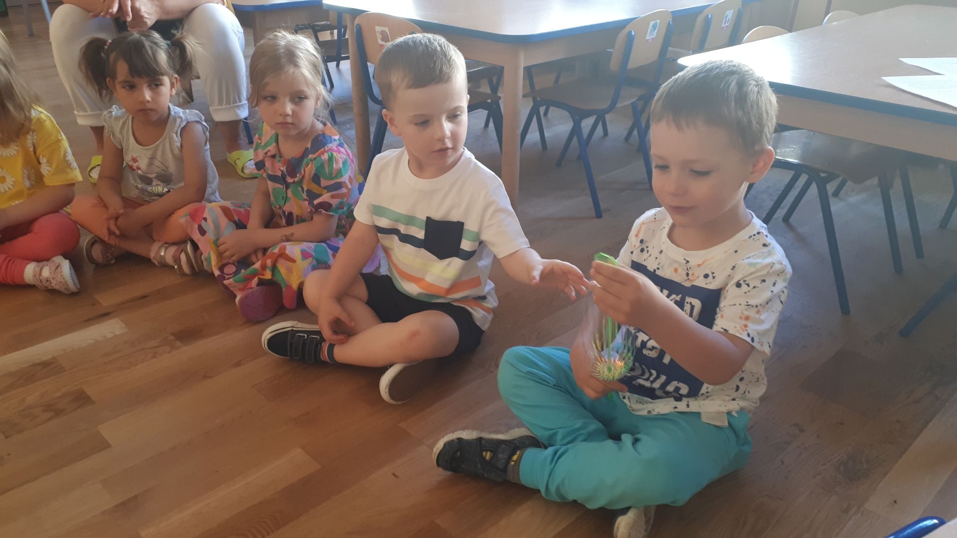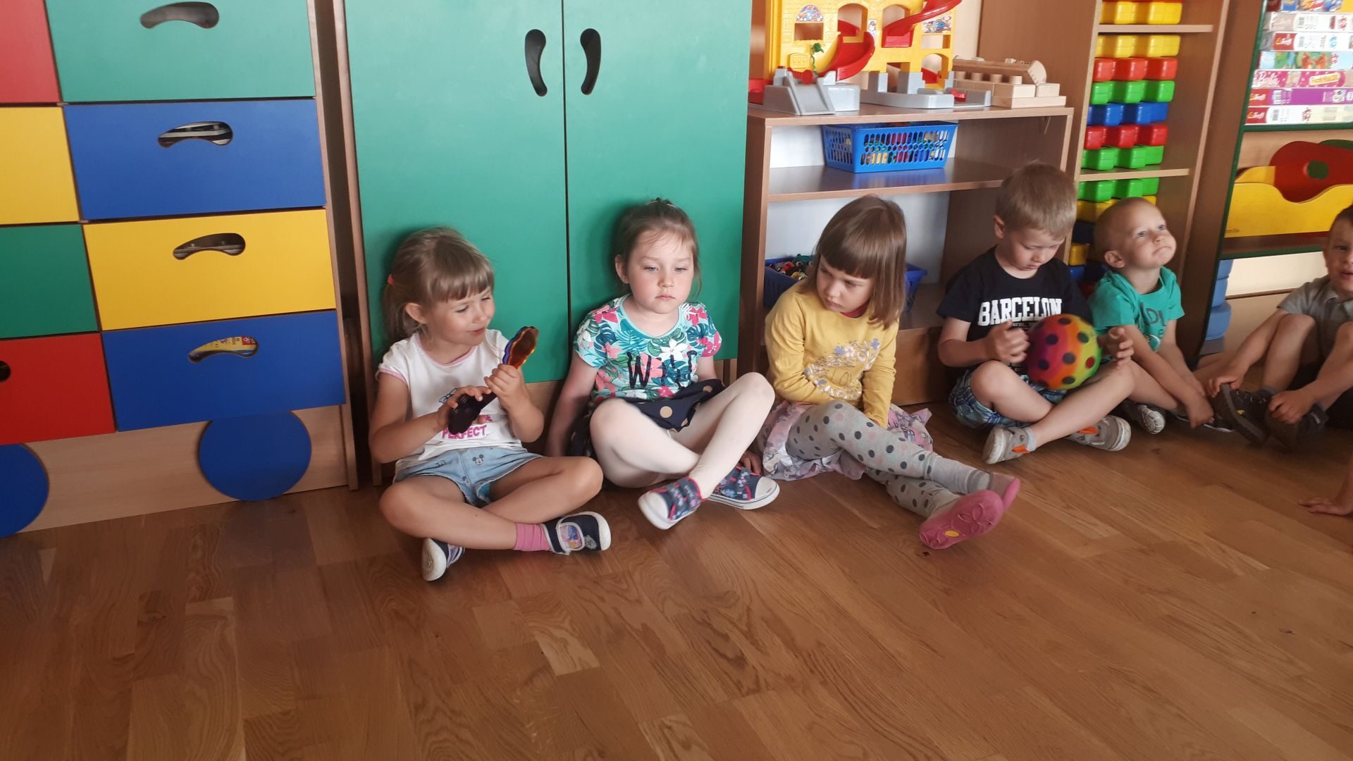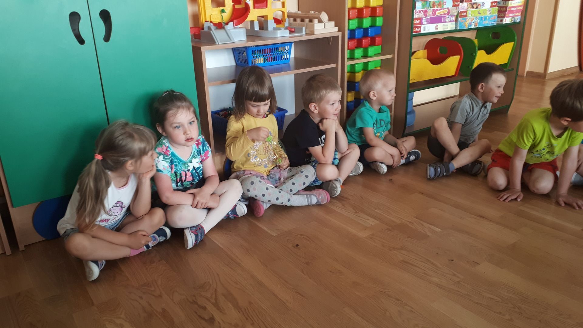 - „Tęczowe podchody” – szukanie kolorowych przedmiotów w Sali.