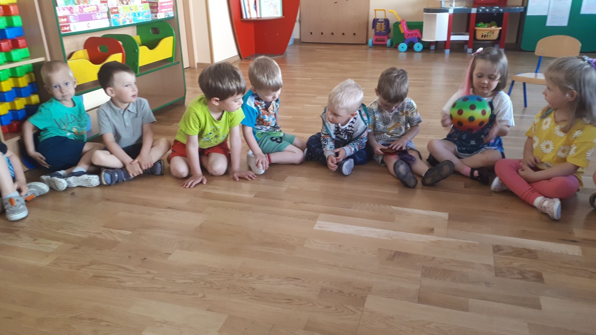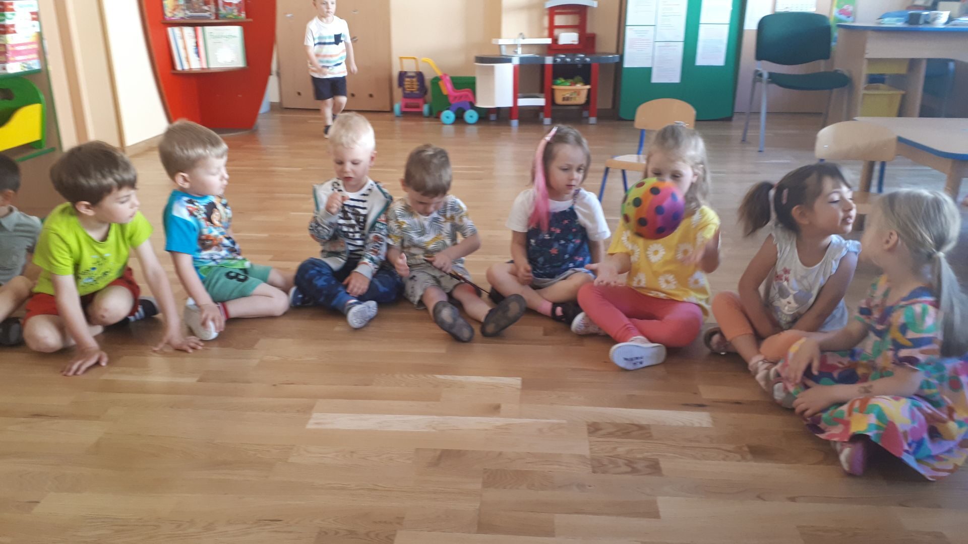 - „Powitanie z kolorami tęczy – zabawa wprowadzająca w kole.