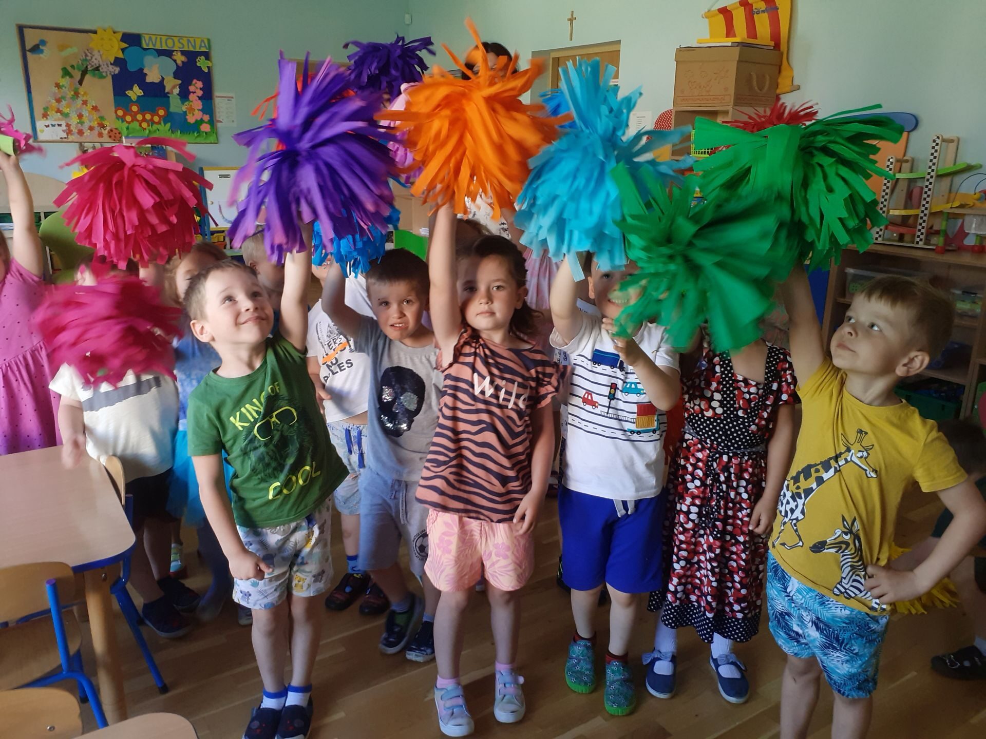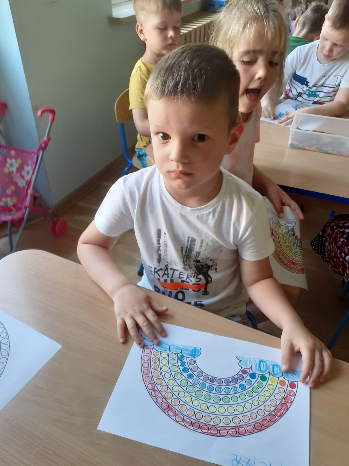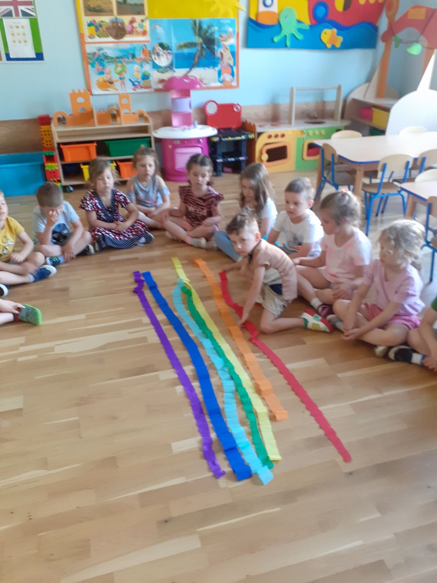 „Dzień tęczowy”, odbył się 8.06 .2021r , w każdej grupie przedszkolnej.Tego dnia dzieci, nauczyciele oraz pracownicy przedszkola ubrani byli w kolory tęczy. Nauczycielki z każdej grupy przygotowały zajęcia i zabawy związane z kolorami tęczy . Przygotowano dla dzieci następujące zadania: