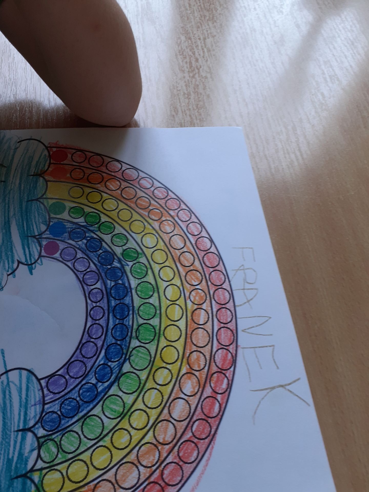 - „Powitanie z kolorami tęczy – zabawa wprowadzająca w kole.