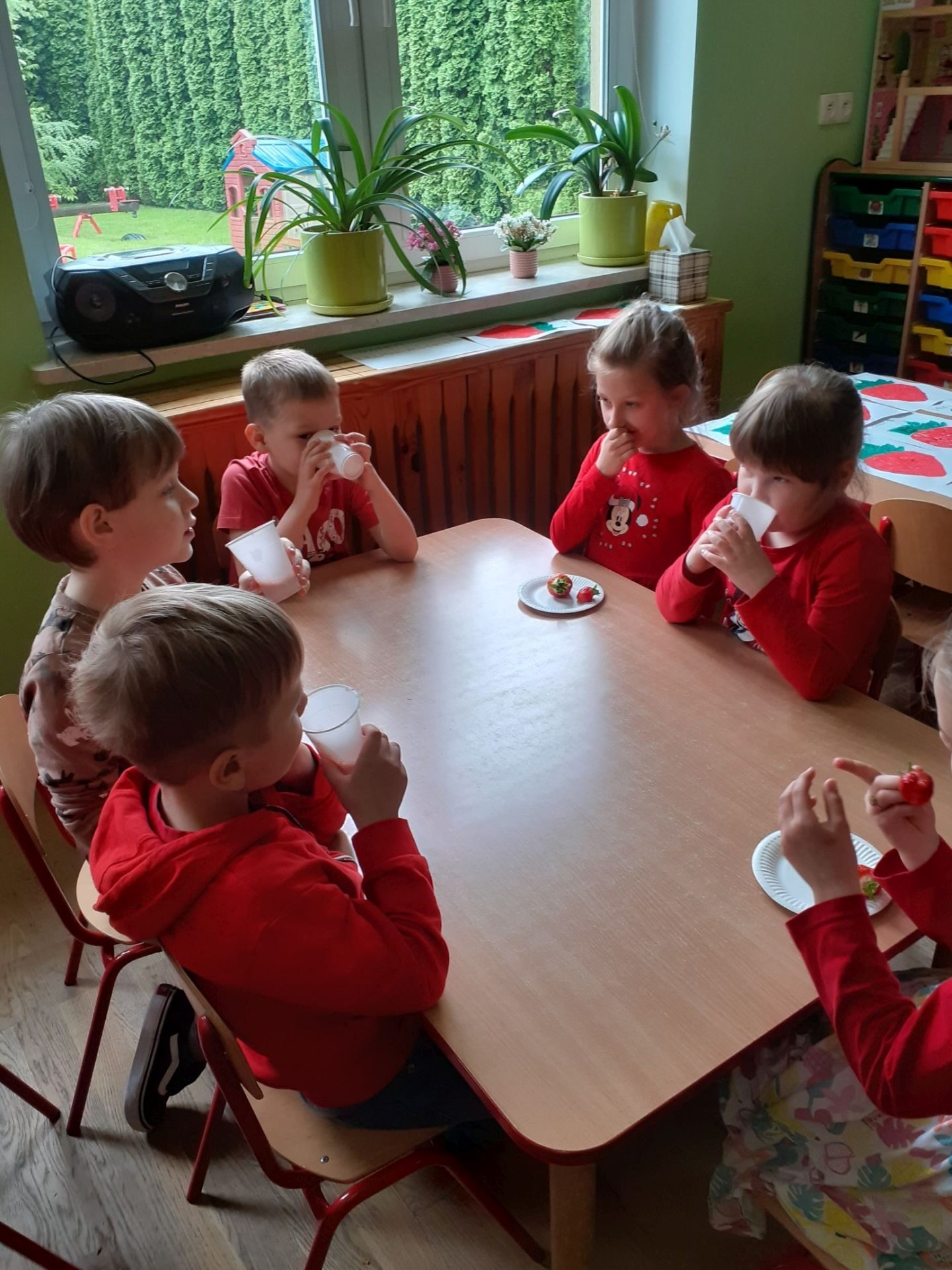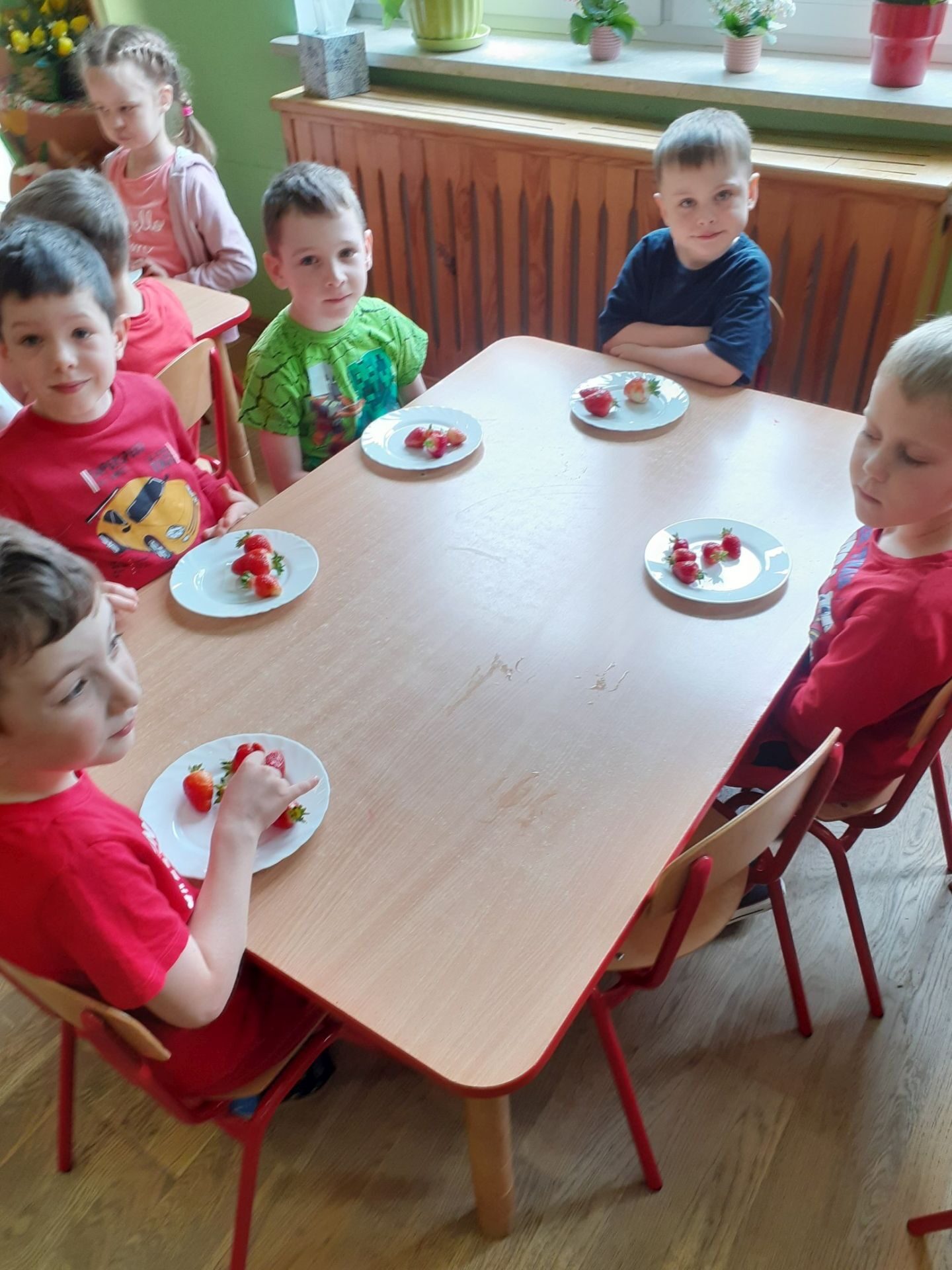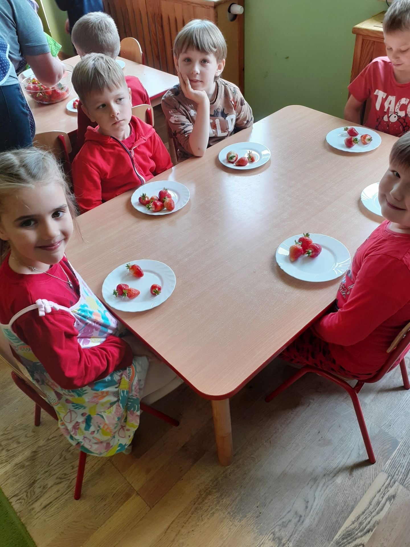 W dniu 30 maja w naszym przedszkolu odbył się dzień truskawki. Przedszkolaki robiły truskawkowe koktajle, mieszały truskawki z jogurtem, kroiły owoce, kolorowały truskawkowe obrazki i liczyły truskawki. Dzień pełen atrakcji i witamin. Zapraszamy do obejrzenia zdjęć.
