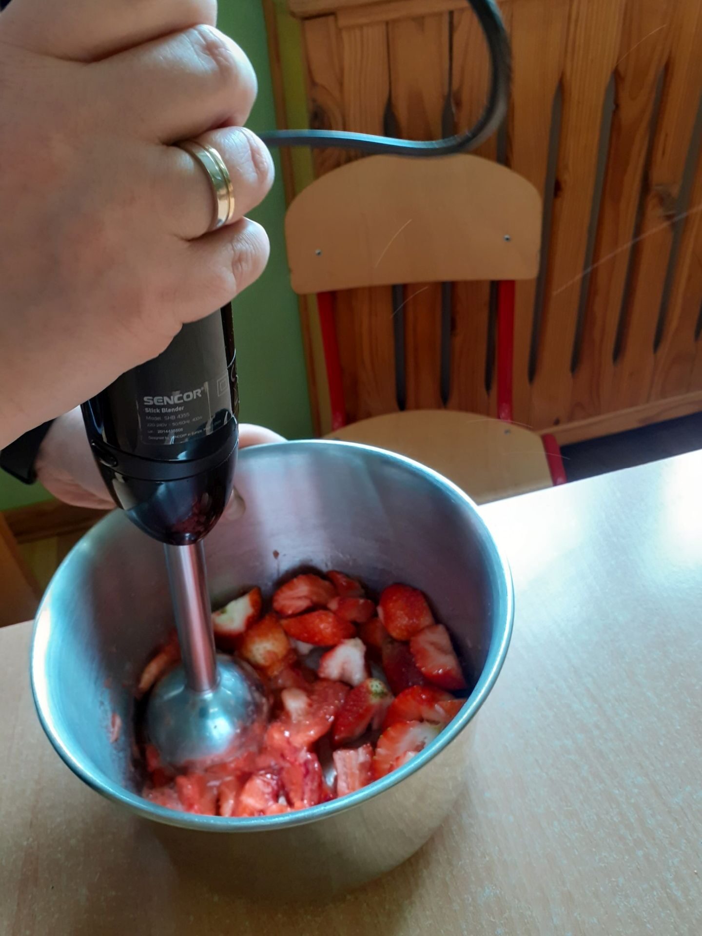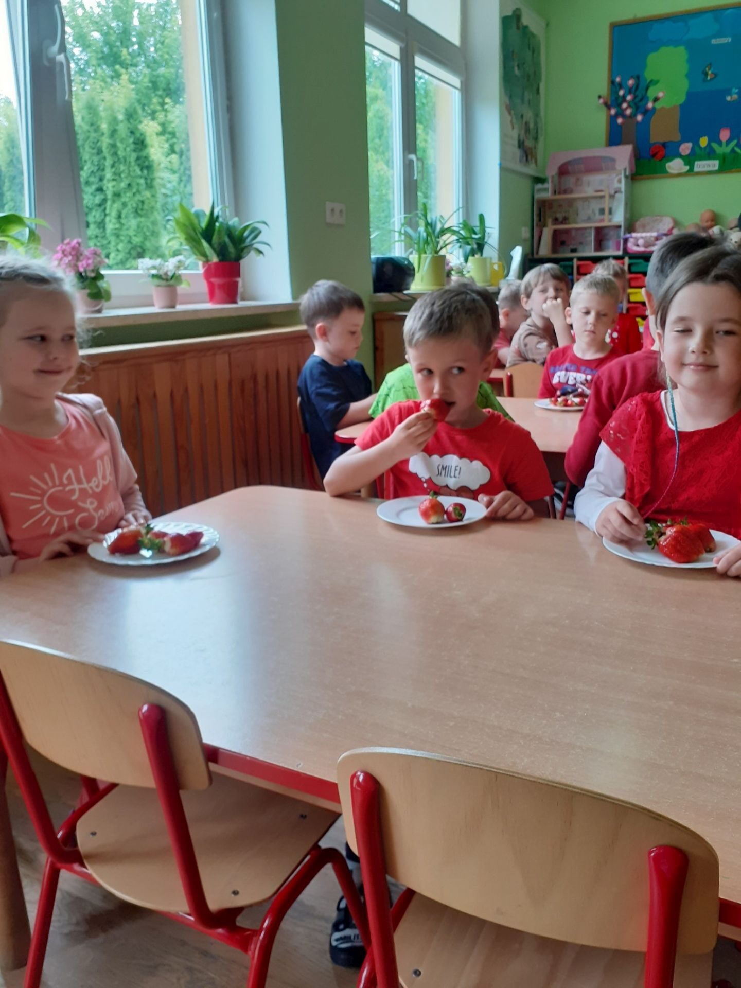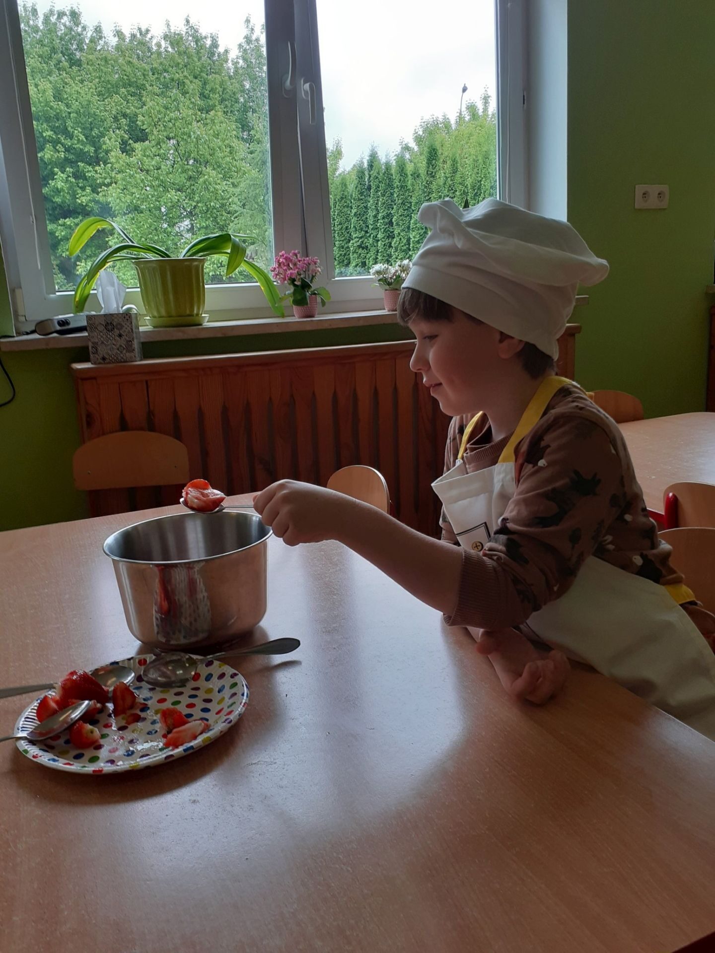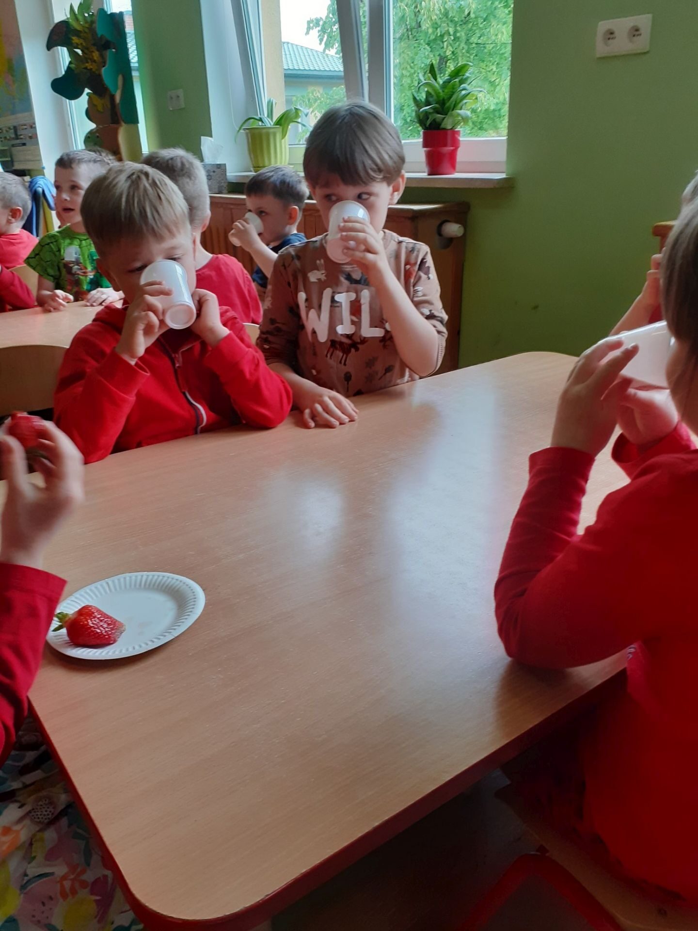 W dniu 30 maja w naszym przedszkolu odbył się dzień truskawki. Przedszkolaki robiły truskawkowe koktajle, mieszały truskawki z jogurtem, kroiły owoce, kolorowały truskawkowe obrazki i liczyły truskawki. Dzień pełen atrakcji i witamin. Zapraszamy do obejrzenia zdjęć.