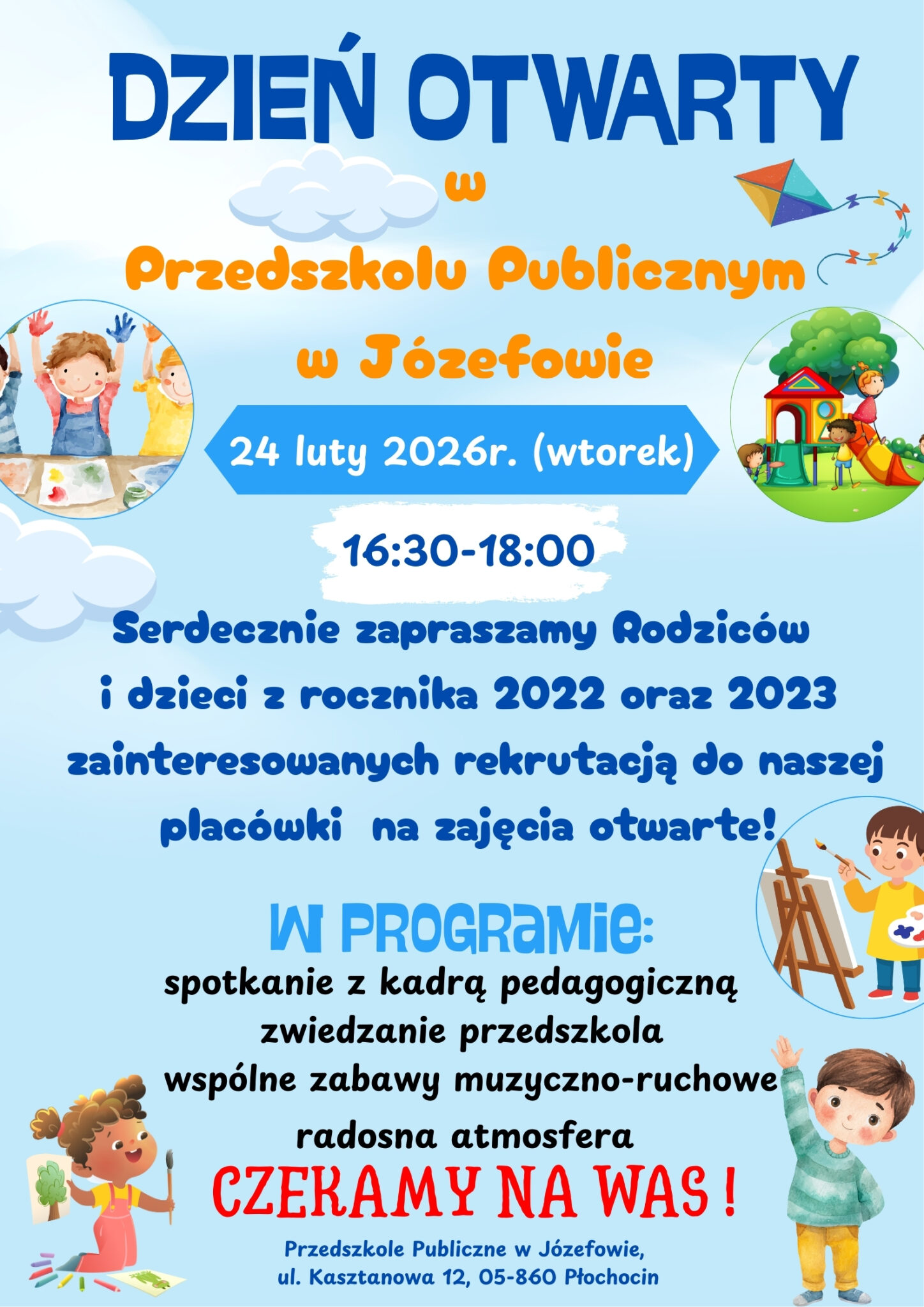 Dzień Otwarty – zapraszamy rodziców i dzieci z roczników 2022-2023 zainteresowanych rekrutacją do naszej placówki