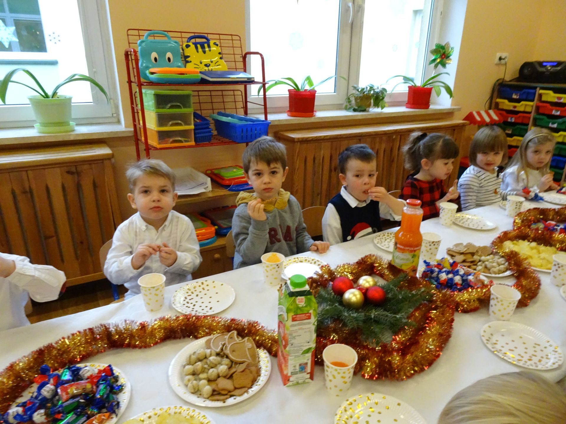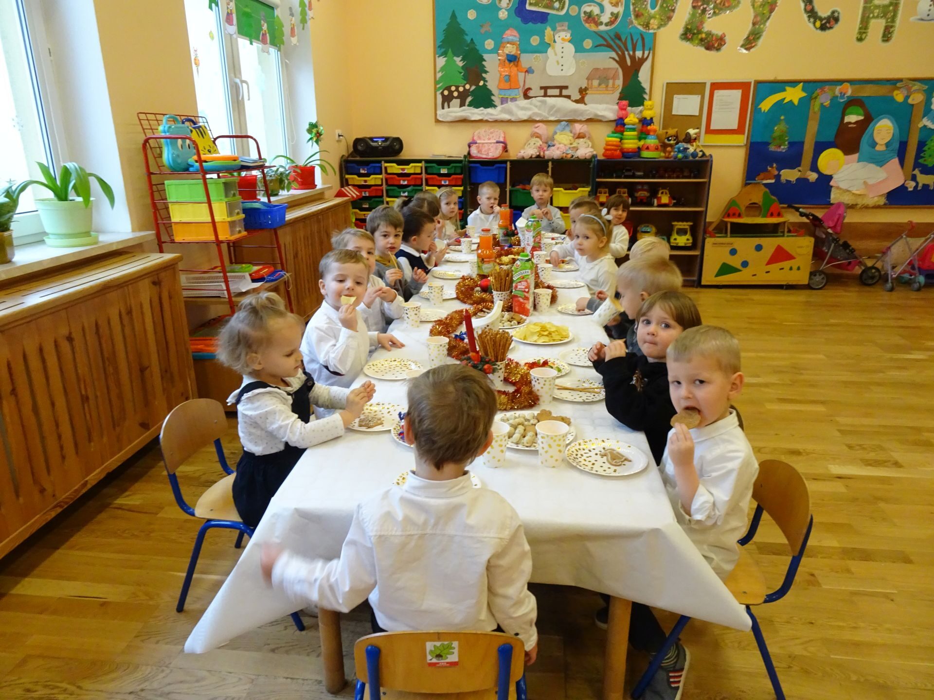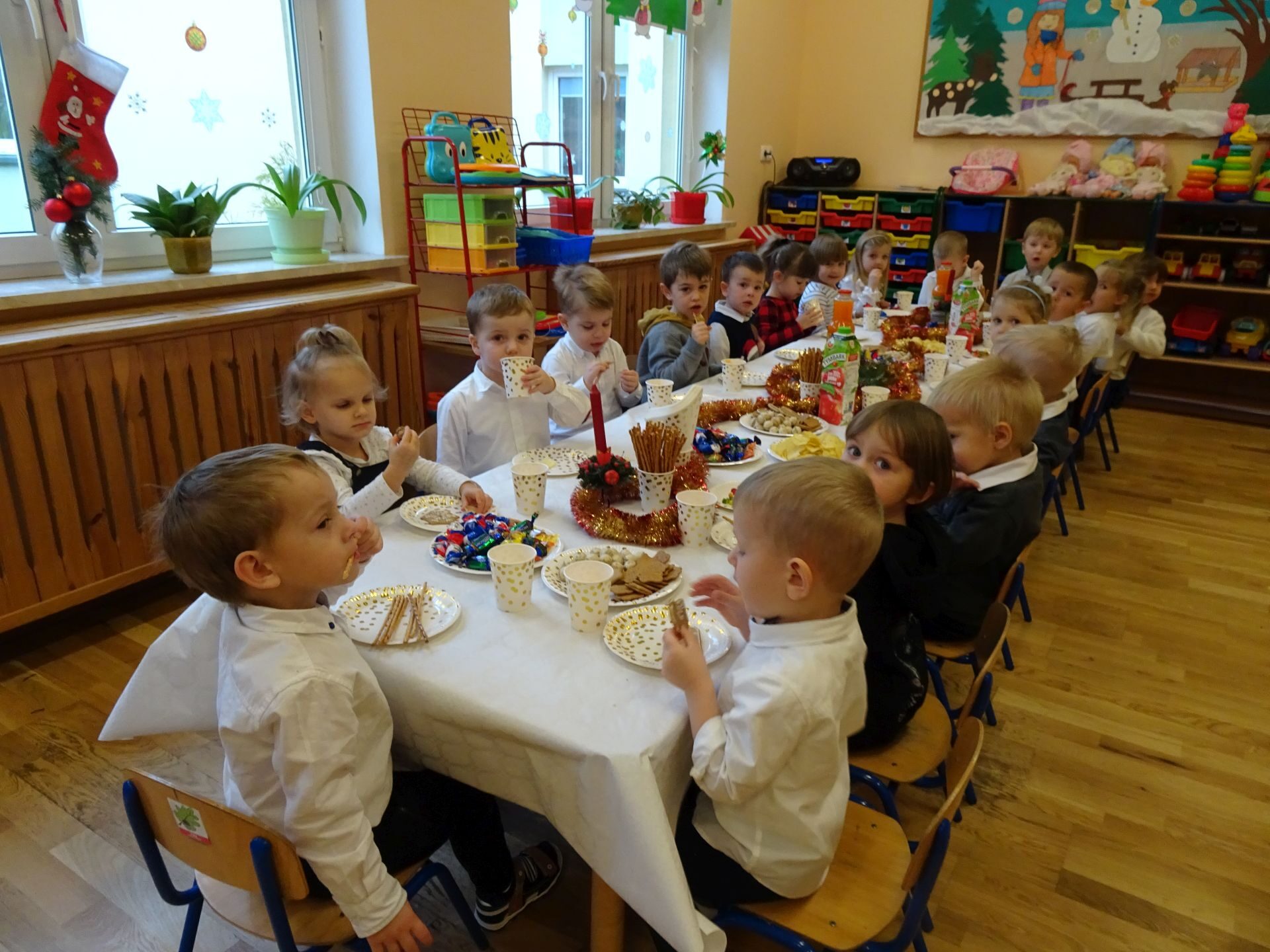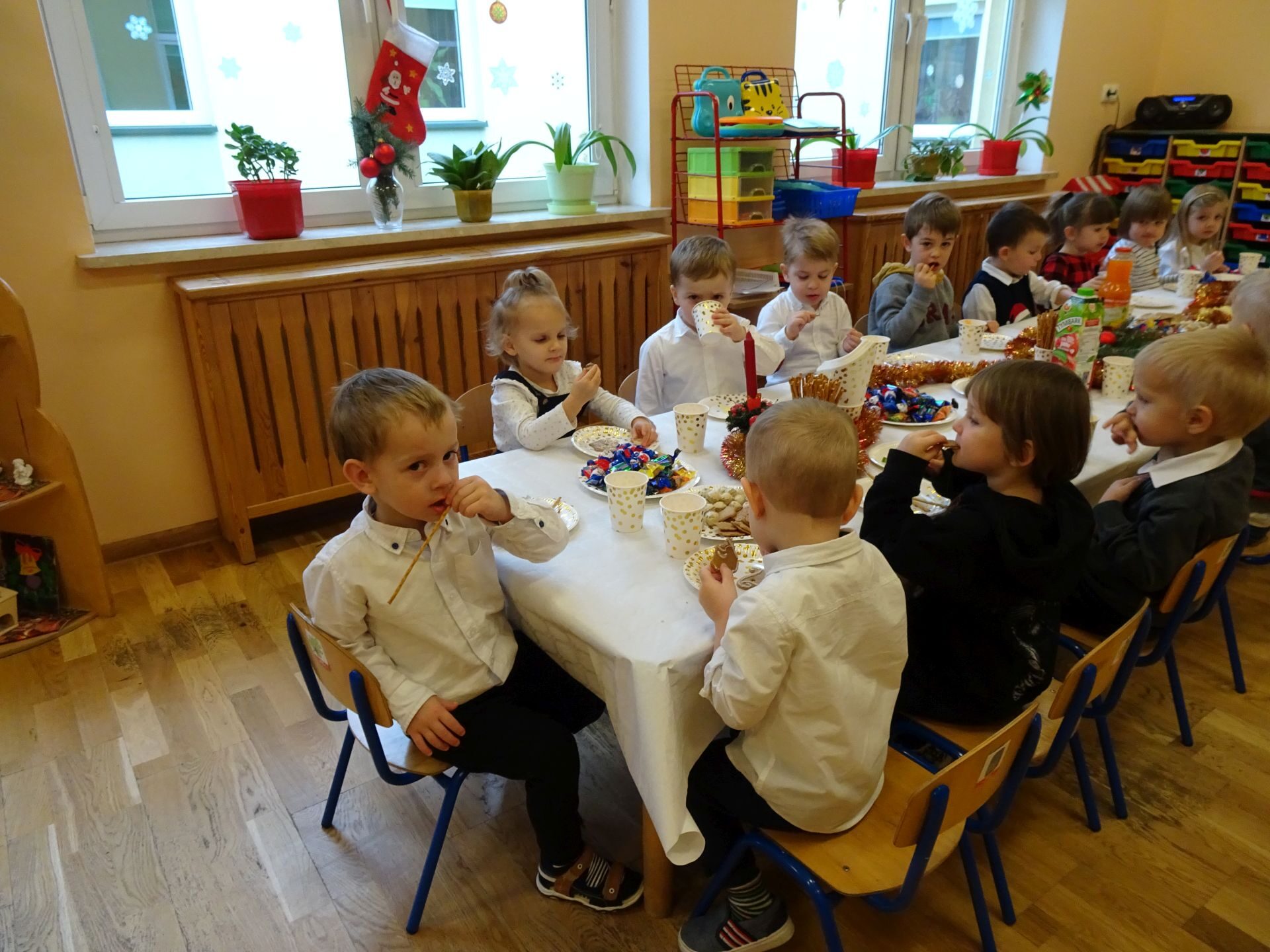 Wspólne śpiewanie kolęd to jeden z najpiękniejszych zwyczajów Bożego Narodzenia. Kolędy i pastorałki rozbrzmiewają w naszych domach już od ponad 500 lat. Prawdziwie świąteczna atmosfera zapanowała również w grupie ,, Kotki” . Mali artyści zaprezentowali najpiękniejsze kolędy i pastorałki . Po zakończeniu „kolędowania”  dzieci wspólnie świętowały w swojej sali . Mamy nadzieję, że tegoroczny koncert na długo pozostanie w pamięci i pozwoli zatrzymać magię świąt.