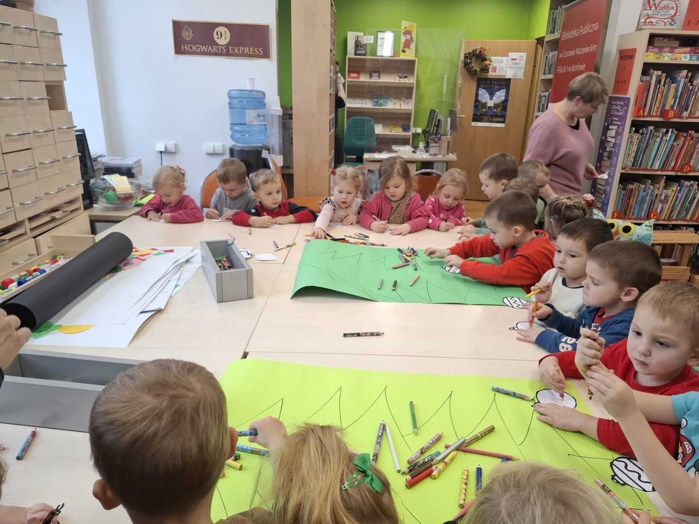 W dniu 3.12.2024 grupy I „Pszczółki” i II „Kotki” wybrały się na lekcję biblioteczną w Bibliotece Publicznej w Józefowie. Dzieci zostały zapoznane z historią istnienia Św. Mikołaja, z ogromnym zainteresowaniem wysłuchały książki M.Barnetta pt. „Tajemnica św. Mikołaja” wzięły udział w zabawie ruchowej „Zaprzęgi”, a na koniec przy użyciu kredek pokolorowały bombki które przykleiły na grupowych choinkach, które zdobią wnętrze biblioteki. Każda wizyta w Bibliotece Publicznej to doskonała okazja do zapoznania dzieci z zakątkami budynku, doskonalenie umiejętności szanowania księgozbiorów, a także nauka odpowiedniego szacunku dla książki wypożyczonej.