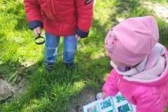 8 maja dzieci z grupy Biedronki zaopatrzeni w lupy, tablice z łąkowymi roślinami i zwierzętami wybrały się na łąkę w celu poszukiwania mieszkańców łąk i roślin, jakie były na ilustracjach. Zadaniem dzieci było odszukiwanie, rozpoznawanie i nazywanie flory i fauny łąkowej. Celem zajęć było rozbudzanie kontaktu z naturą, kształtowanie postaw proekologicznych oraz odkrywanie walorów przyrodniczych poprzez aktywność dzieci. Przedszkolaki pracowały w parach przez co doskonaliły umiejętność współpracy. Zajęcia sprawiły dzieciom dużo radości.
