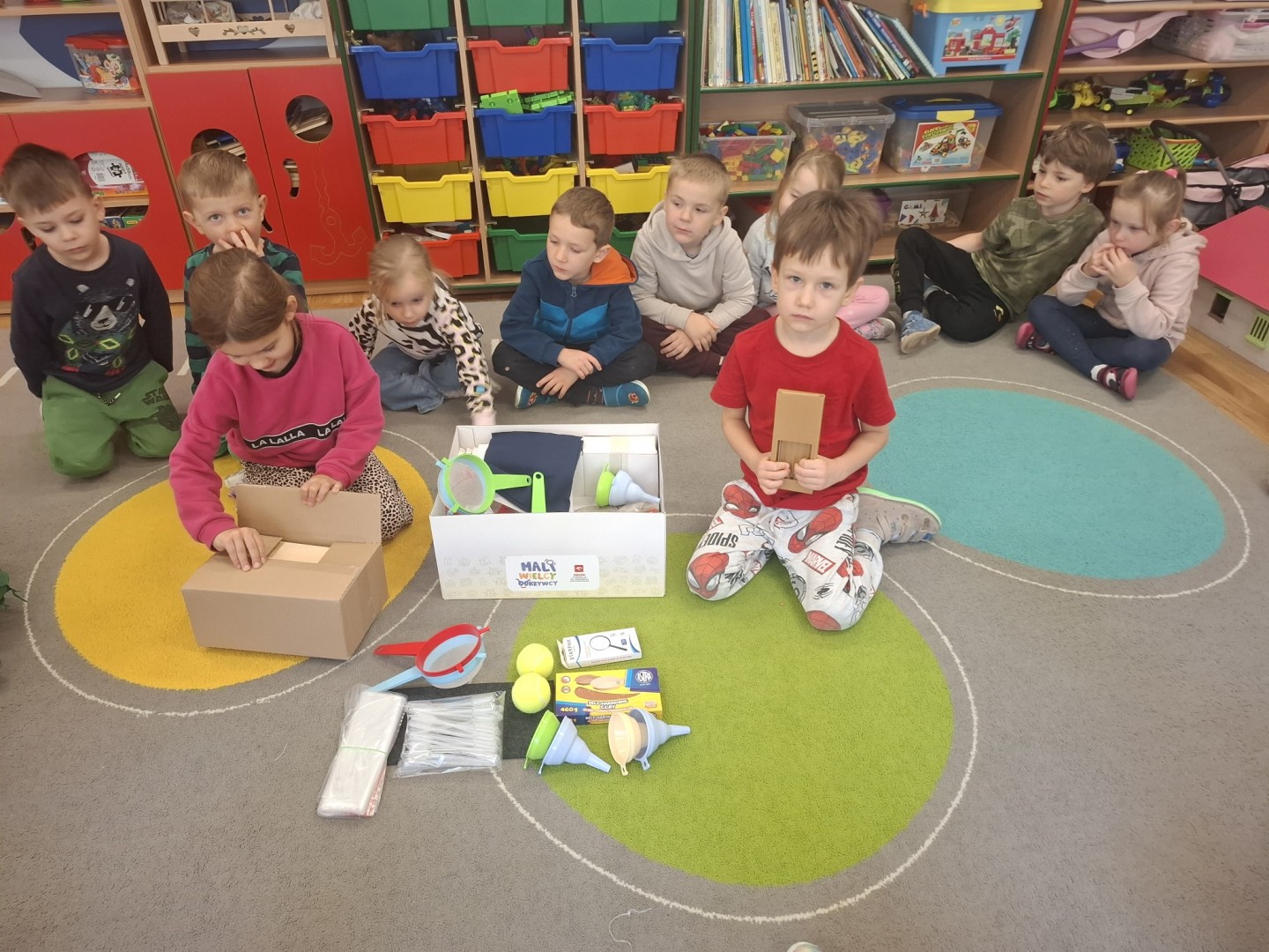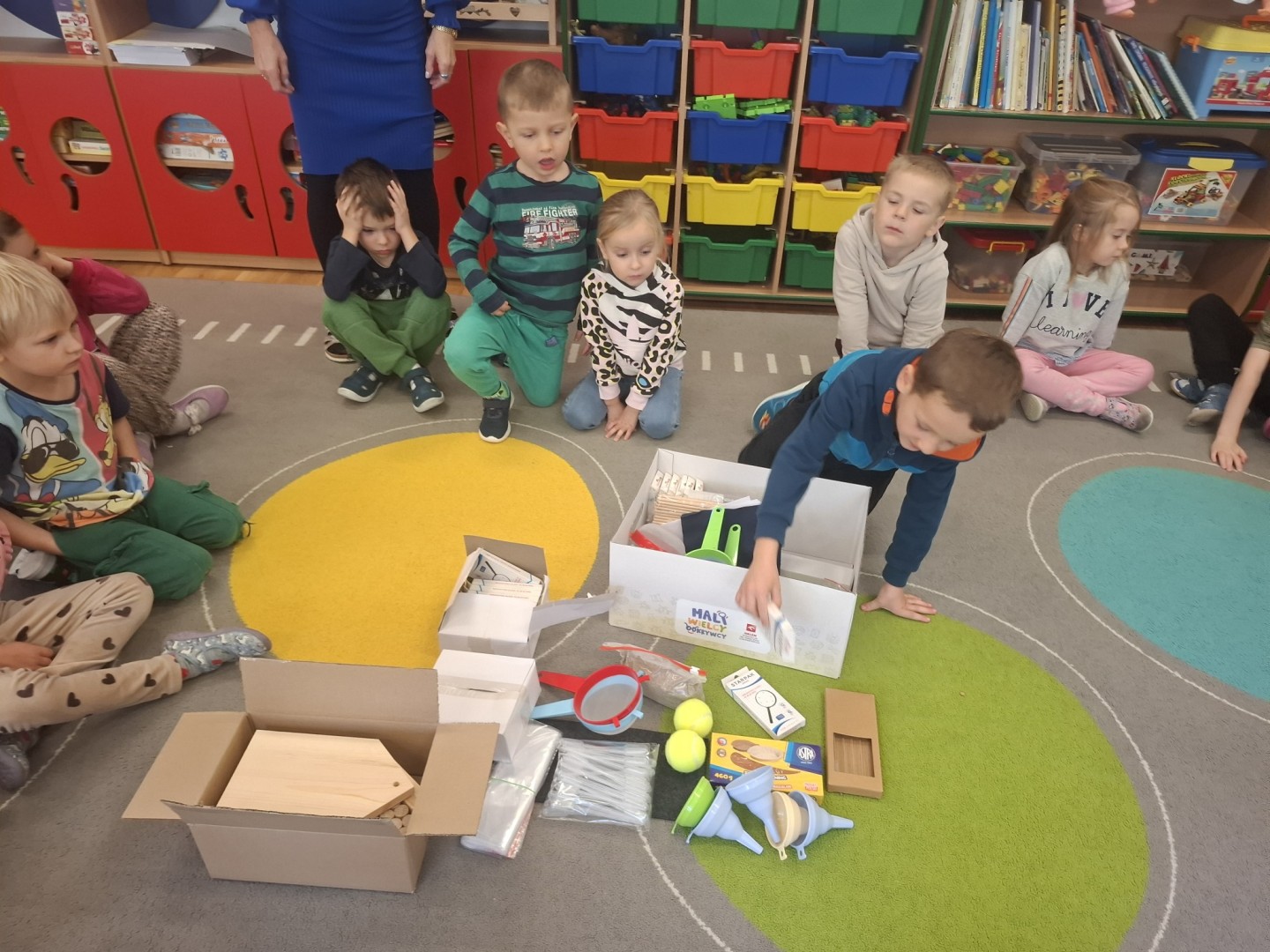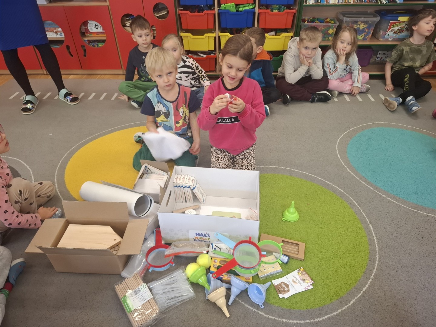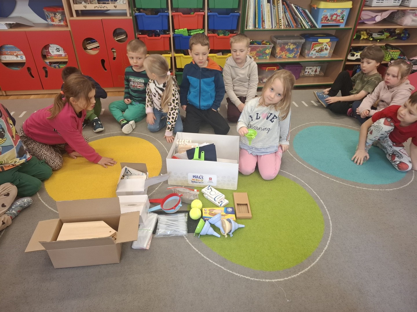 Dnia 7.11.2025r z ogromną ekscytacją odebraliśmy nasz pakiet naukowy, pełen materiałów i inspiracji do zajęć. Już wkrótce rozpoczniemy pierwsze odkrywcze eksperymenty, a małe rączki naszych Żabek z pewnością będą bardzo zapracowane!
