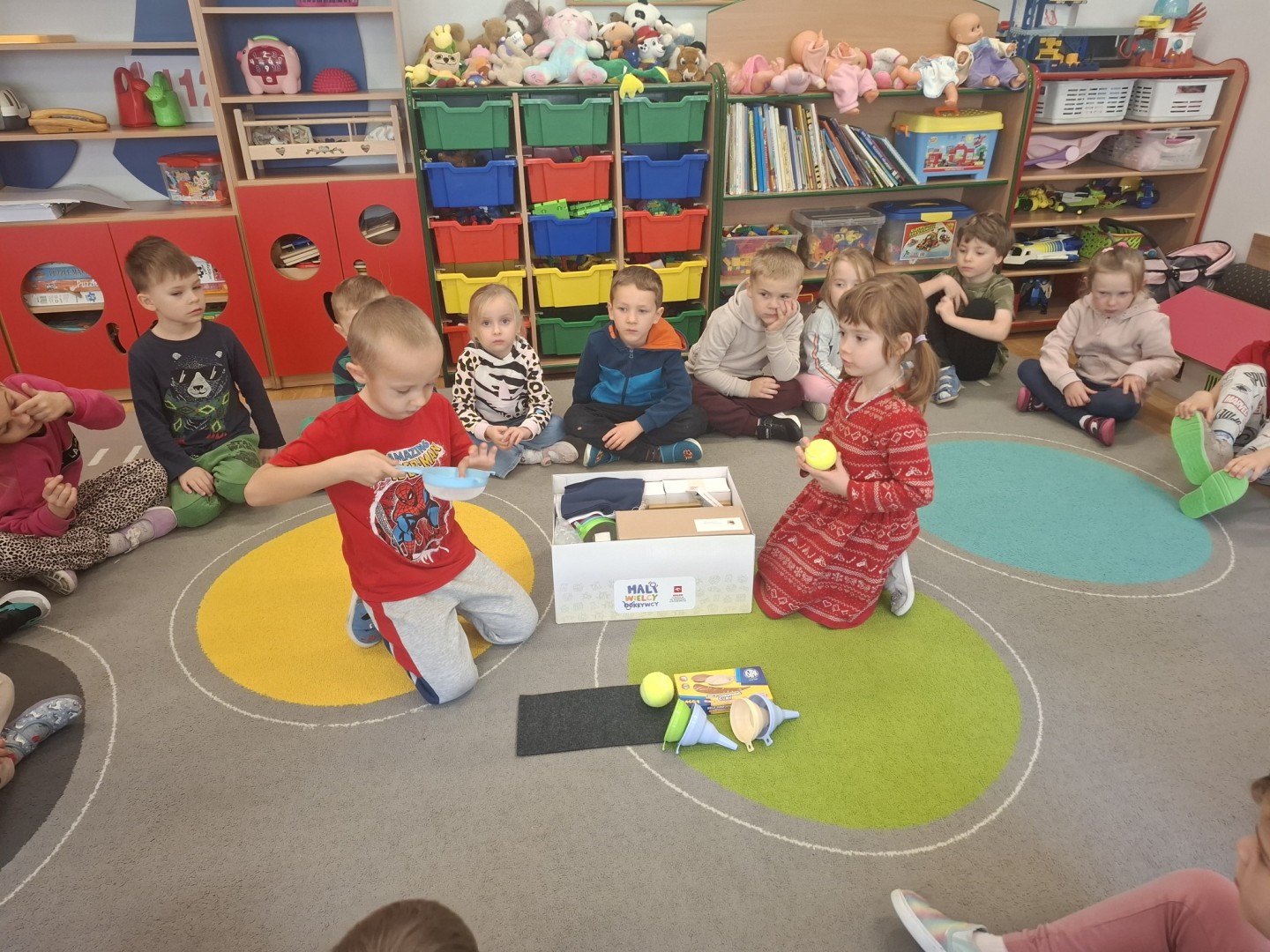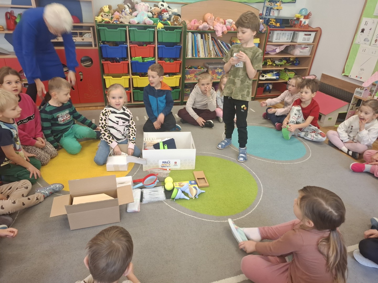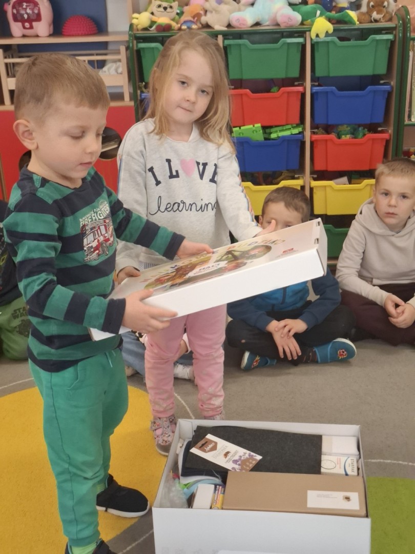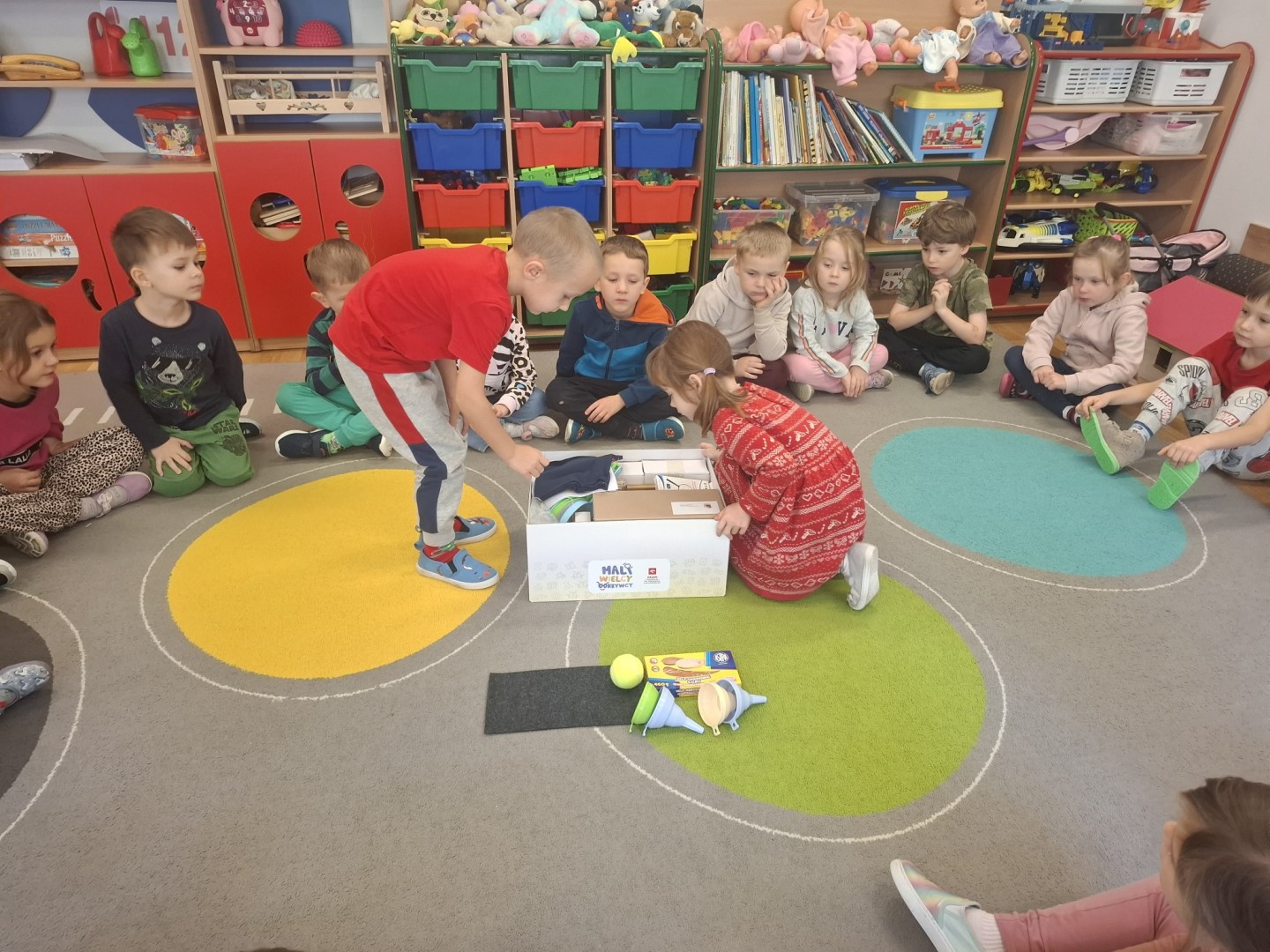 Dnia 7.11.2025r z ogromną ekscytacją odebraliśmy nasz pakiet naukowy, pełen materiałów i inspiracji do zajęć. Już wkrótce rozpoczniemy pierwsze odkrywcze eksperymenty, a małe rączki naszych Żabek z pewnością będą bardzo zapracowane!