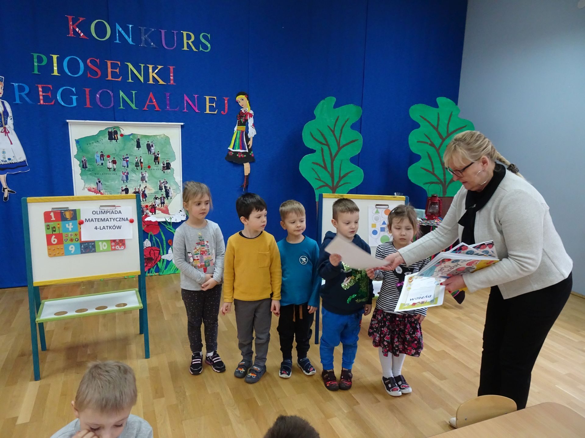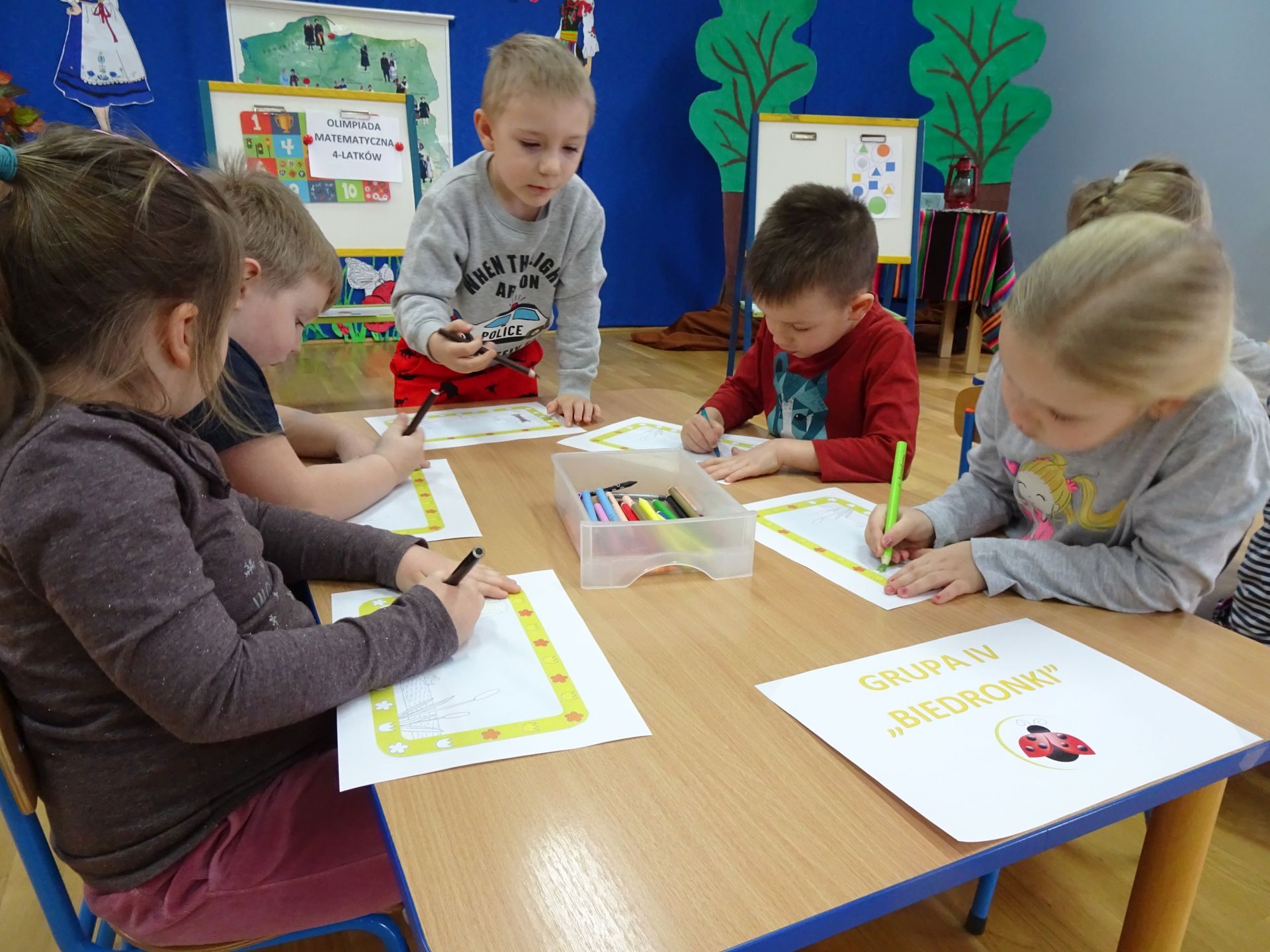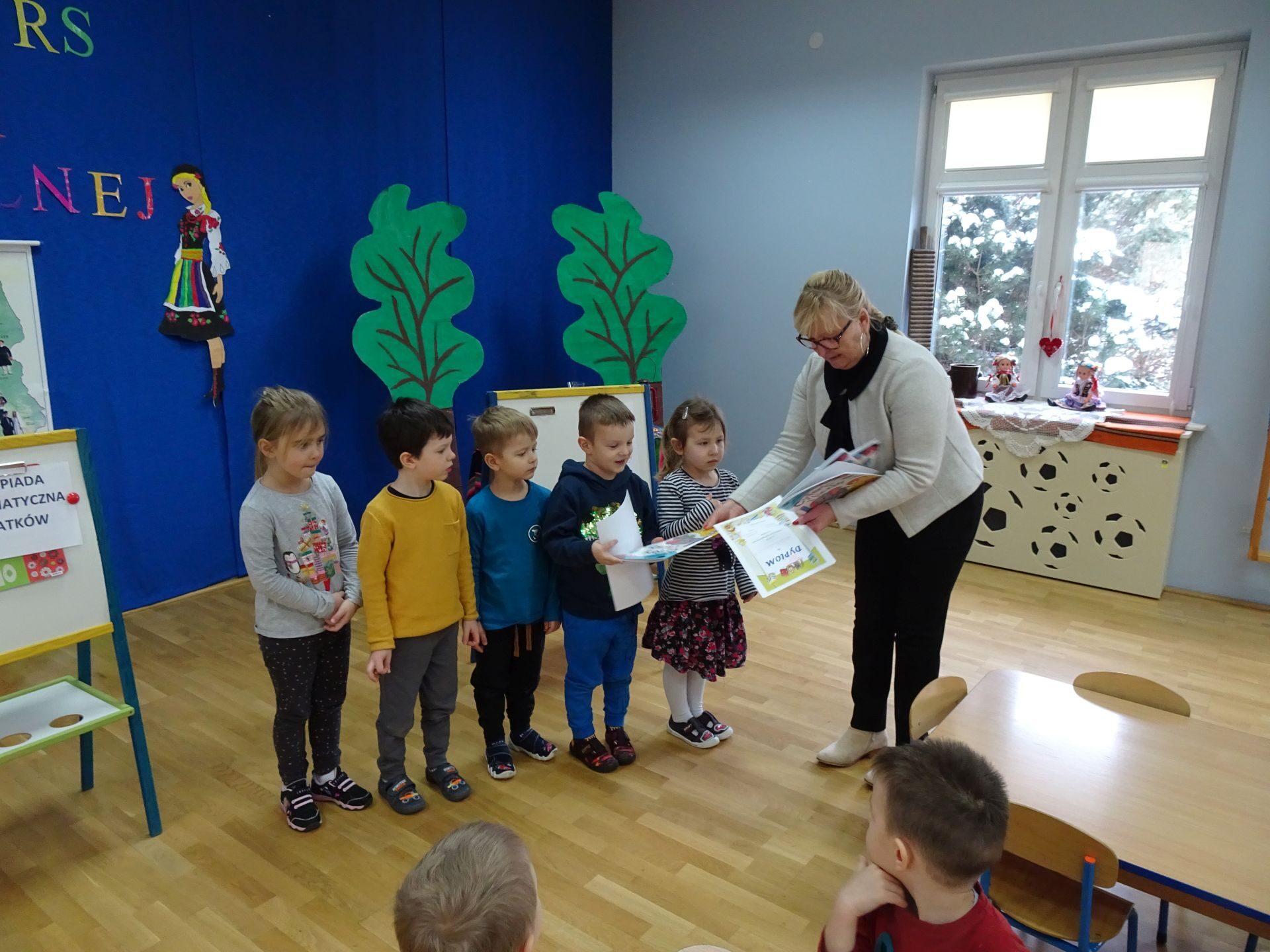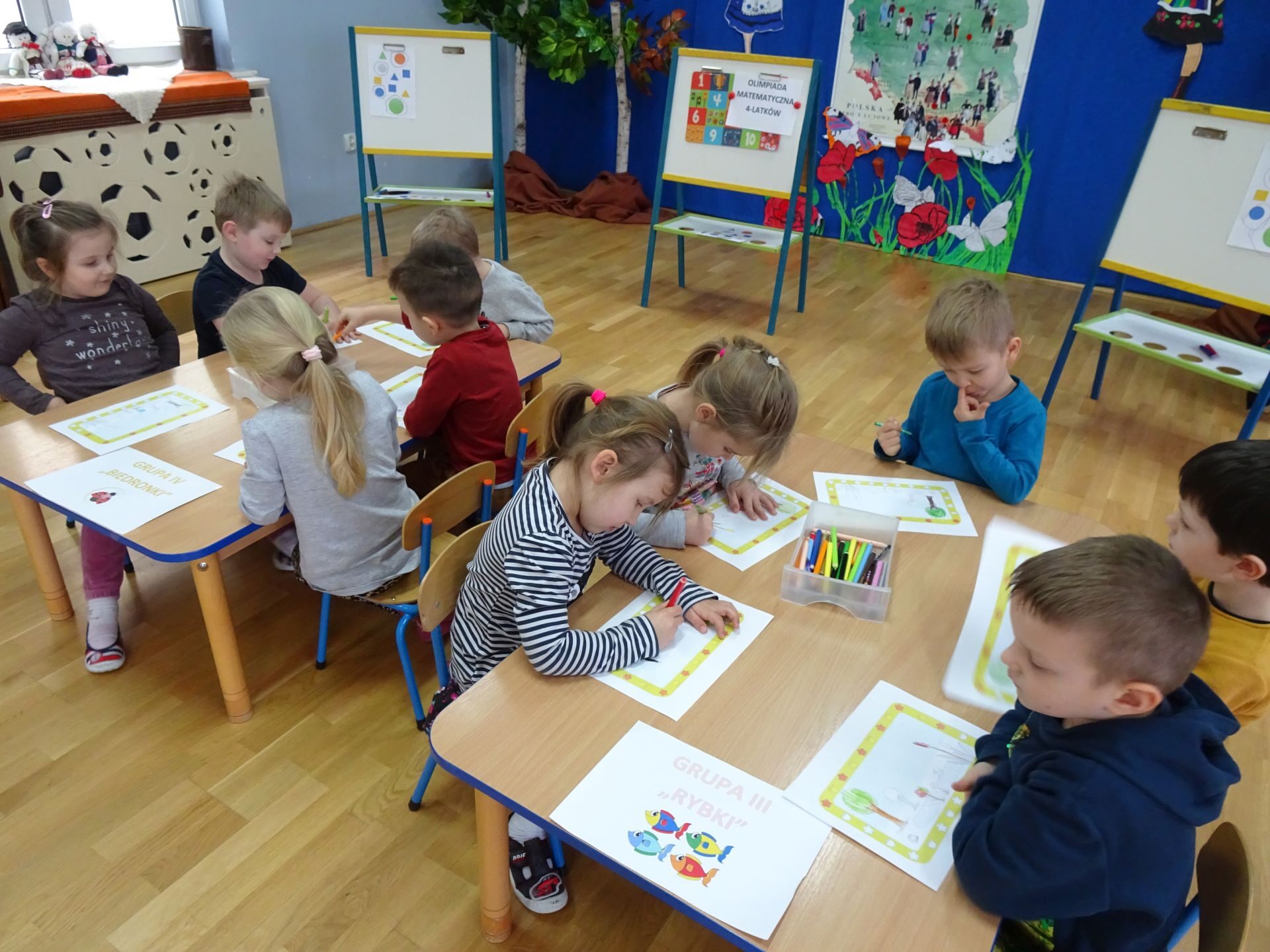 18.01.2020 r. tego dnia odbyła się Matematyczna Olimpiada Czterolatków .Dzieci z grupy ,,Biedronek “i ,,Rybek ” rozwiązywały różnorodne zadania matematyczne .Przedszkolaki bardzo sprawnie liczyły , układały rytmy , rozpoznawały figury geometryczne układały z nich zaproponowane wzory .Wykonywały zadania związane z kodowaniem :stosowaniem pojęć : duży – mały , wysoki-niski.Na zakończenie olimpiady dzieci otrzymały pamiątkowe dyplomy i nagrody książkowe.