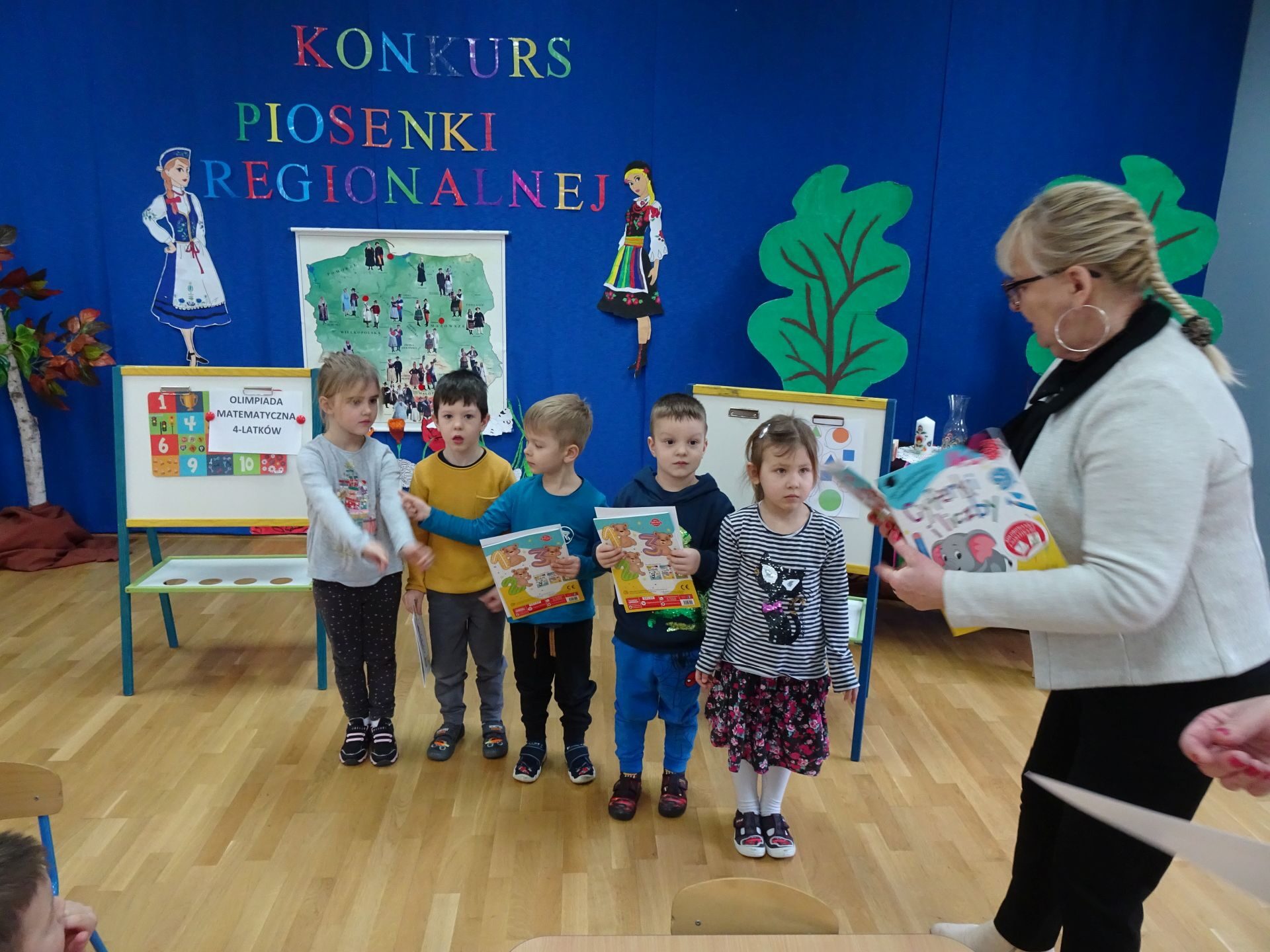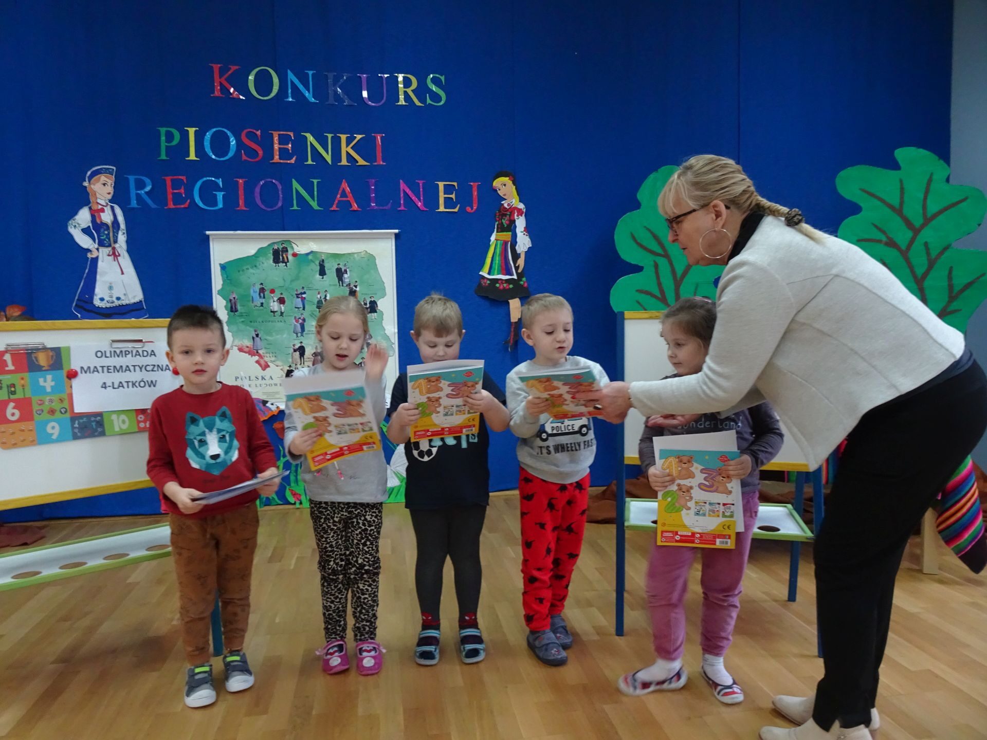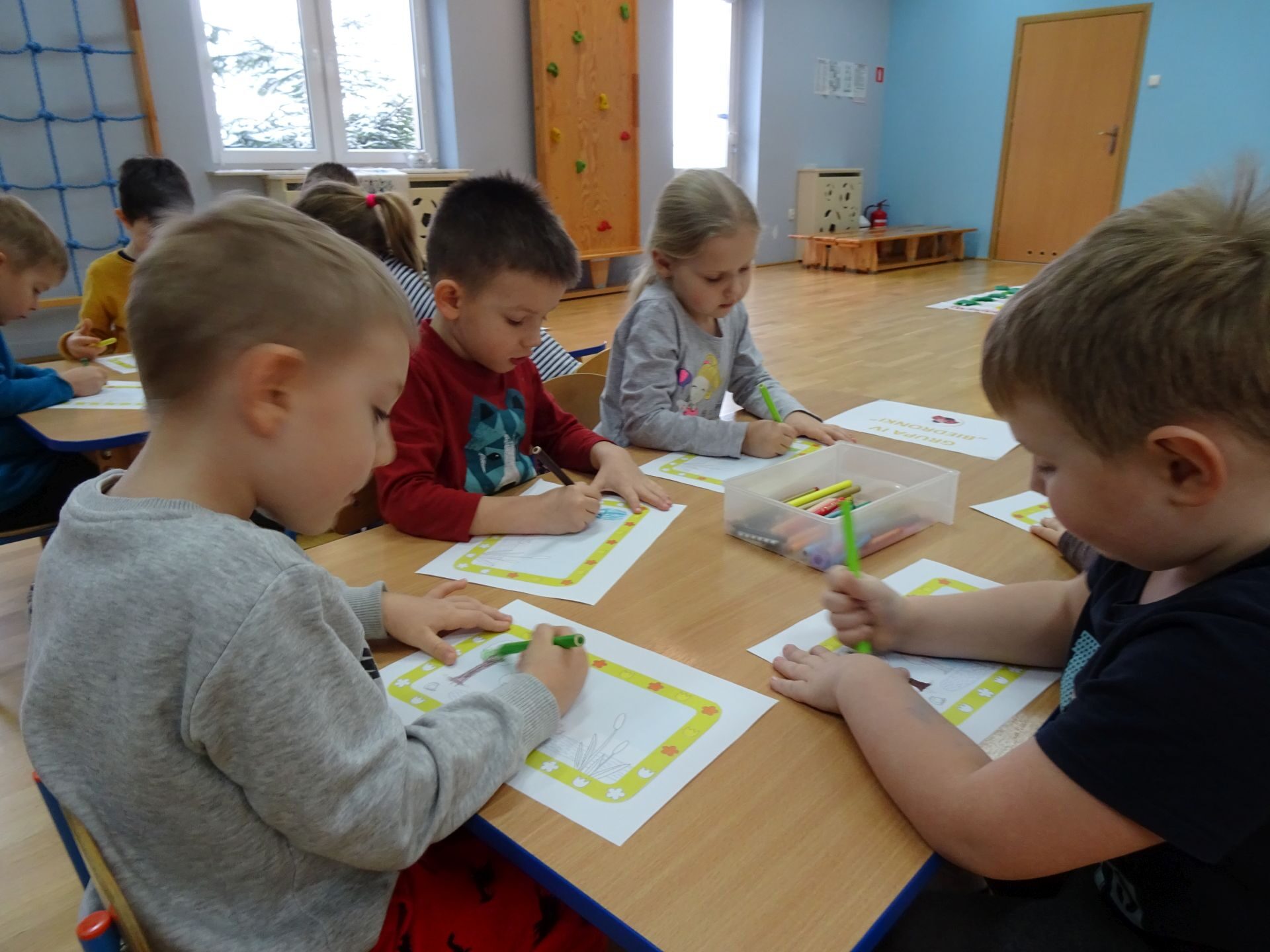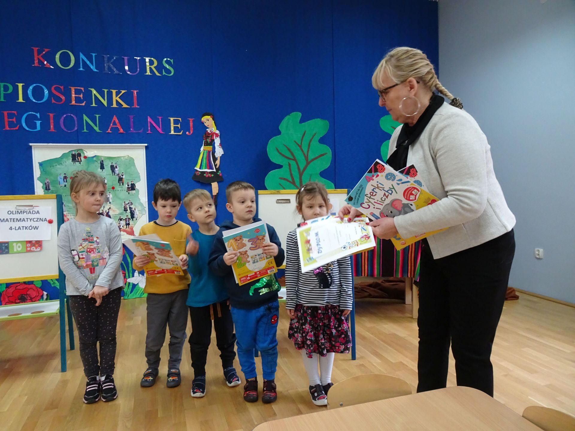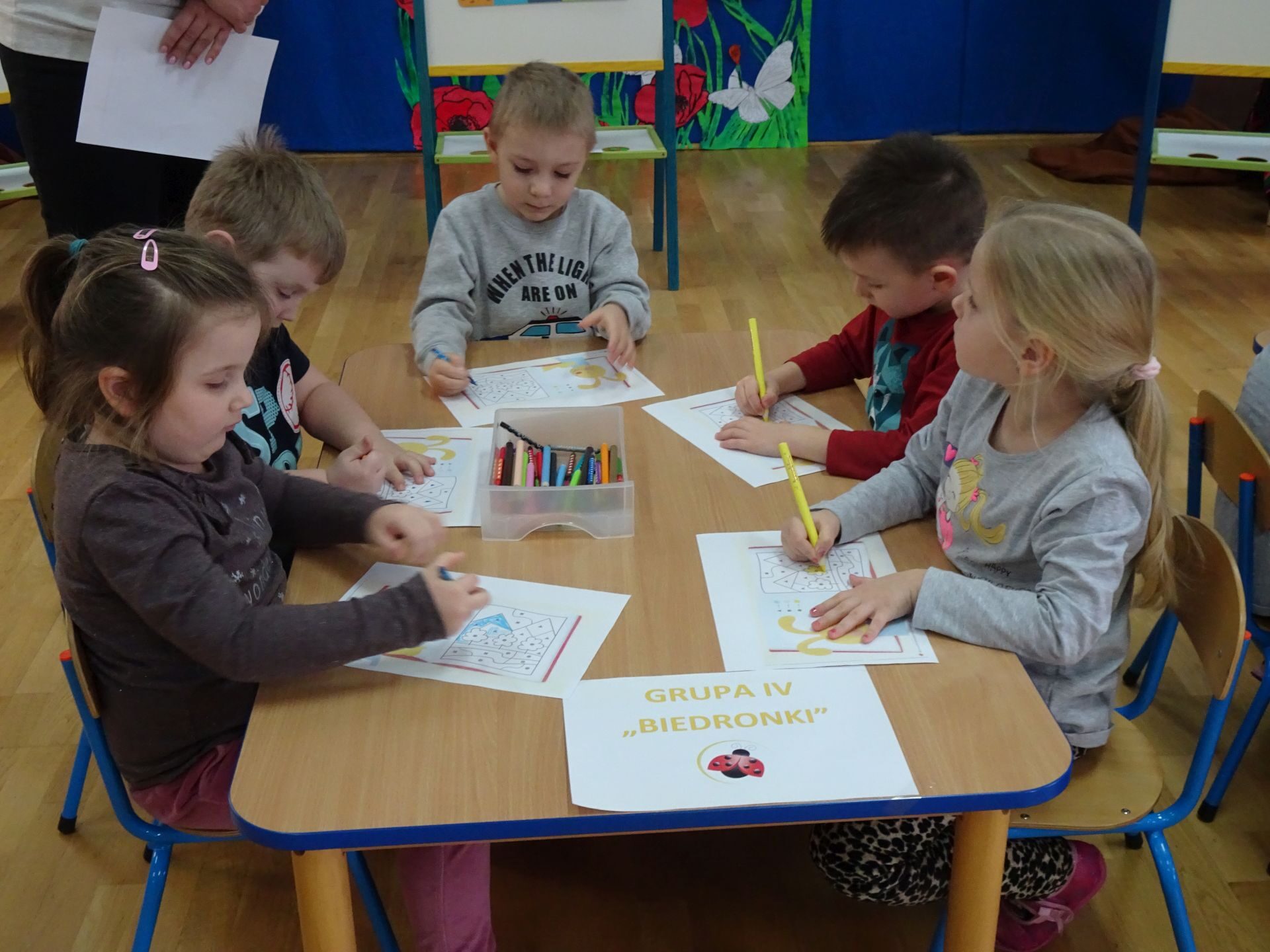 18.01.2020 r. tego dnia odbyła się Matematyczna Olimpiada Czterolatków .Dzieci z grupy ,,Biedronek “i ,,Rybek ” rozwiązywały różnorodne zadania matematyczne .Przedszkolaki bardzo sprawnie liczyły , układały rytmy , rozpoznawały figury geometryczne układały z nich zaproponowane wzory .Wykonywały zadania związane z kodowaniem :stosowaniem pojęć : duży – mały , wysoki-niski.Na zakończenie olimpiady dzieci otrzymały pamiątkowe dyplomy i nagrody książkowe.
