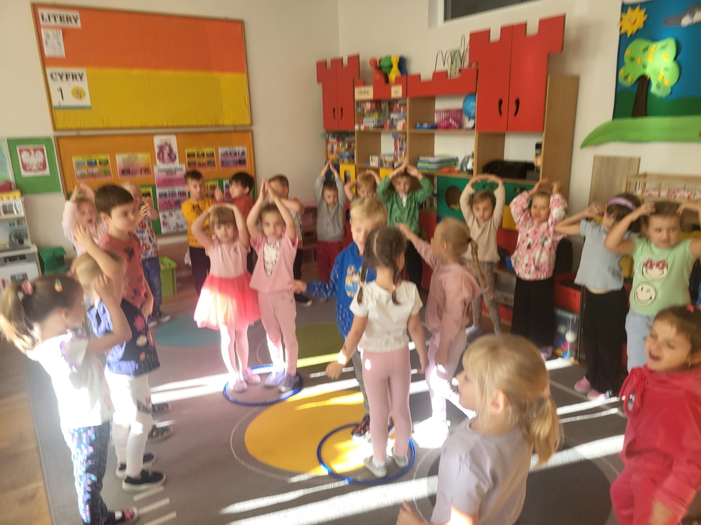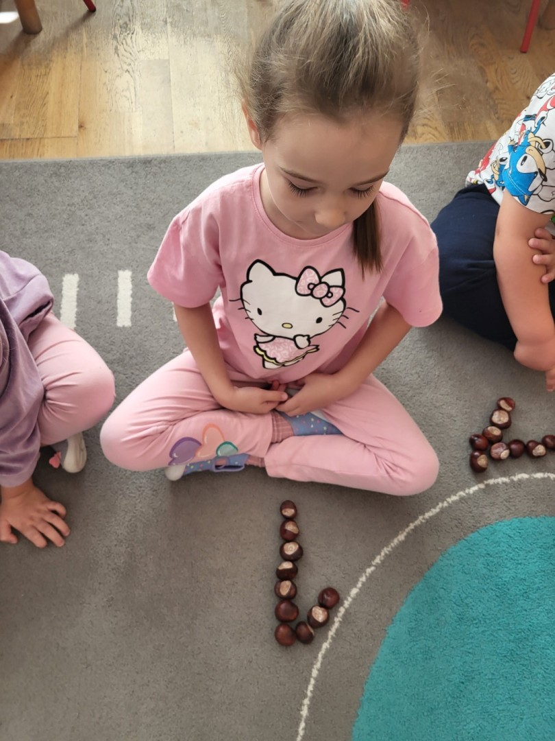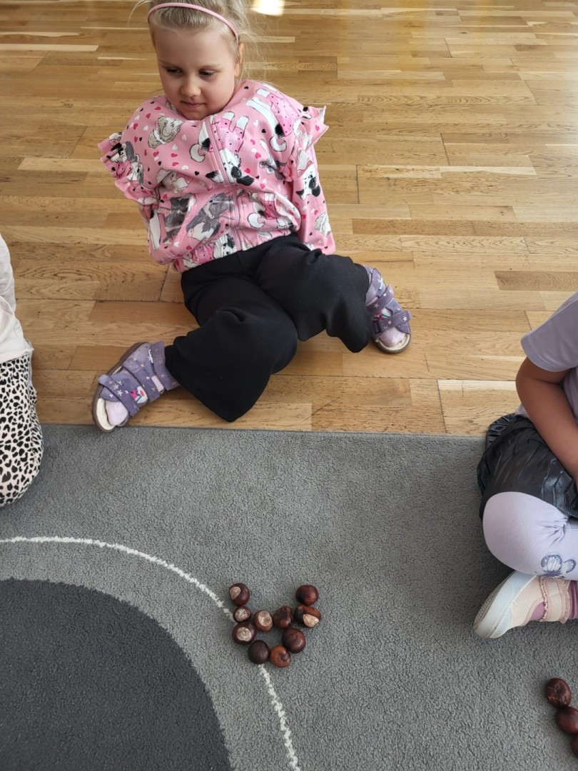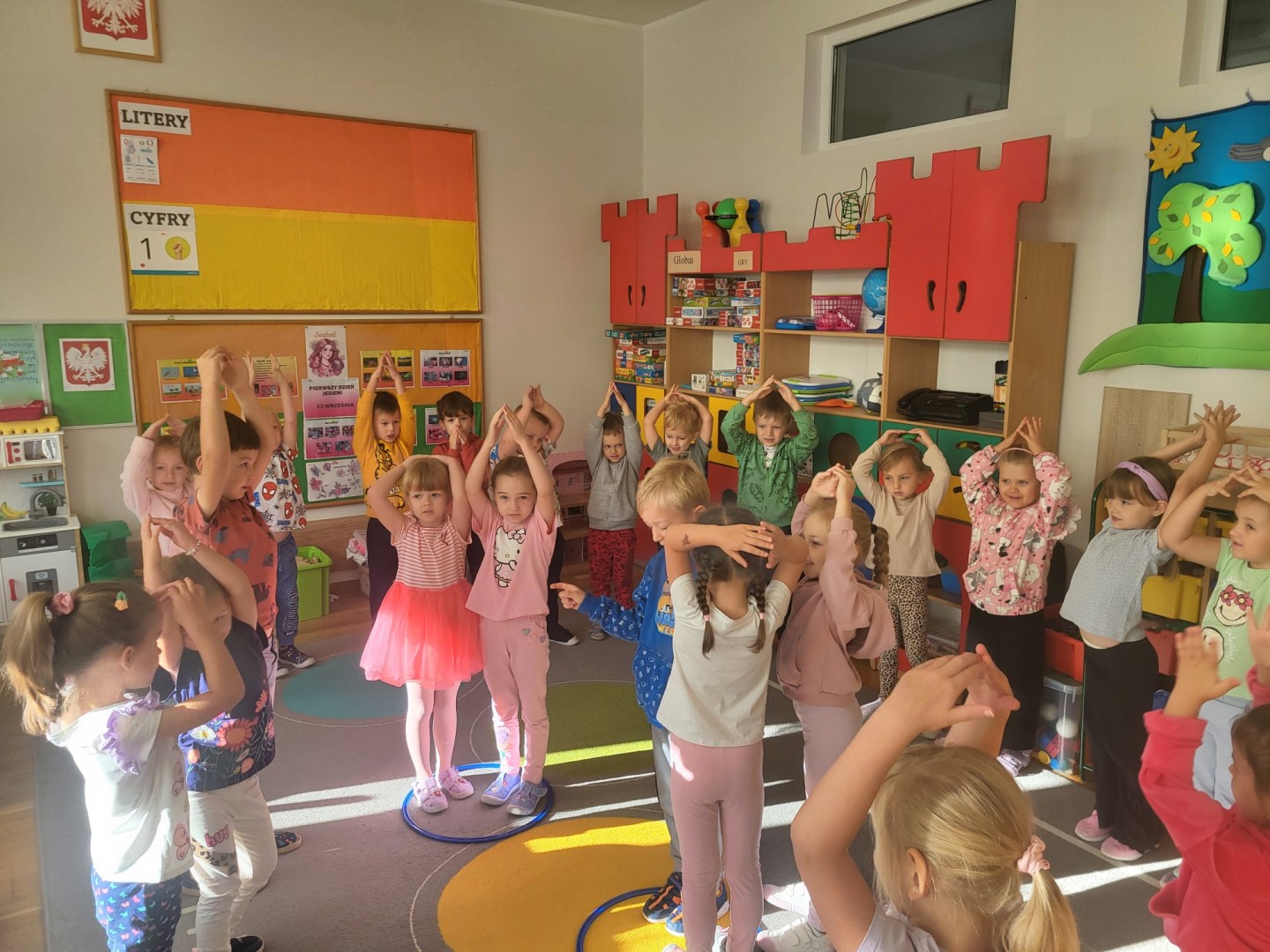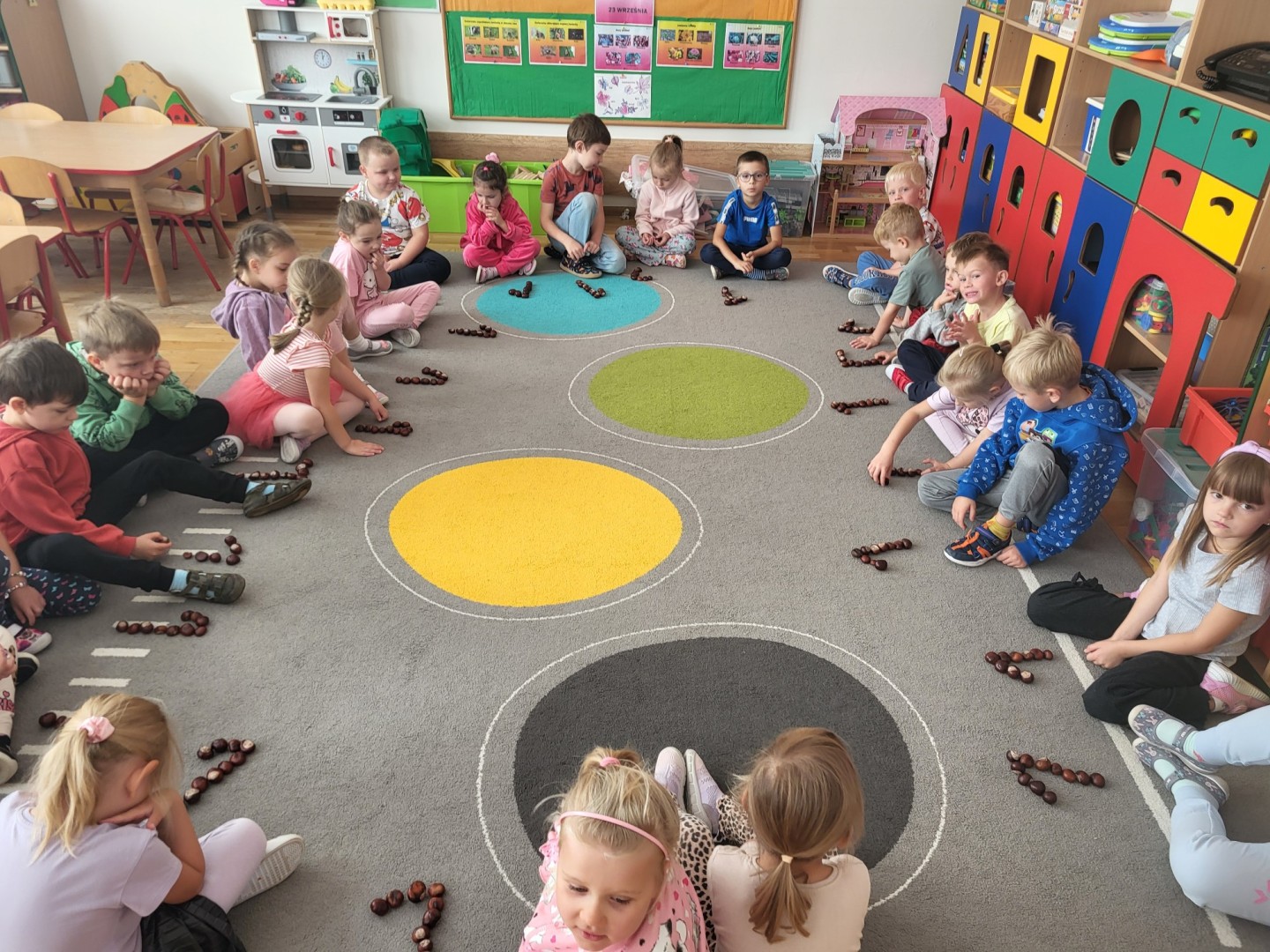 W dniach 20.10-24.10. 2025r. w grupie „Zajączki” realizowany był projekt edukacyjny pt. „Matematyka w jesiennej przyrodzie ukryta”. Przygotowaniem do zajęć było zgromadzenie jesiennych darów podczas spacerów po najbliższej okolicy przedszkola. W ramach zaproponowanych zajęć dzieci uczyły się liczyć ; mierzyć; ważyć; układać rytmy; klasyfikować przedmioty; określać: mniejszy/większy, dłuższy/ krótszy, mniej/więcej/ tyle samo; orientować się w przestrzeni poprzez odczytywanie wskazań strzałki. Wykonywały również proste działania matematyczne: dodawanie, odejmowanie. Zwieńczeniem realizowanego projektu było wykonanie „ Drzewa Matematycznego”.