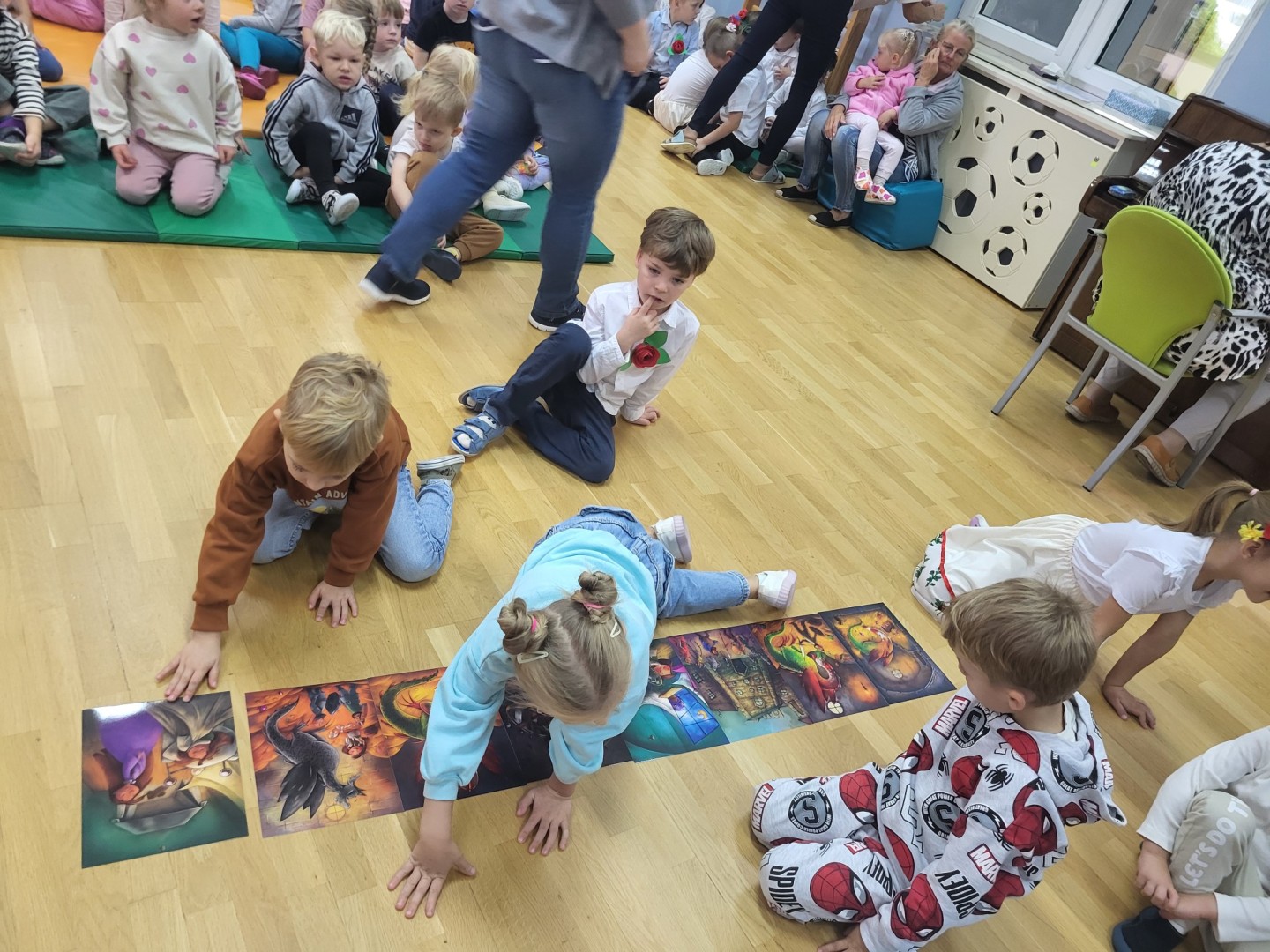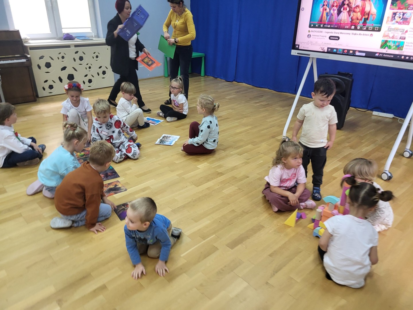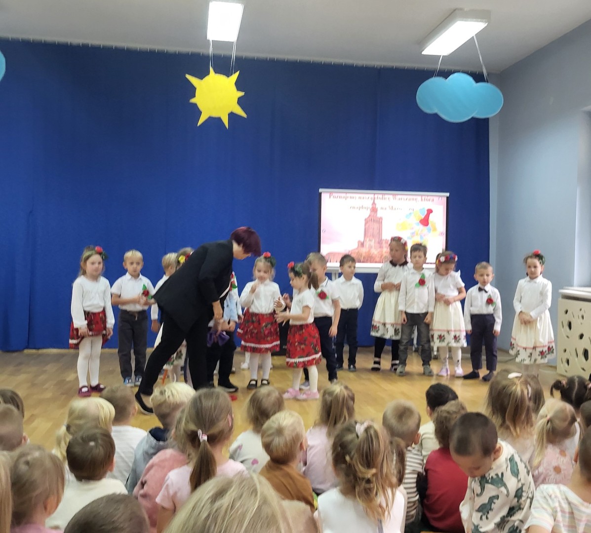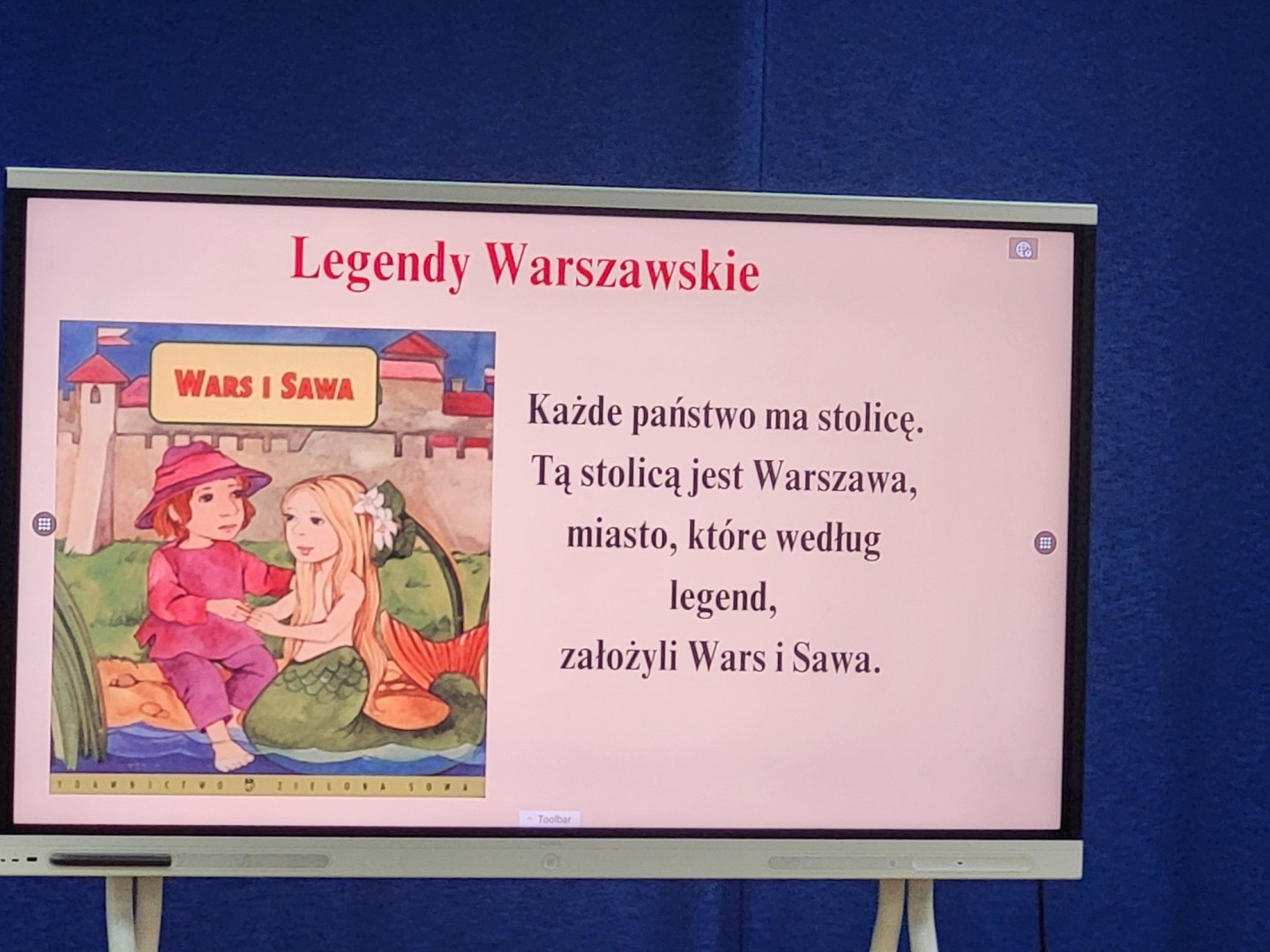 We wrześniu grupa Żabki wraz z wychowawcami przygotowała pokaz multimedialny „Poznajemy Naszą stolicę – Warszawę oraz inne miejsca na Mazowszu. Przedszkolaki zostały zapoznane z położeniem Mazowsza, charakterystycznymi miejscami, tańcami ludowymi oraz potrawami kuchni mazowieckiej. Na podstawie prezentacji multimedialnej poznały ciekawostki dotyczące naszej stolicy, wybrały się w wirtualny spacer po Warszawie poznając ważne miejsca takie jak : Pałac Kultury i Nauki, Zamek Królewski, Łazienki Królewskie, Pałac Prezydencki, Stadion Narodowy itp. Następnie dzieci zostały zapoznane z legendami warszawskimi i obejrzały dwie z nich : „Wars i Sawa” oraz „Bazyliszek”. Grupa „Żabki” przepięknie zatańczyła oberka oraz zaśpiewała piosenkę Marii Koterbskiej pt ”Karuzela”. Na zakończenie dzieci miały za zadanie ułożyć Pałac Kultury i Nauki z klocków piankowych ( 3-latki) puzzle z zabytkami Warszawy (4-latki) oraz historyjkę obrazkową „Bazyliszek” (5-latki).